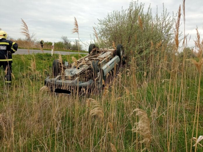 Az oldalára borult egy személyautó az 5301-es úton, Páhi közelében, a 32. kilométernél.