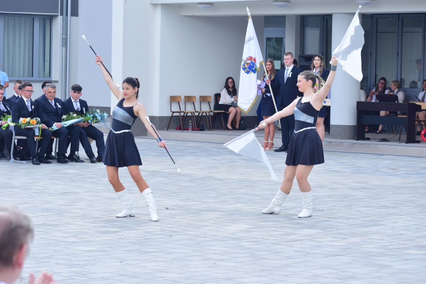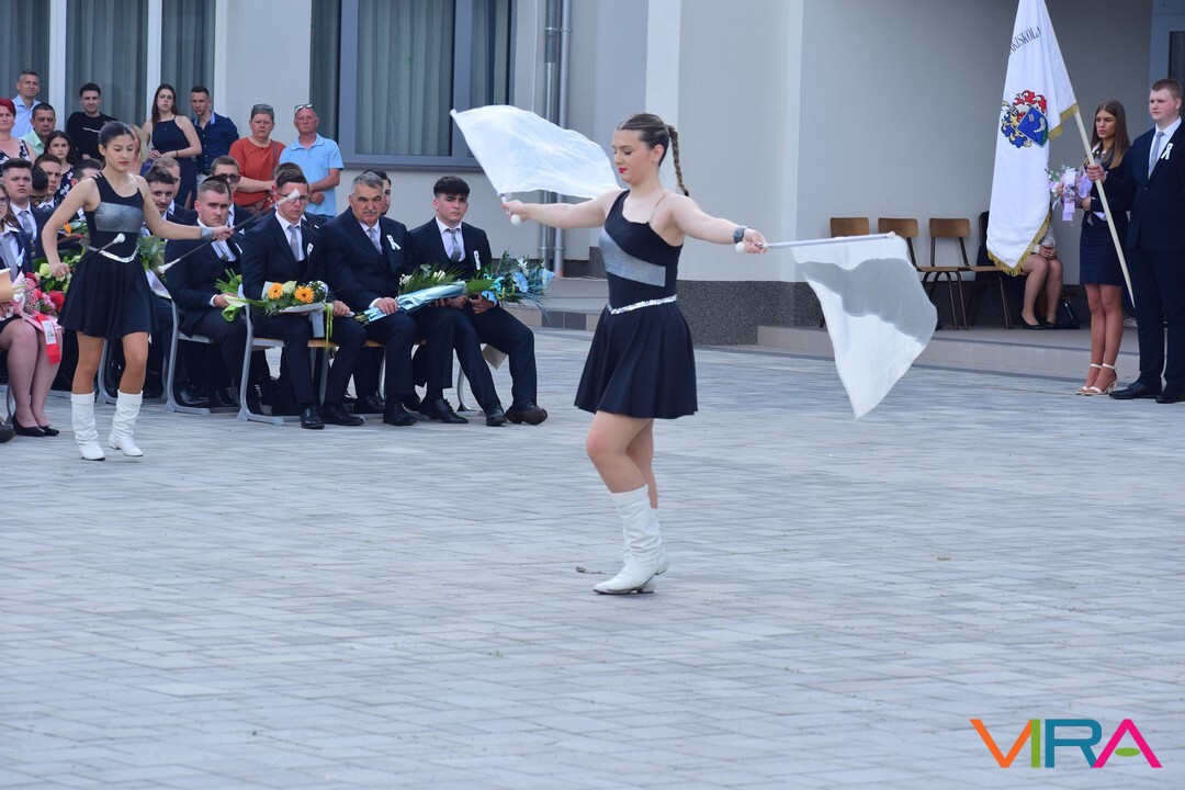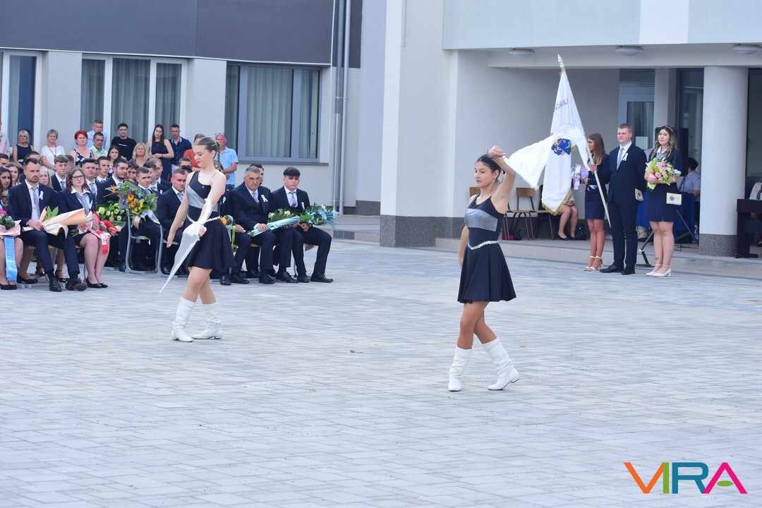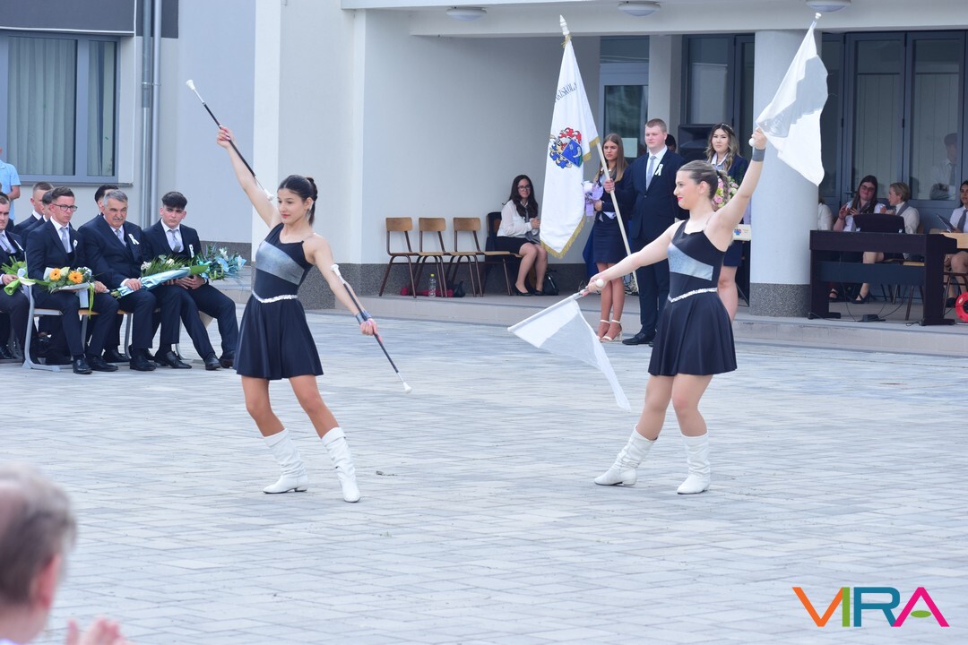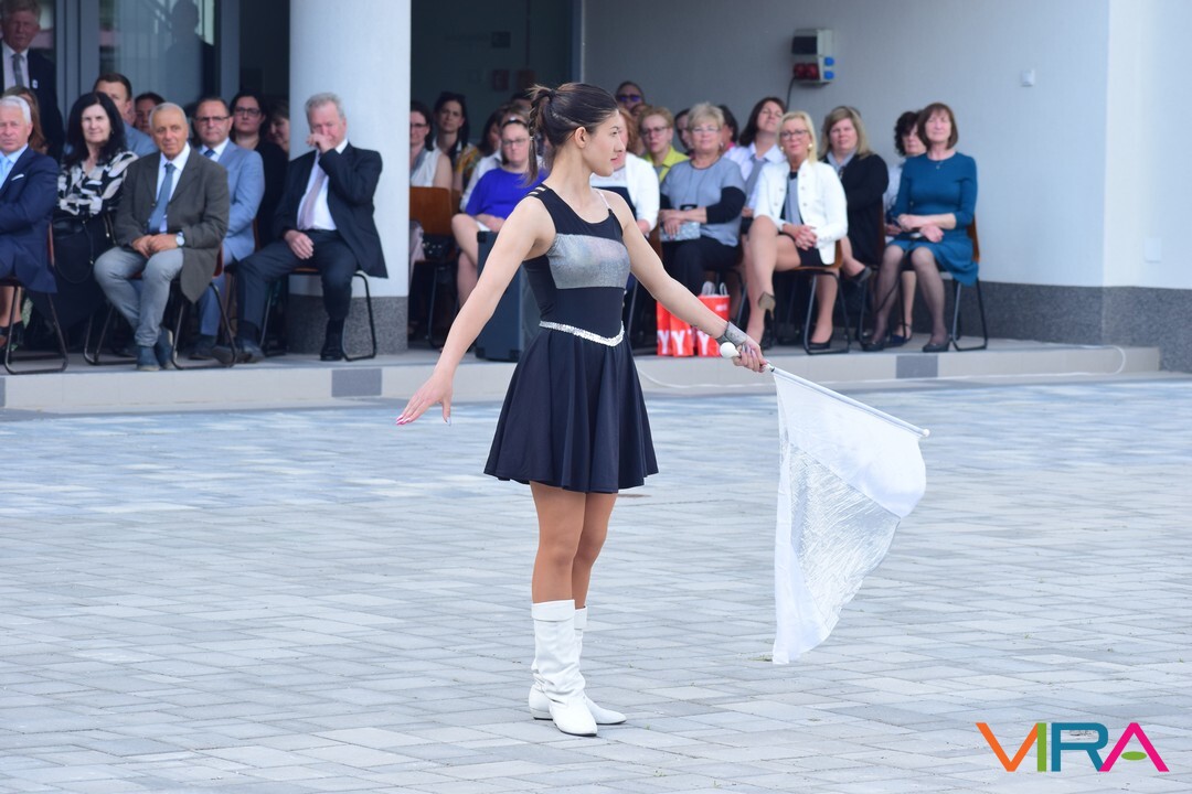 A búcsú beszéd után Szvetnyik Zsanett 10.B és Jónás Amina 11.B osztályos tanulók mazsorett bemutatóját csodálhatta meg a közönség.