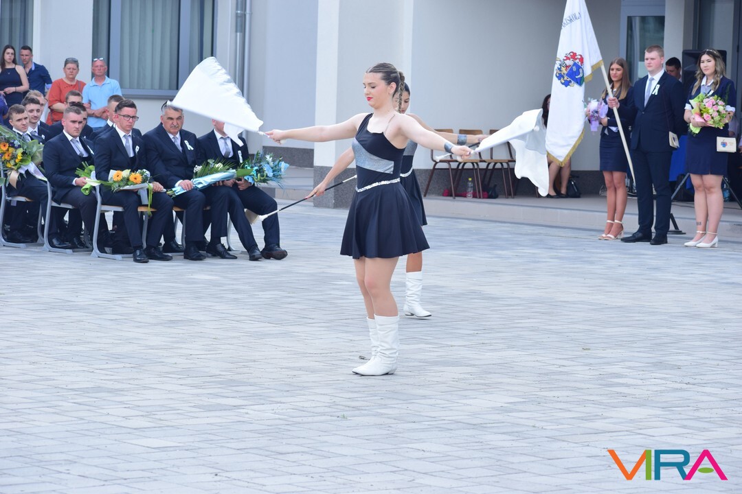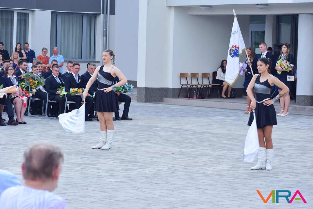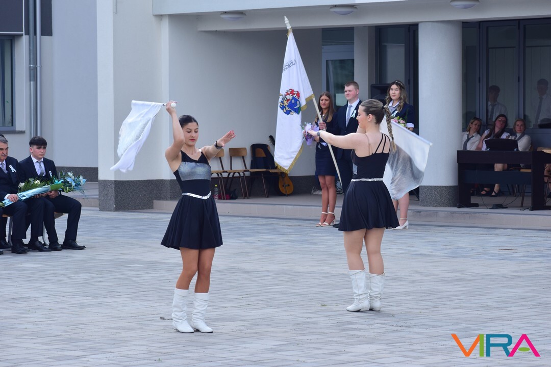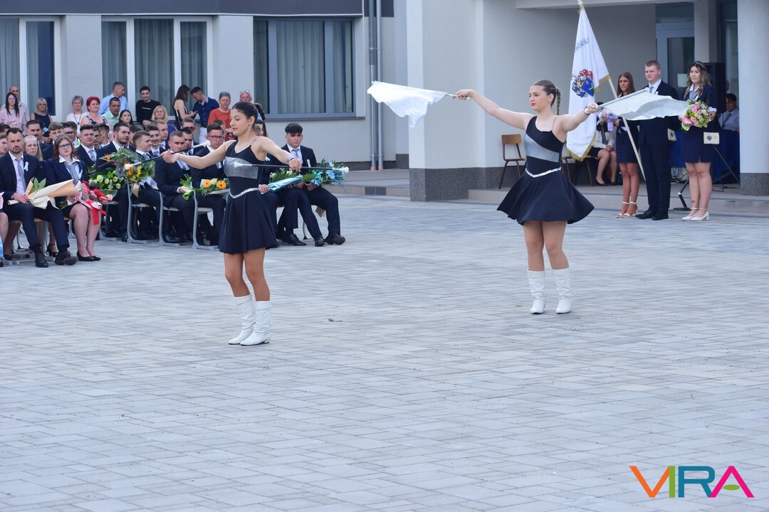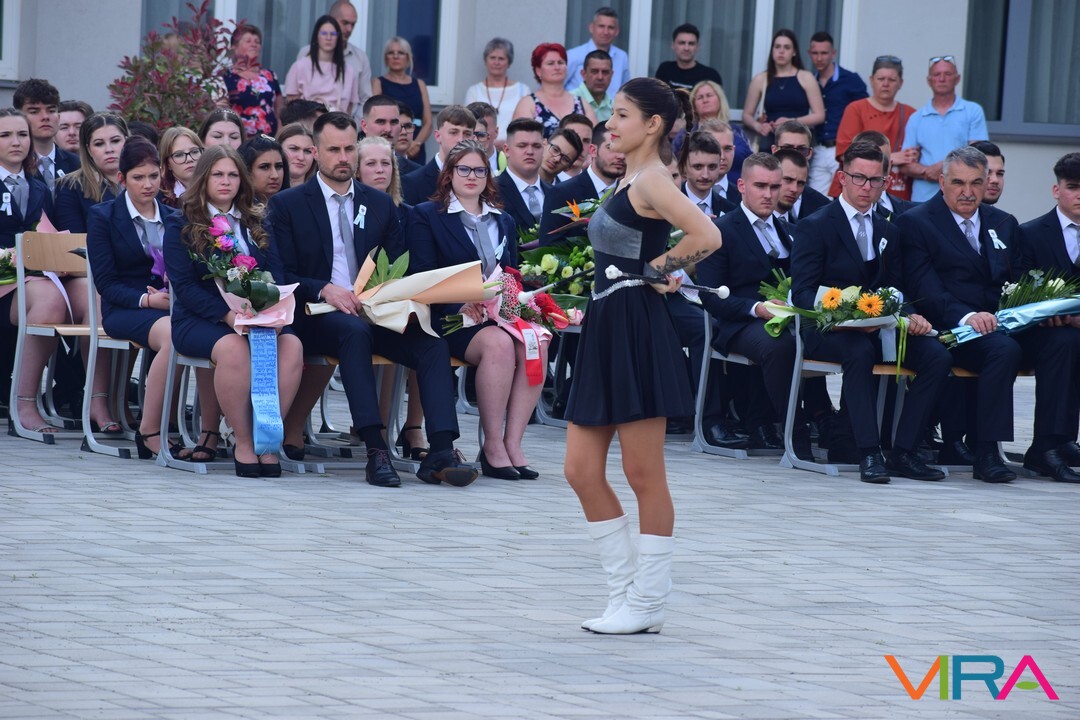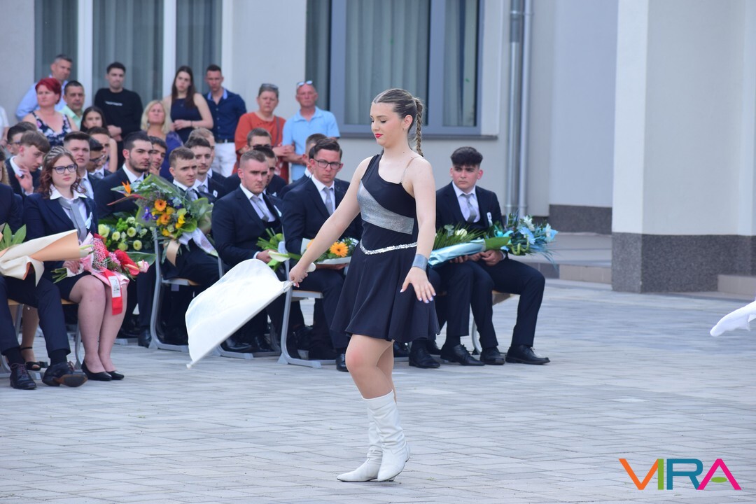 A búcsú beszéd után Szvetnyik Zsanett 10.B és Jónás Amina 11.B osztályos tanulók mazsorett bemutatóját csodálhatta meg a közönség.