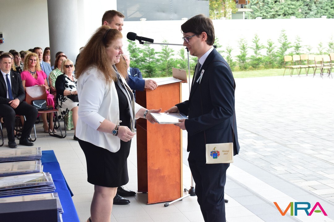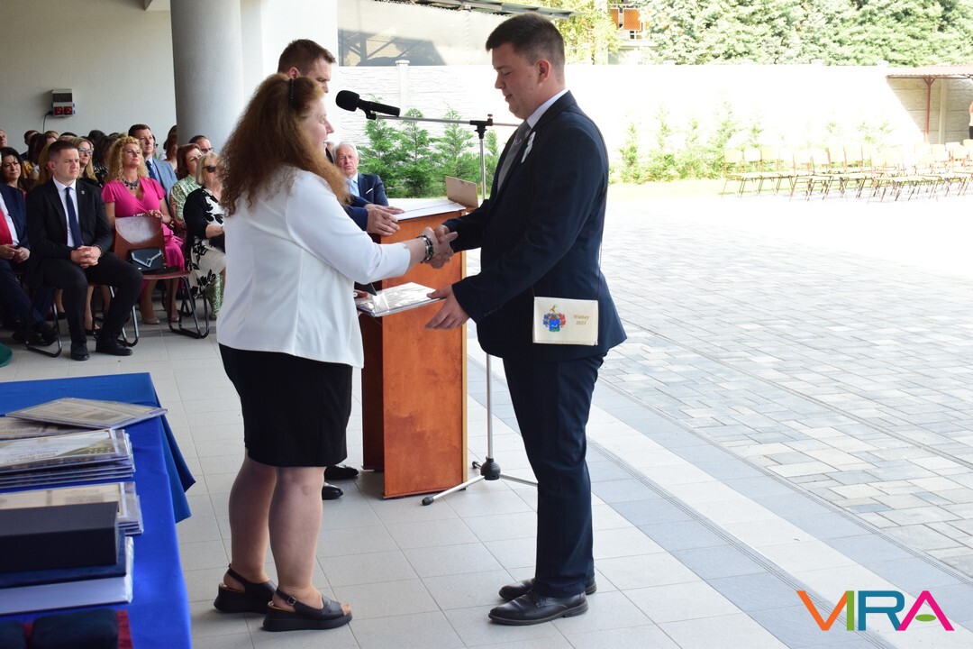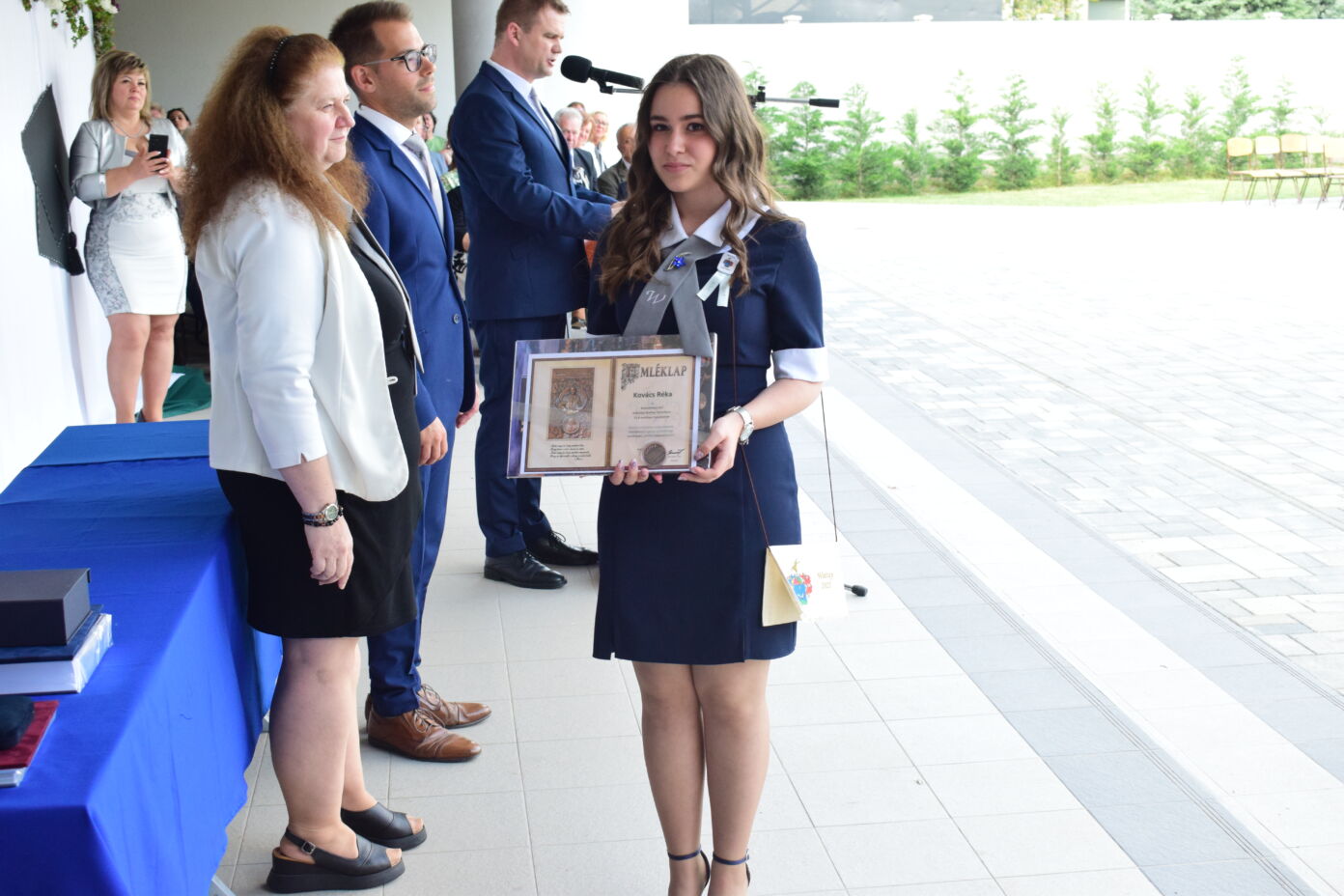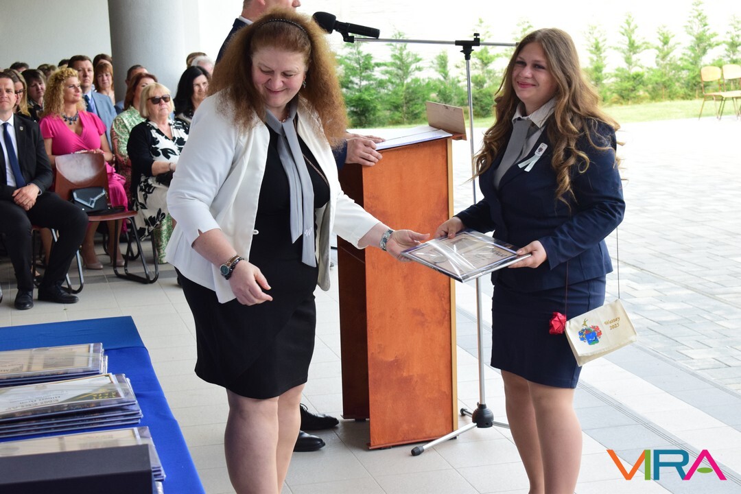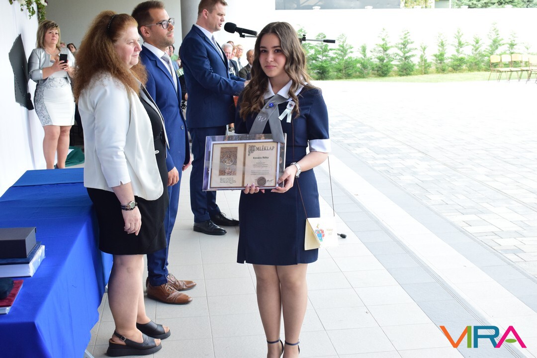 Illetve Kovács Réka kitűnő tanulmányi eredményéért, kiemelkedő szakmai és közösségi munkájáért, példás magatartásáért, és a diákönkormányzat vezetéséért. Réka néptánc fellépéseivel színesítette a városi és iskolai rendezvényeket.