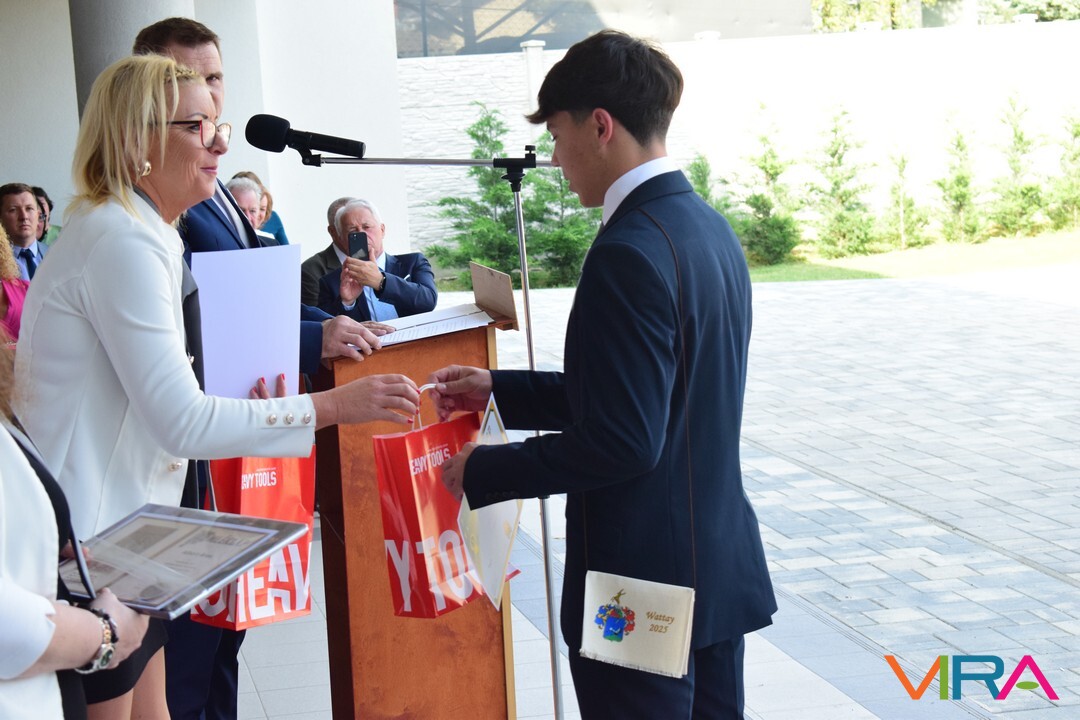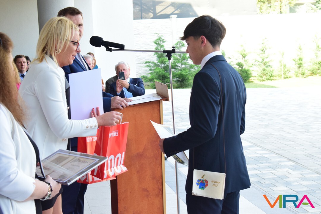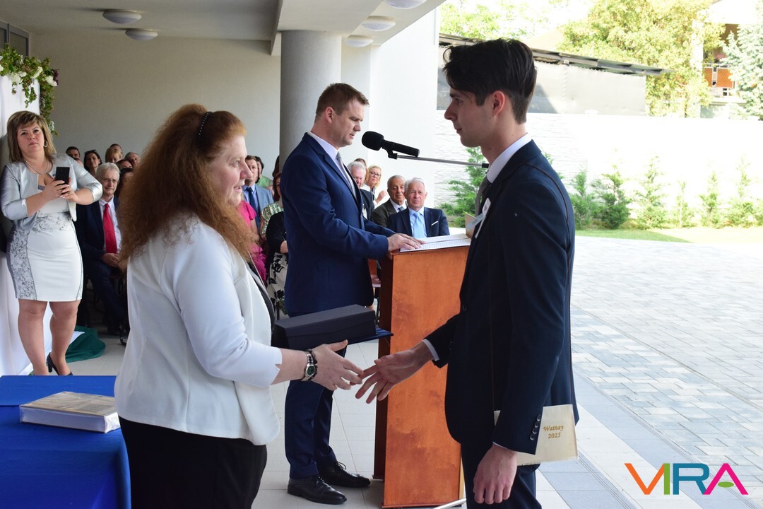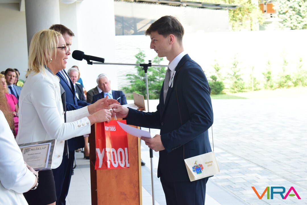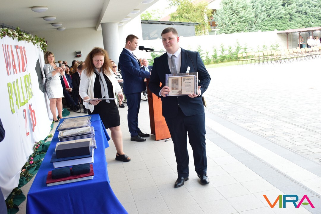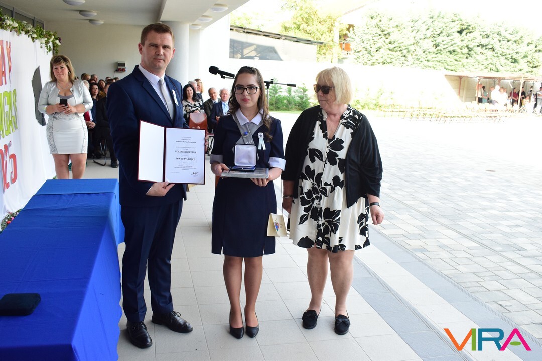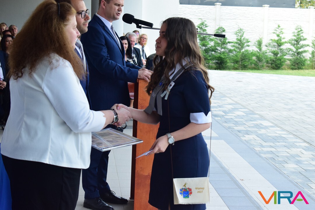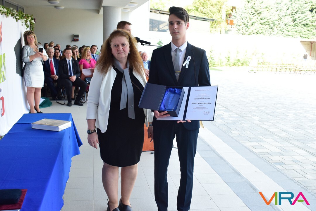 Az oktatói testület minden évben a végzős tanulók közül kiválaszt egy diákot, aki elnyeri a Wattay díjat, melyet idén Polereczki Petra 13.B osztályos, pénzügy és számviteli ügyintéző tanuló vehetett át. Szorgalmas, kitartó munkájának köszönhetően minden tanévben a megye, illetve az ország legjobb diákjai között volt a matematika versenyeken. Kilencedikesként megnyerte a MATEGYE megyei matematikaversenyt, majd a következő tanévekben is mindig dobogós helyezést ért el. Kilencedik évfolyamon a Zrínyi Ilona Matematikaverseny megyei fordulóján elért első helyezésével az országos döntőbe jutva 11. lett. A következő tanévekben az országos döntőben, ötödik helyezést ért el. Eredményeivel dicsőséget és sok elismerést szerzett az iskolának. A díjat Zboray Edina, a Wattay család leszármazottja adta át Benedek Tibor igazgatóval közösen a tanulónak.