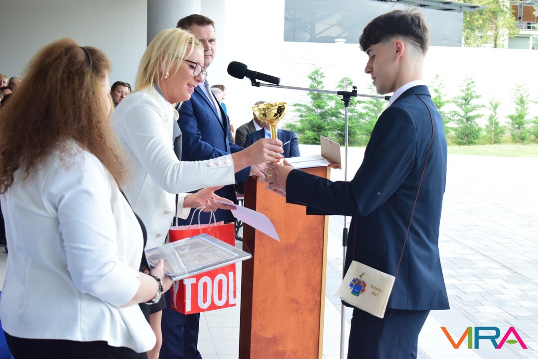 A Szakmunkásképzésért Alapítvány díját Keresztúri Adrián vehette át az idei évben, aki kiemelkedően szerepelt tanulmányi versenyeken, folyamatosan rész vett kulturális tevékenységekben. A Szép Magyar Beszéd Verseny megyei fordulóján első helyezést ért el, majd a Kárpát-medencei döntőben nyújtott teljesítményéért elnyerte az Anyanyelvápolók Szövetségének különdíját. Ugyanakkor, az Országos Szakmai Tanulmányi Versenyen elért helyezése alapján informatikai rendszer és alkalmazás-üzemeltető technikusként mentesül az interaktív vizsga letétele alól is. A díjat Fülöpné Horváth Mónika az alapítvány elnöke adta át.