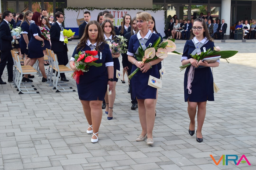A ballagási ünnepség keretein belül nemcsak a végzős diákoktól, hanem Torgyikné Rátkai Ildikótól is búcsúzott az iskola, aki a tanév végén nyugdíjba vonul.