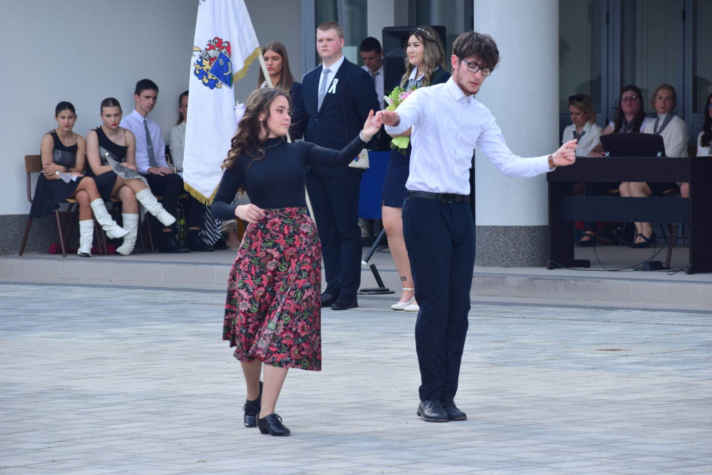 A Himnusz közös eléneklése után Tóth Bálint 9.A osztályos tanuló Reményik Sándor: Mi mindig búcsúzunk című versét szavalta el. Ezt követően Kovács Réka és Viczián Marcell végzős diákok modern néptáncot adtak elő.