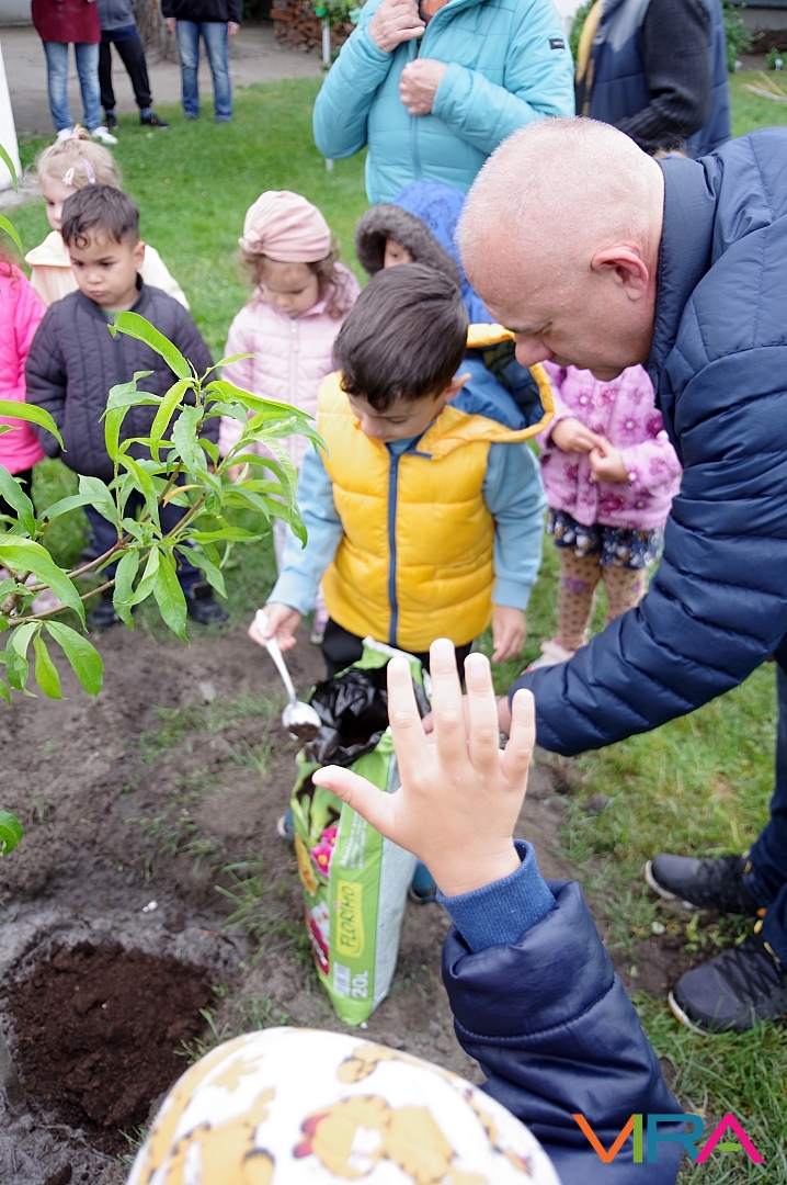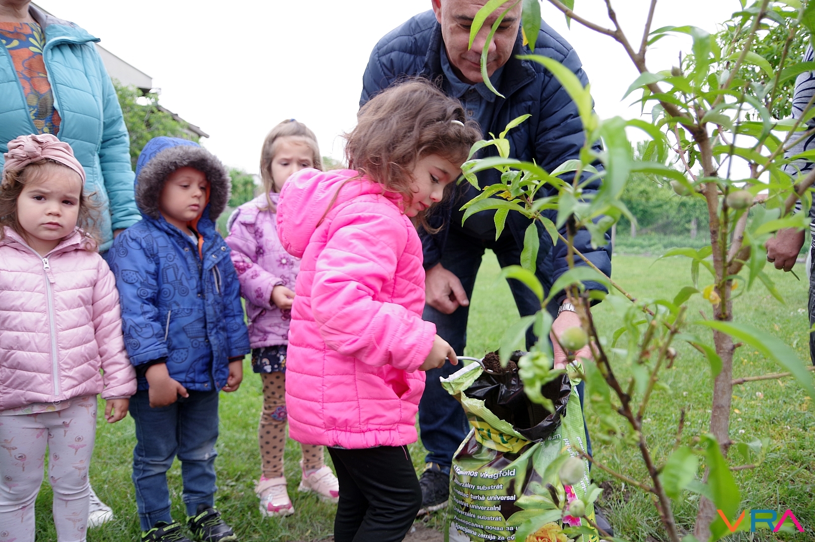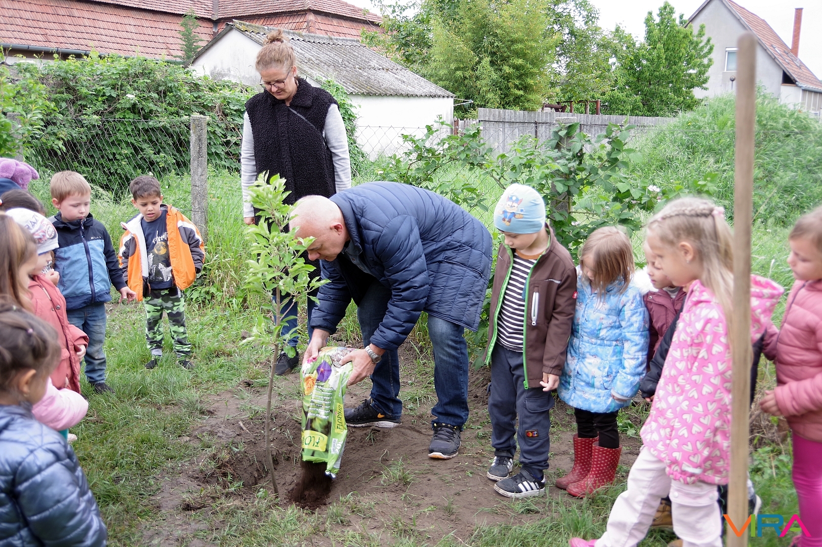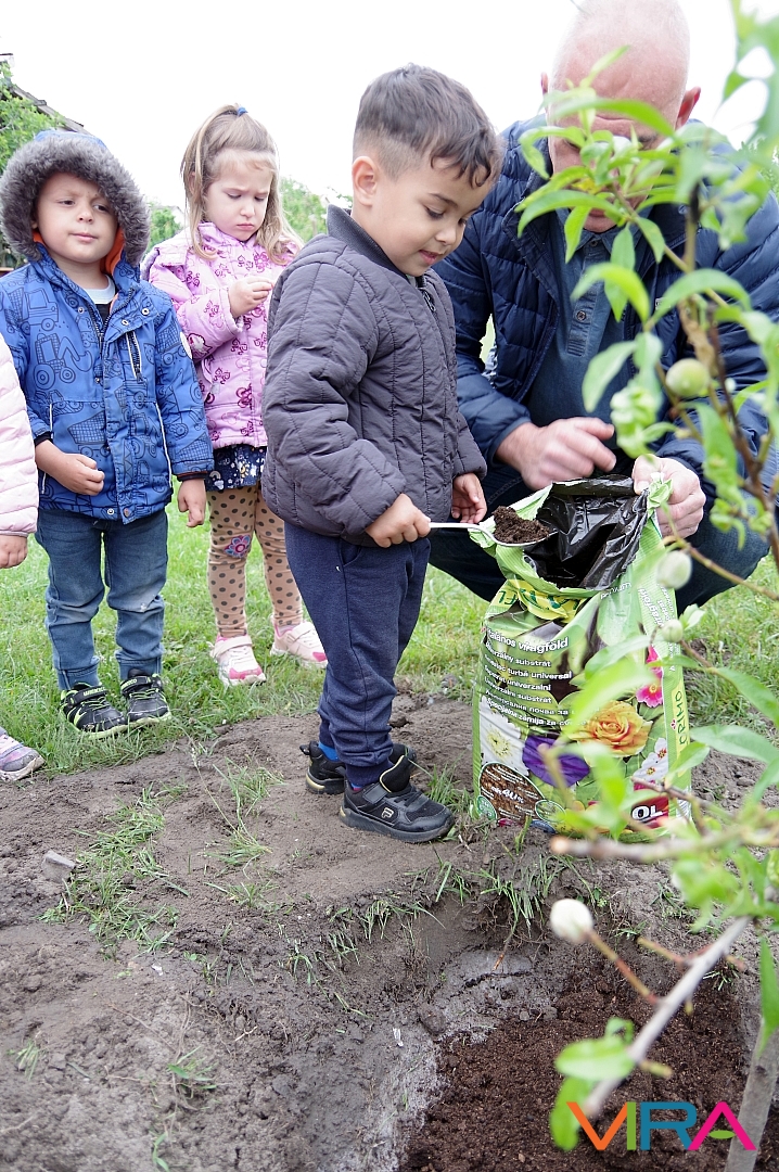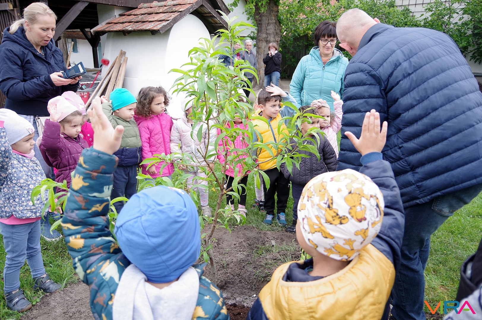 Az óvodásokat több csoportra osztották, akikkel közösen két barack, és 1-1 alma, valamin meggyfát ültettek el. A gyümölcsfákat Ba Irén kertészetétől kapták és az ültetésben Filus Tibor, az Ültess Fát Mozgalom Egyesület elnöke volt a segítségükre. Az almafát a gyermekek „örökbe fogadták” és minden évben megtekinthetik annak növekedését, valamint a termését meg is kóstolhatják majd.