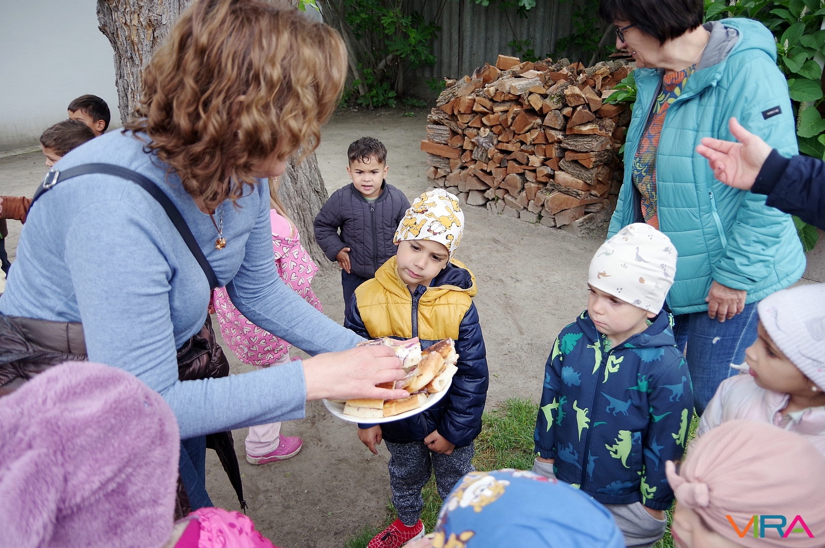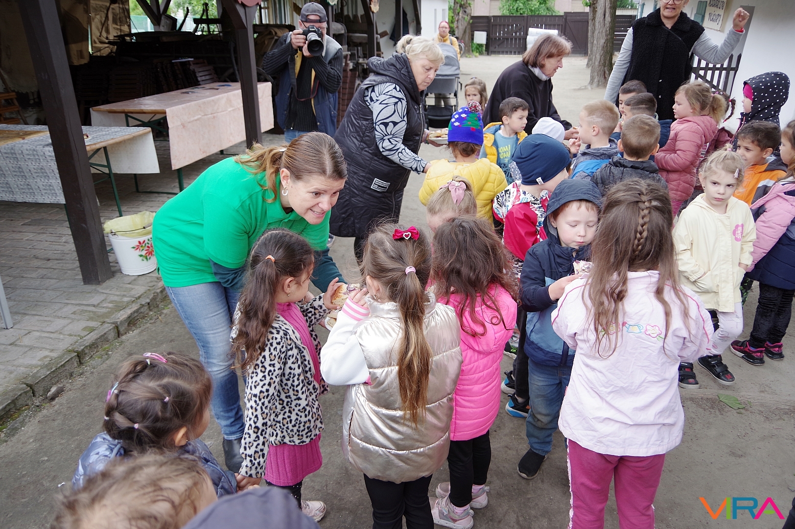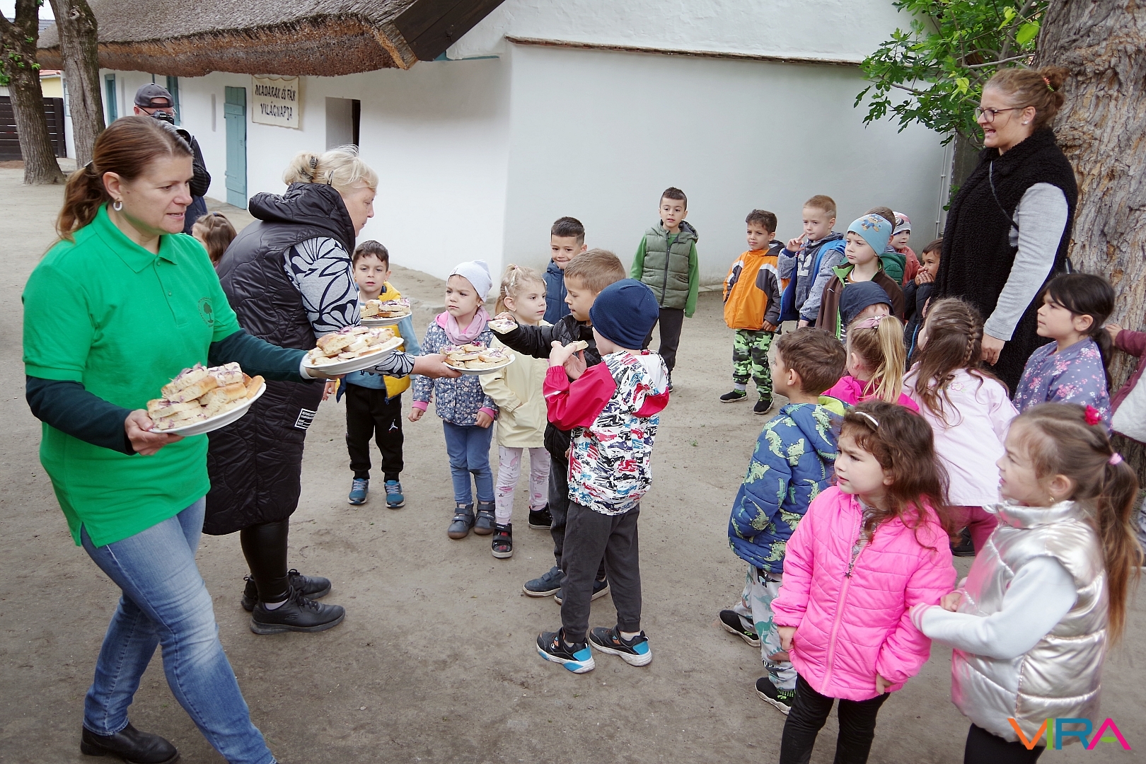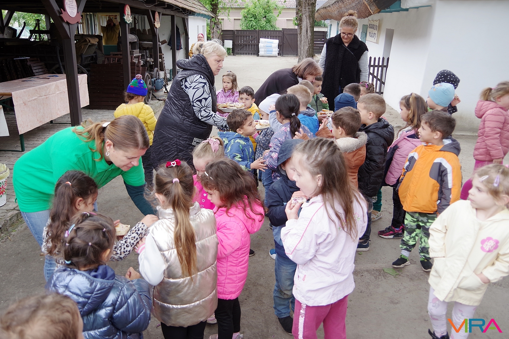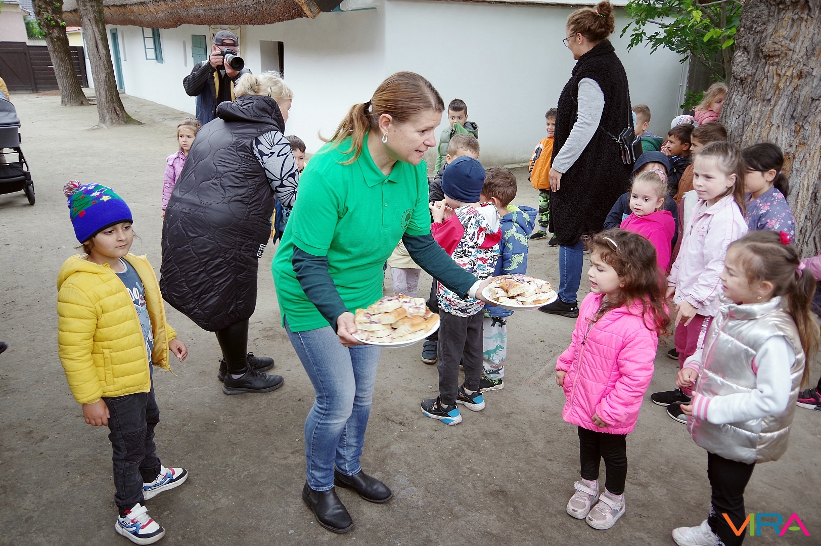 A délelőtt folyamán Szűcsné Hajdú Mária és Pazdernyik Sándorné a Szlovák Tájház udvarában található kemencében kenyérlángost sütött, amit jó étvággyal fogyasztottak el a gyermekek.