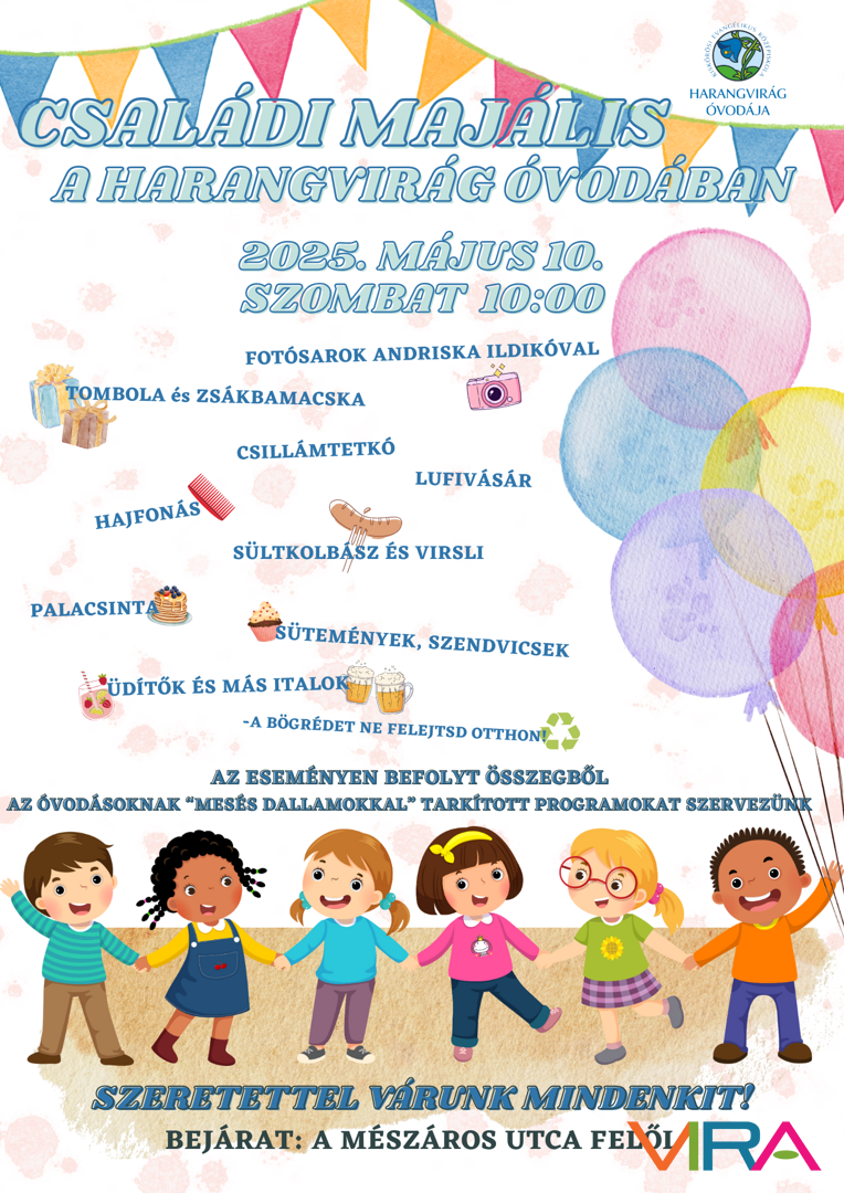 2025. május 10-én különleges eseményre került sor a KEVI Harangvirág Óvodájában. Első alkalommal rendezték meg Családi Majálisukat, melynek célja nem csupán a közös kikapcsolódás volt, hanem az is, hogy hagyományt teremtsenek, valamint tovább erősítsék a családok és az óvoda közötti kapcsolatot.