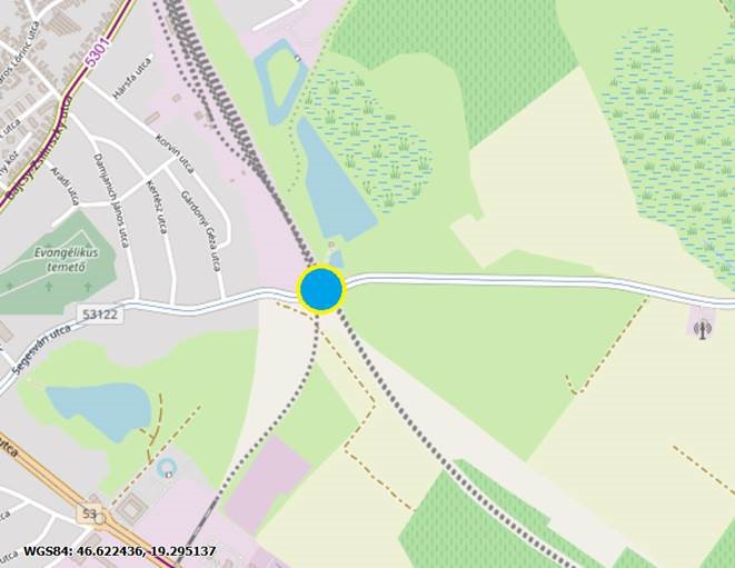 1013+49 hmsz szelvényben található szintbeni útátjáró (Segesvári út, 53122 j. országos közút teljes zárásának időpontja: