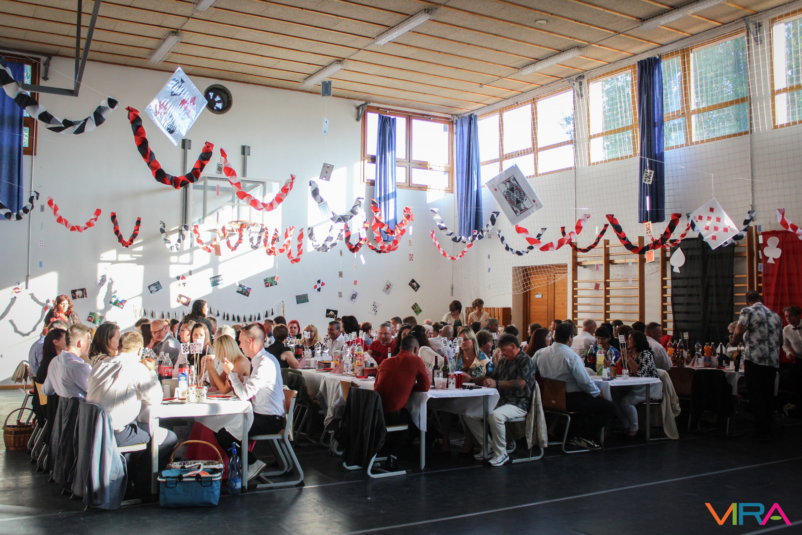 A vendégek, akik közel 120-an érkeztek, az aperitif elfogyasztása után elfoglalták a helyüket, majd Kriszt Nóra gyógypedagógus, illetve Schaffer István intézményvezető köszöntötte őket 18 órakor. Az intézményvezető megköszönte a szülők és a pedagógusok nagymértékű munkáját, amit a jótékonysági majális szervezésébe fektettek.