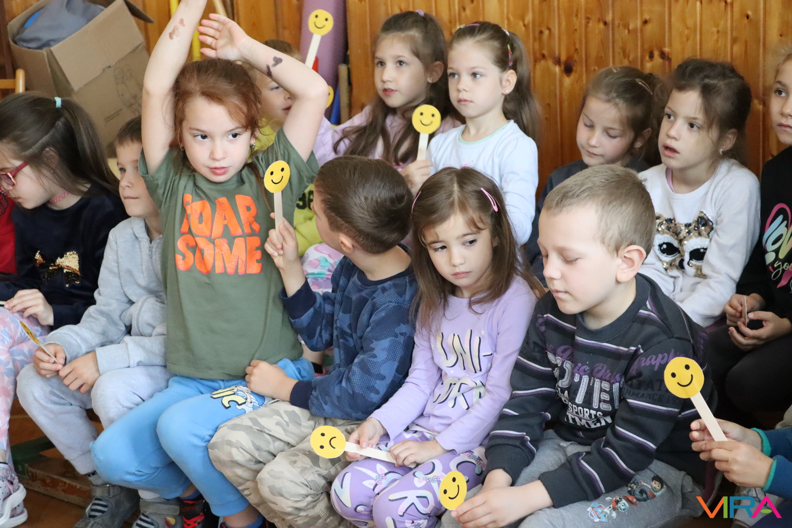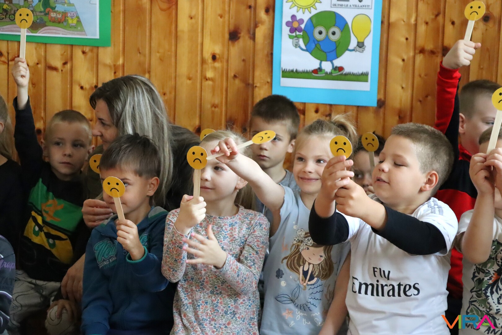 A bemutatkozást követően egy igaz-hamis játékkal mérték fel a kiskőrösi gyerekek tudásszintjét a szakemberek, melyhez segítségükre volt egy mosolygós és szomorú táblácska. Az óvodapedagógusoknak köszönhető előzetes, heteken át tartó alapos felkészülés megmutatkozott a gyerekek válaszaiban, hozzászólásaiban, aminek rendkívül örültek a vendégek.