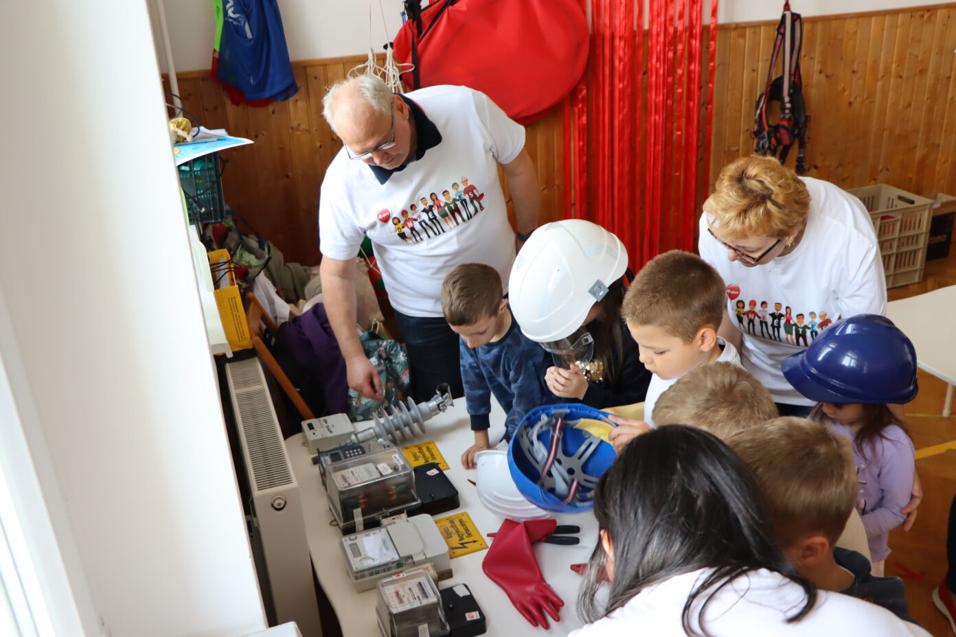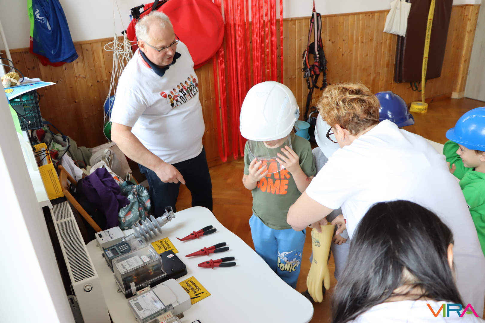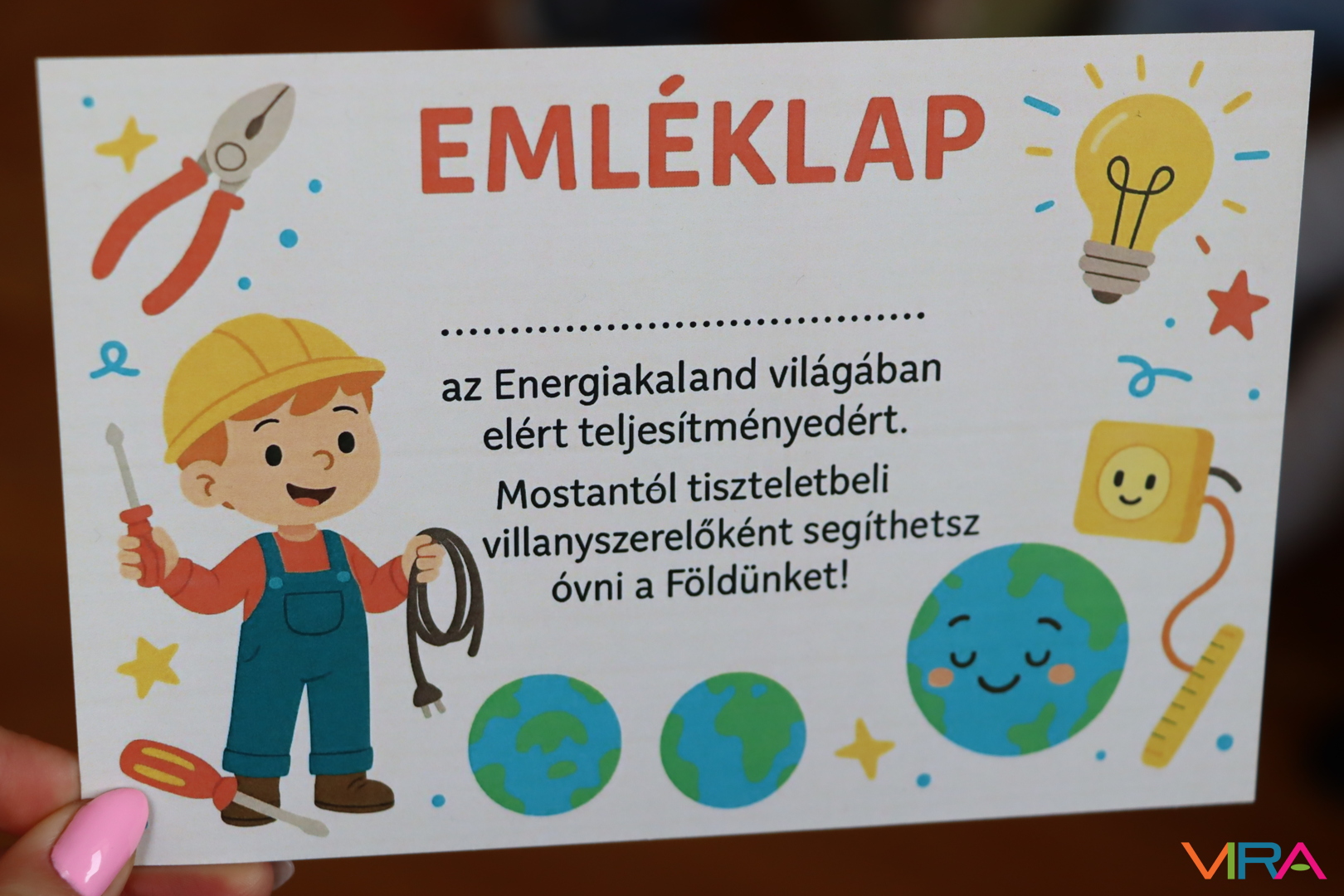 A sorversenyen villanyszerelők bőrébe bújhattak a kicsik, amiért névre szóló tiszteletbeli villanyszerelő oklevelet kaptak.