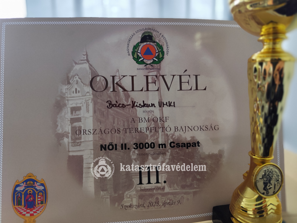 A Női II. korcsoport csapat versenyszámban a Bács-Kiskun Vármegyei Katasztrófavédelmi Igazgatóság csapat III. helyezést ért el. A csapat tagjai: Verebélyiné Bartus Nóra tű. százados, Szávai Luca tű. főhadnagy és Borbély Aliz.