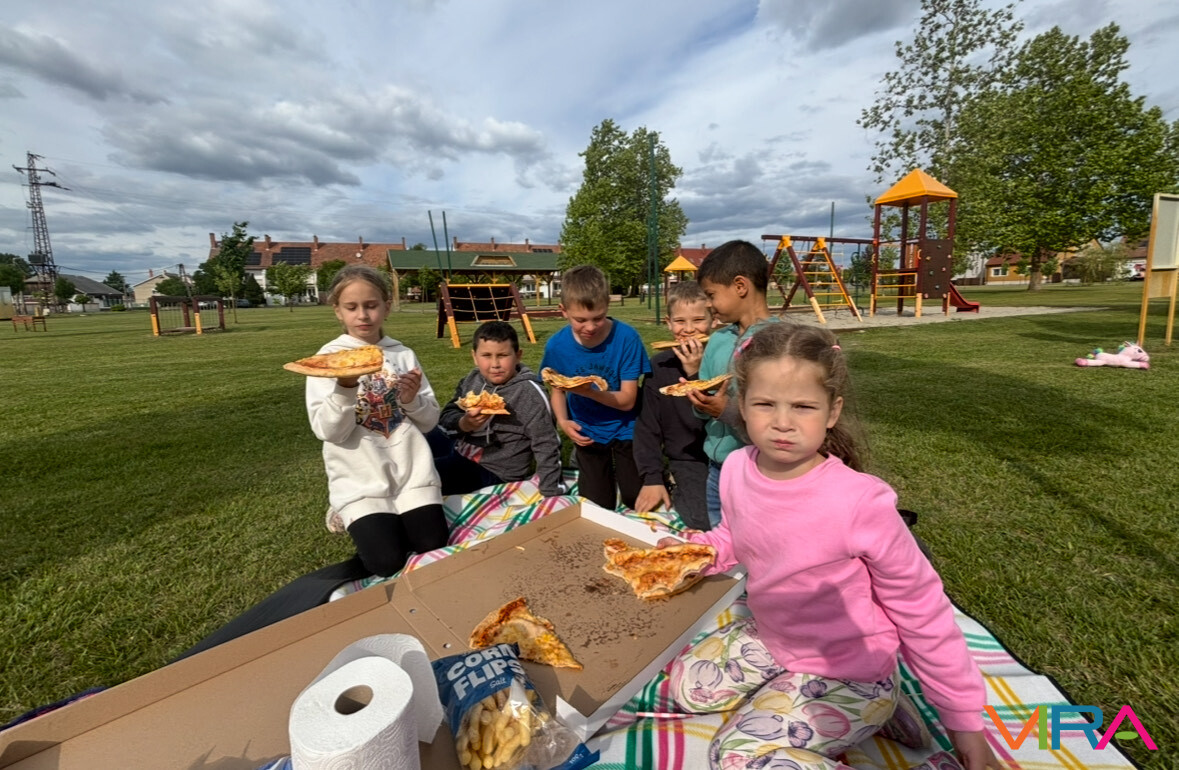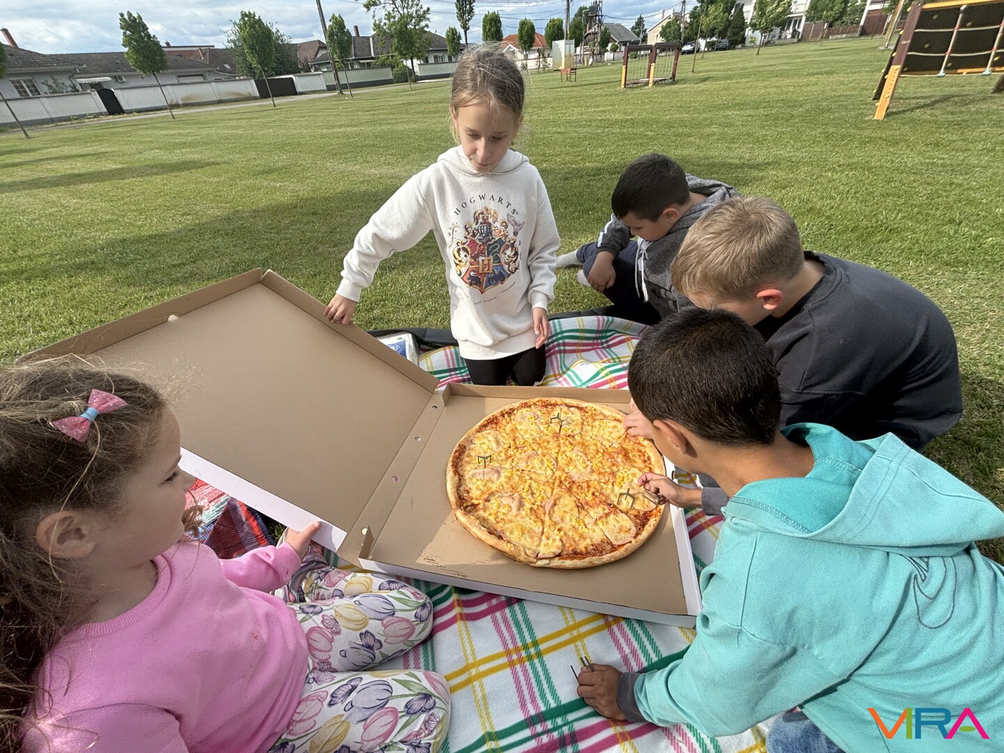 Az ambrózia mellett olivabogyó kóstolás is volt, és az egyik anyuka óriás pizzával lepte meg a gyerekeket. Kiskőrös összes ismert játszóterét bejártuk. A gyerekek elfáradtak, de fantasztikus napot tudhatunk magunk mögött