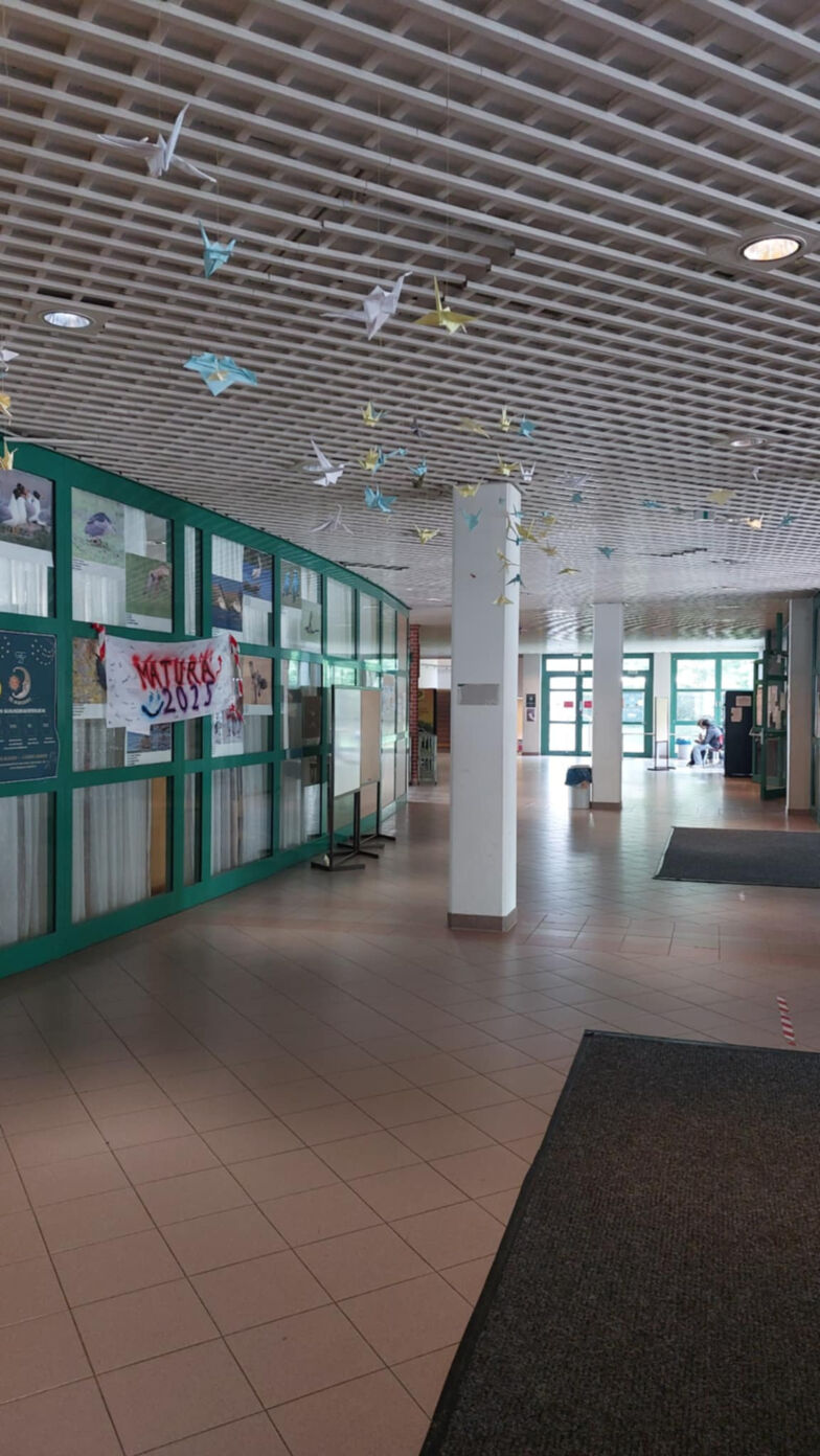 A vendéglátó iskola belső terme nagyon gyermekbarát, színes és világos