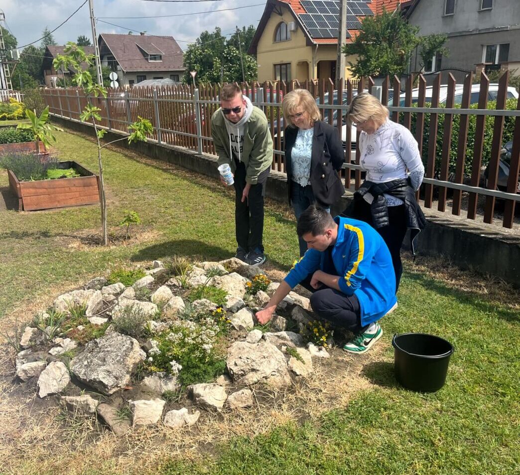 A következő az Udvaros modul volt, melyhez szintén tételeket kellett húzni. Ezeken Munka- és balesetvédelem, Növény körüli gyomtalanítás, Öntözés, tápanyag-utánpótlás, Fűnyírás fűnyíróollóval, Járdatakarítás, Eszközismeret és növény kiültetése szabadföldbe szerepel. A tanulók nagyon fegyelmezetten, a szabályok betartásával végezték feladataikat.