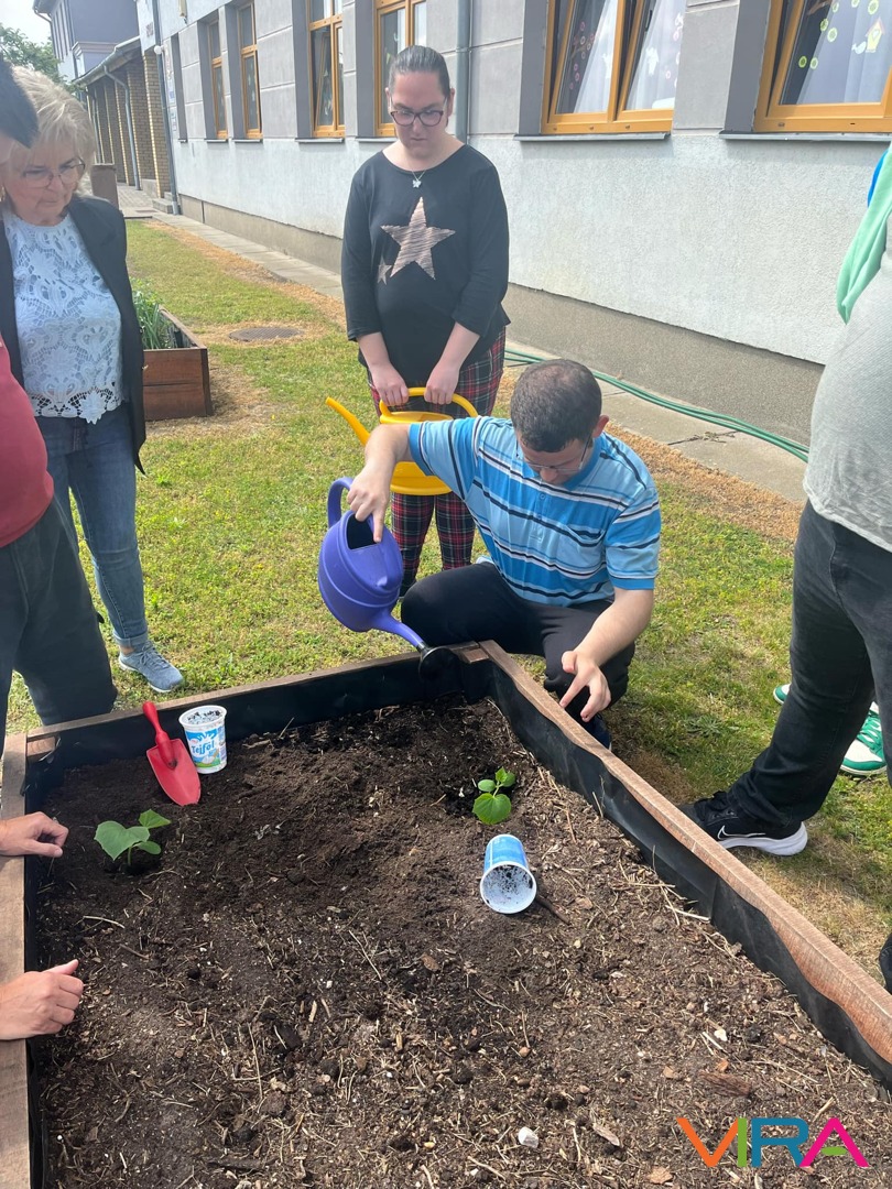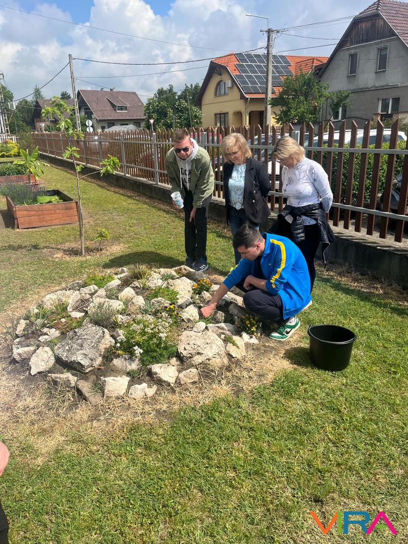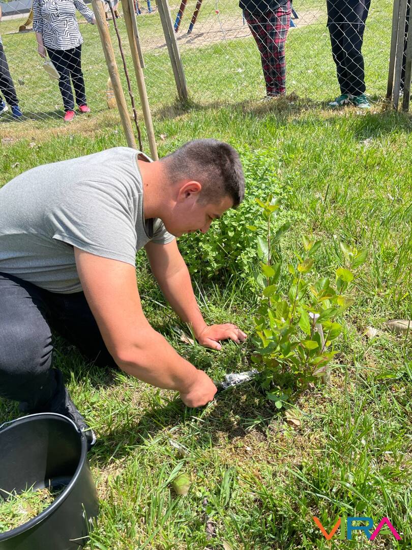 A következő az Udvaros modul volt, melyhez szintén tételeket kellett húzni. Ezeken Munka- és balesetvédelem, Növény körüli gyomtalanítás, Öntözés, tápanyag-utánpótlás, Fűnyírás fűnyíróollóval, Járdatakarítás, Eszközismeret és növény kiültetése szabadföldbe szerepel. A tanulók nagyon fegyelmezetten, a szabályok betartásával végezték feladataikat.