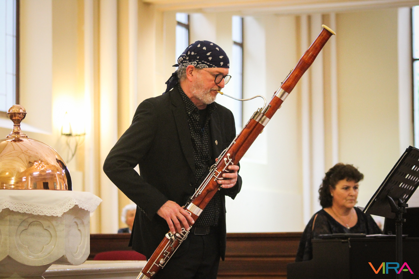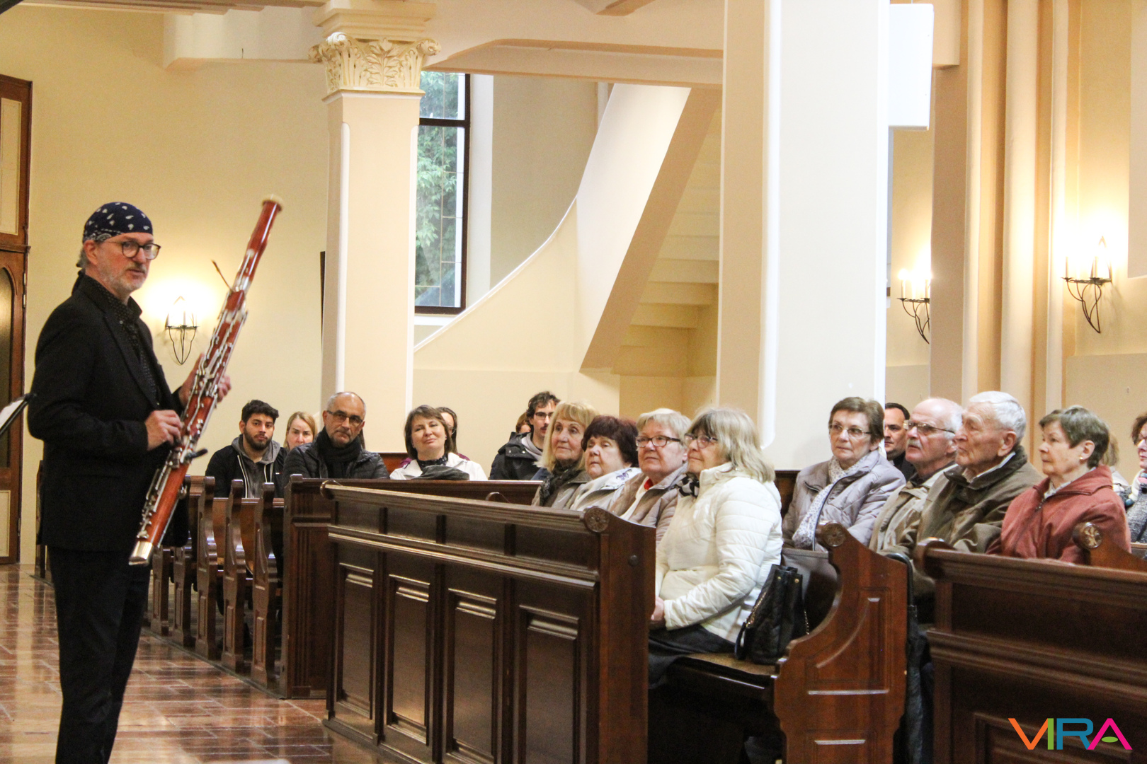 A különleges zenei élményt fokozta a fagottművész közvetlensége a közönséggel szemben, a kiemelkedő zenei művek előadása közben: