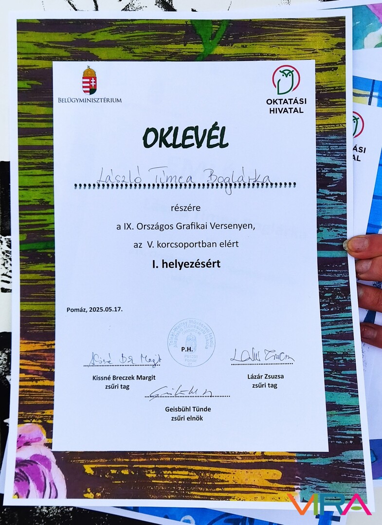 Nagy örömünkre V. korcsoportban: 1. helyezést ért el László Tímea Boglárka (amivel a felsőoktatási felvételi eljárás során +10 pontot szerzett)