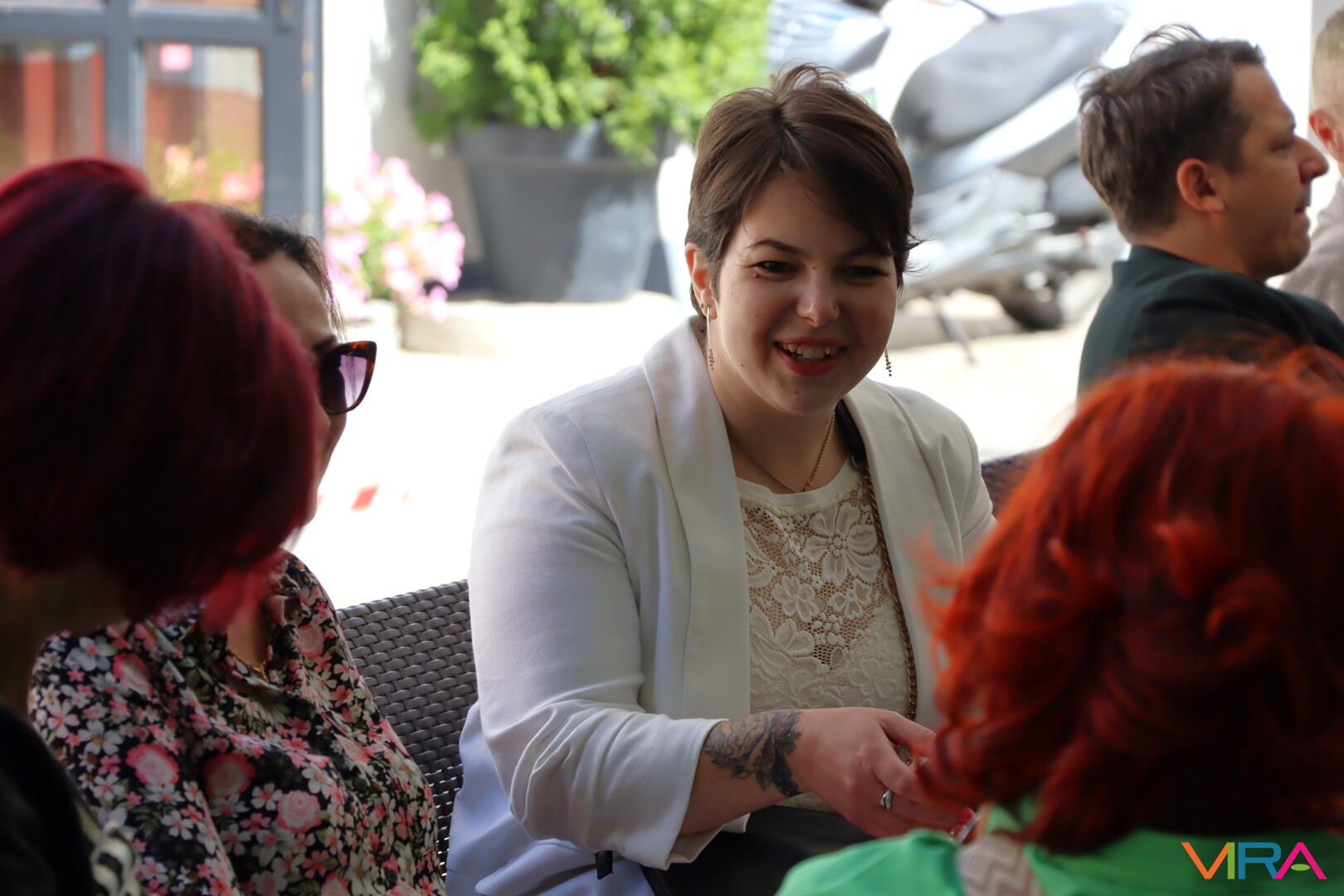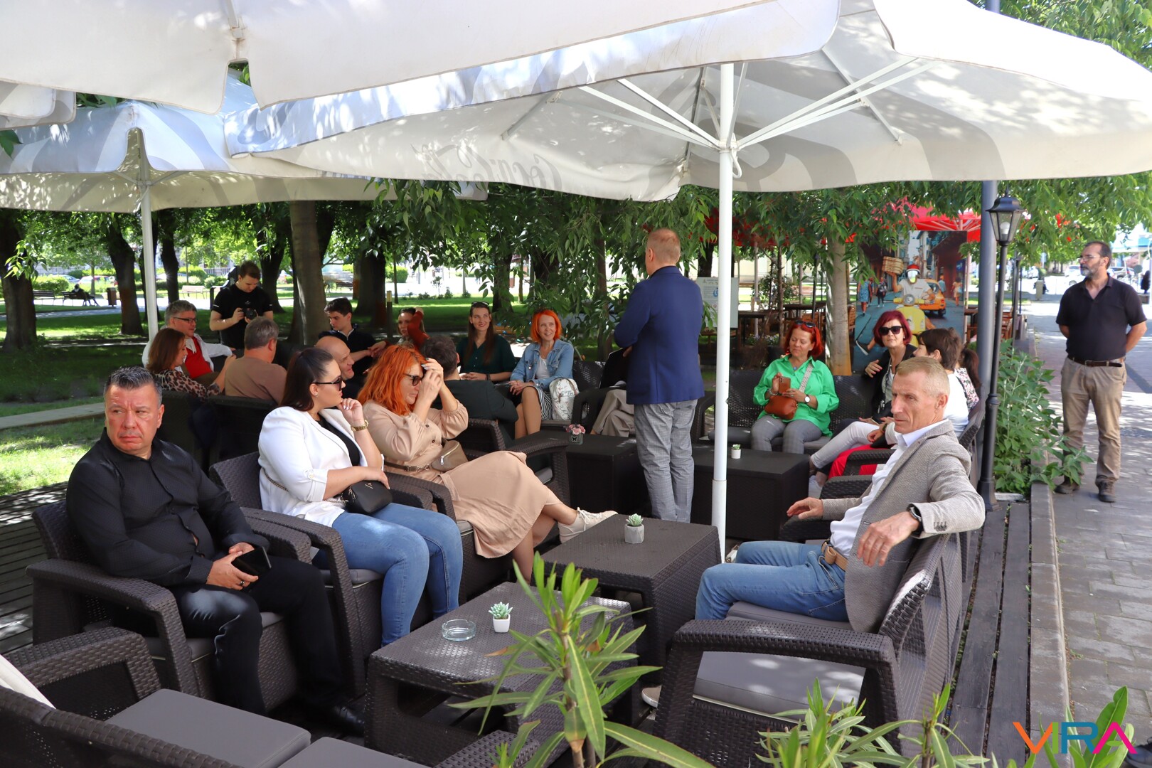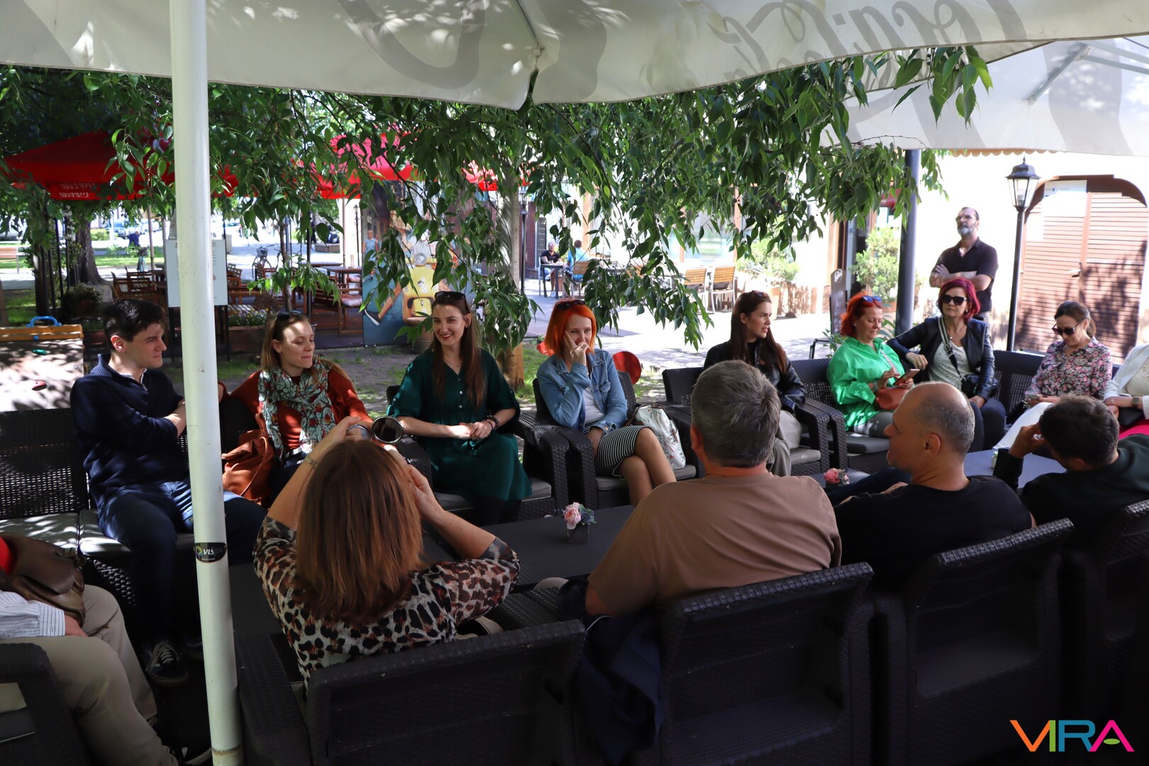 Ezt követően egy kis városközponti séta után a Petőfi Korzó Kávéház teraszán folytatódott a délután, ahol kávéházi hangulatban kötetlen beszélgetésre is sor került.