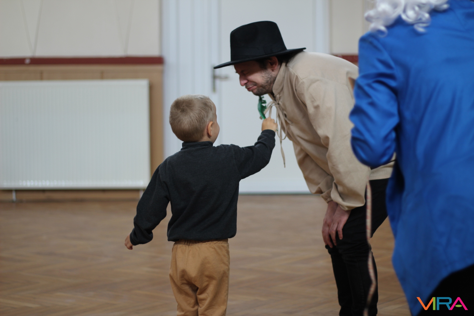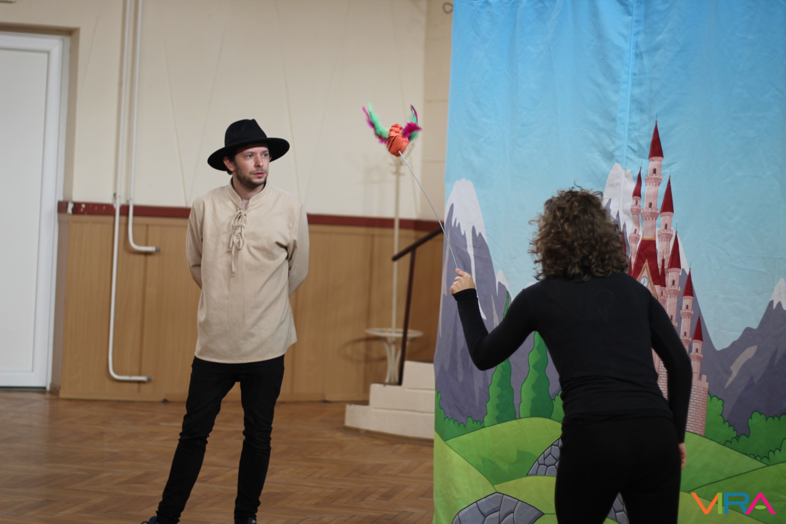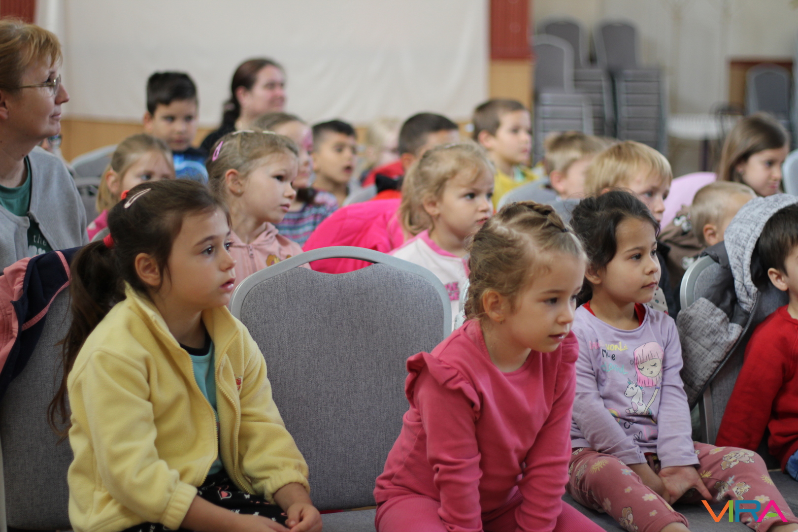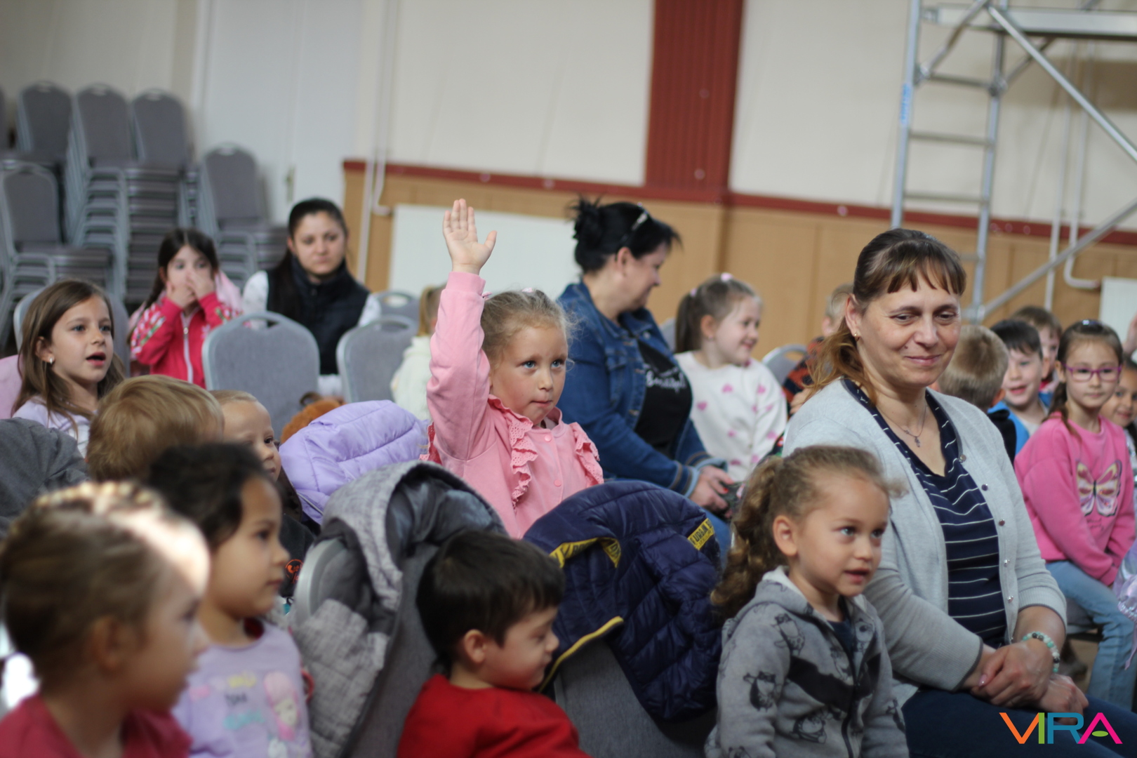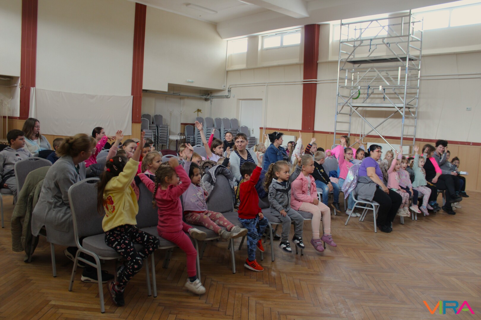 Az interaktív mesejátékot Mesés Gábor és Sóti-Mihalics Klaudia adta elő játékosan, mozgással kísért feladatokon keresztül bevonva a gyermekeket a történetbe. Az előadás során kiemelt hangsúlyt kapott a türelem, a figyelem és a nyelvi készségek fejlesztése – mindezt a gyerekek számára élvezetes, mesebeli keretben.