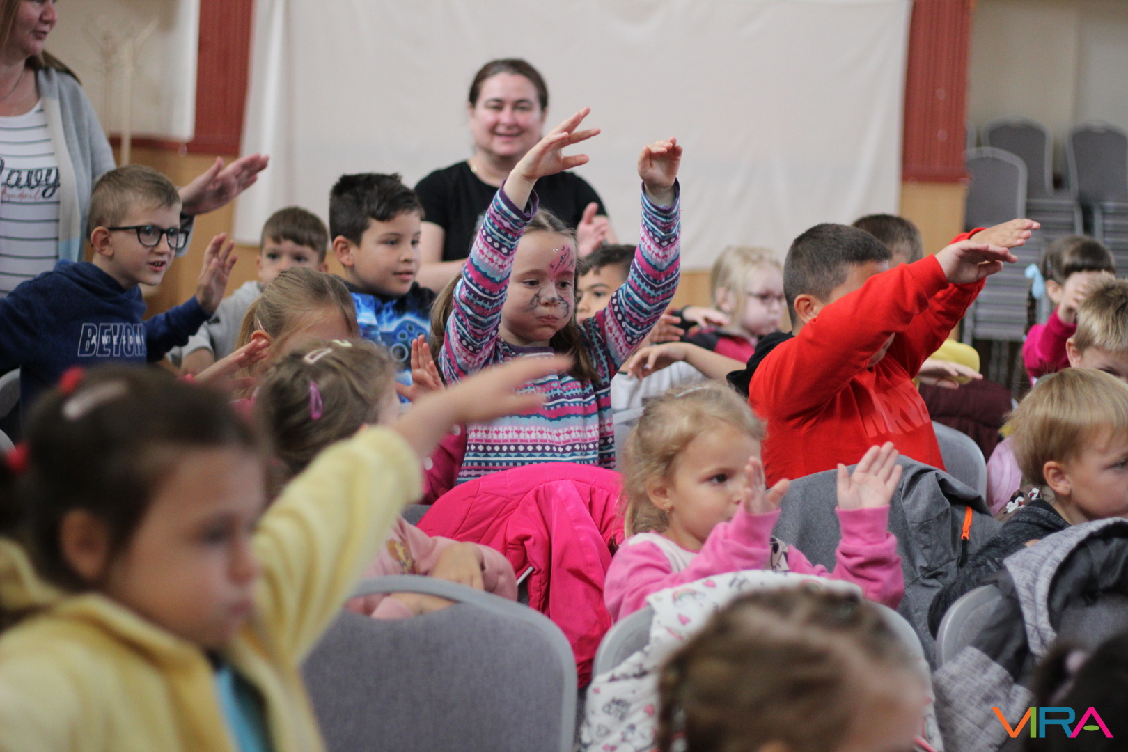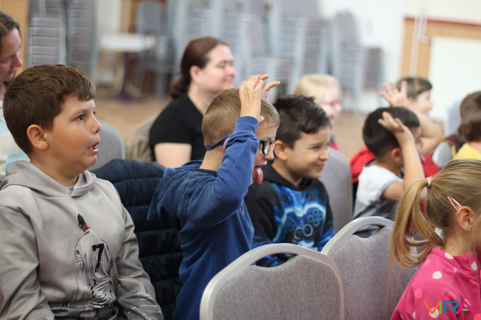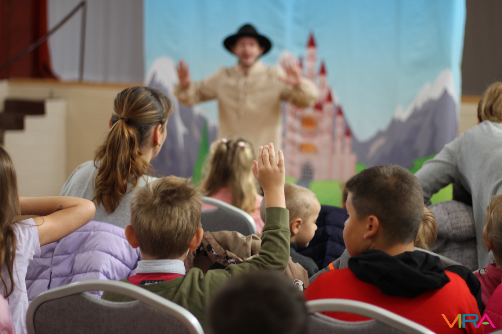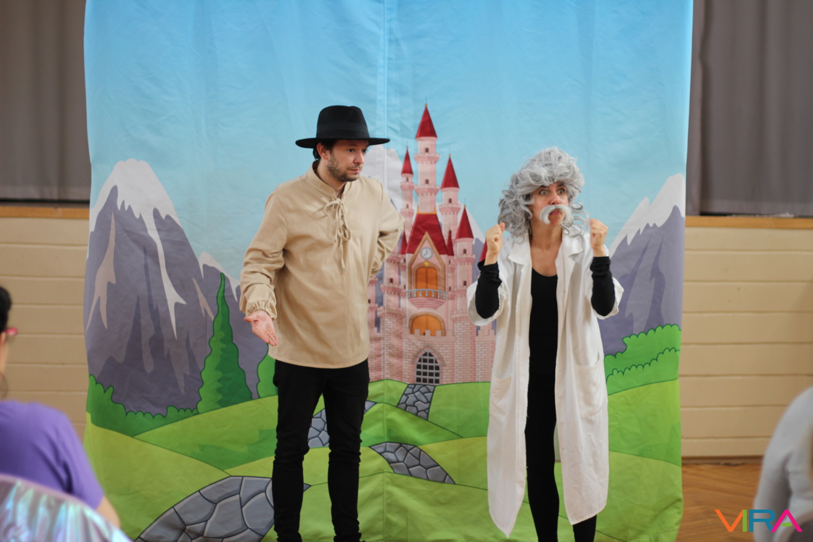 Az interaktív mesejátékot Mesés Gábor és Sóti-Mihalics Klaudia adta elő játékosan, mozgással kísért feladatokon keresztül bevonva a gyermekeket a történetbe. Az előadás során kiemelt hangsúlyt kapott a türelem, a figyelem és a nyelvi készségek fejlesztése – mindezt a gyerekek számára élvezetes, mesebeli keretben.