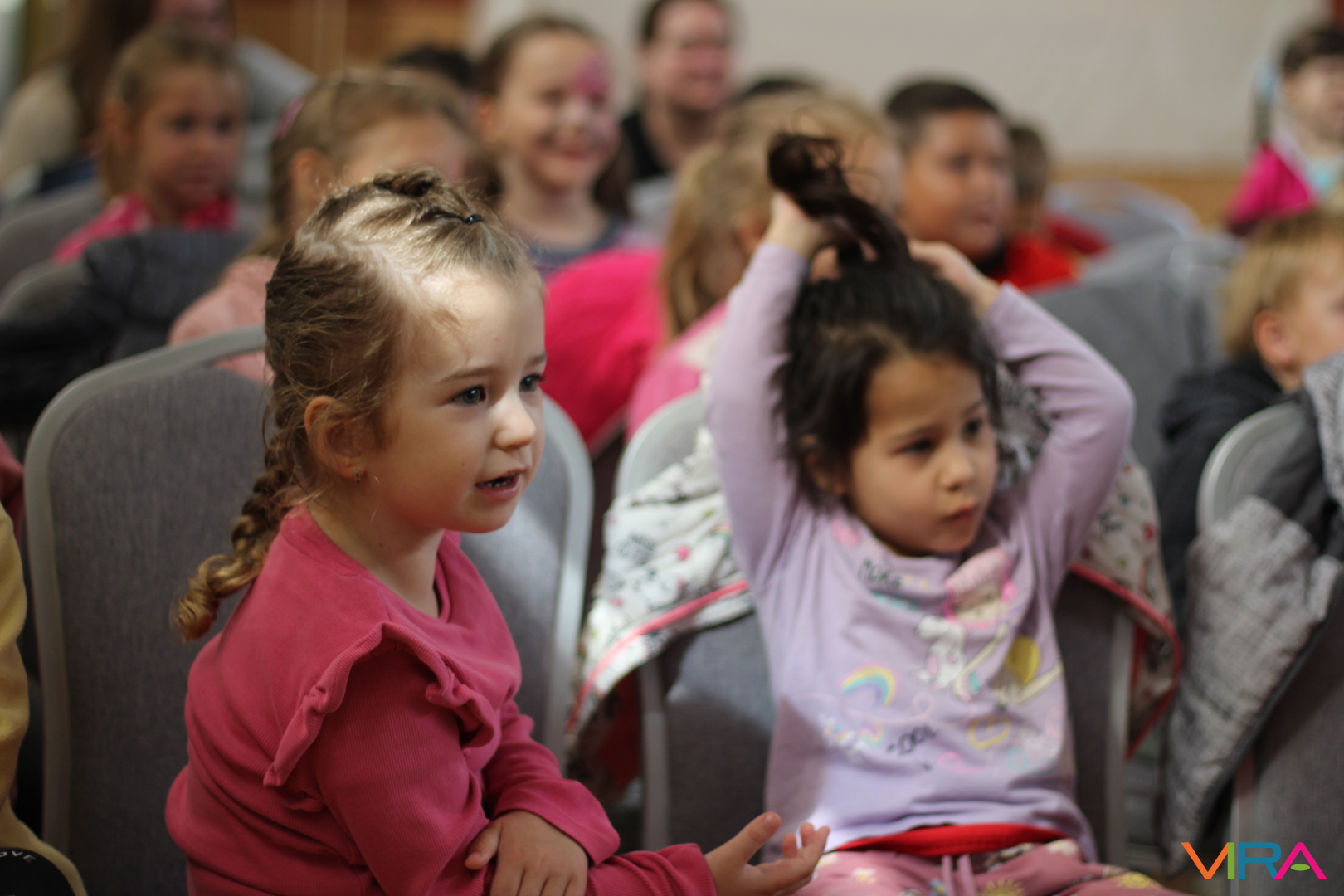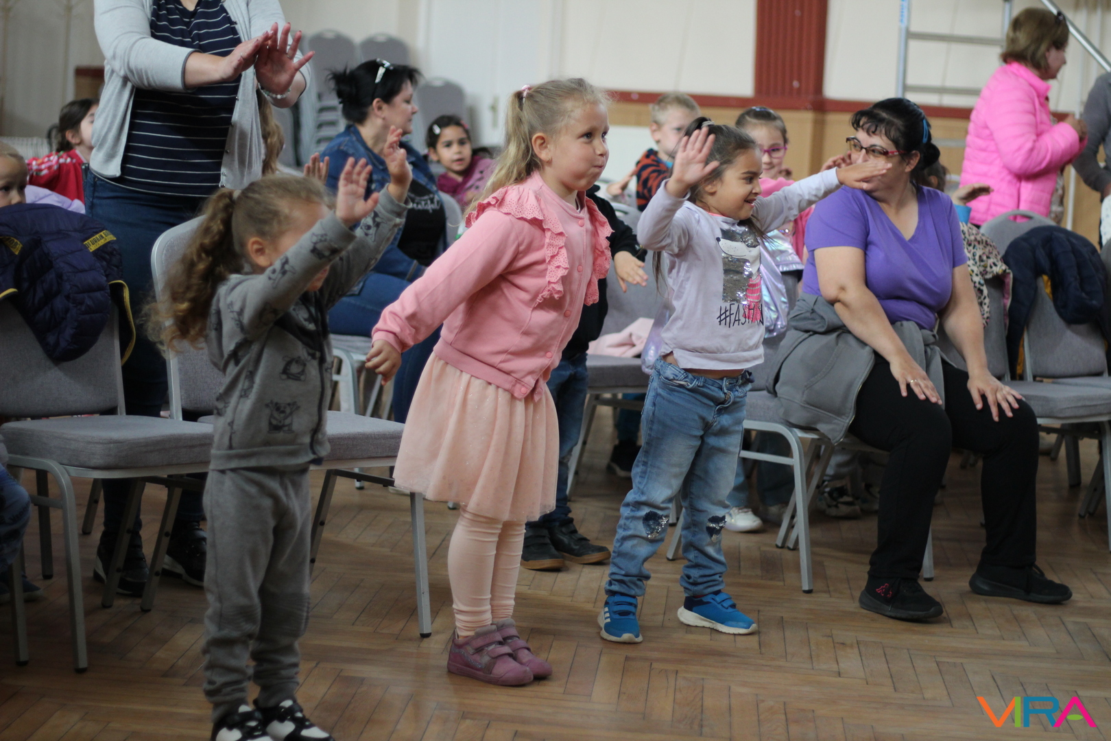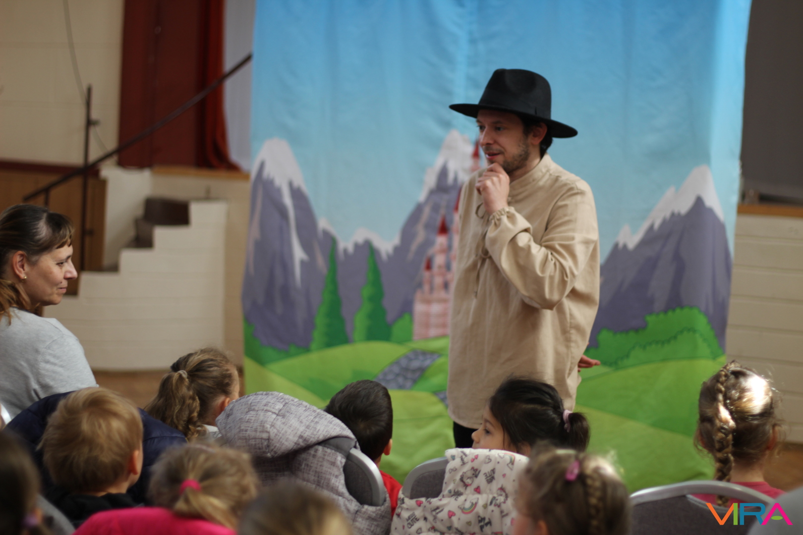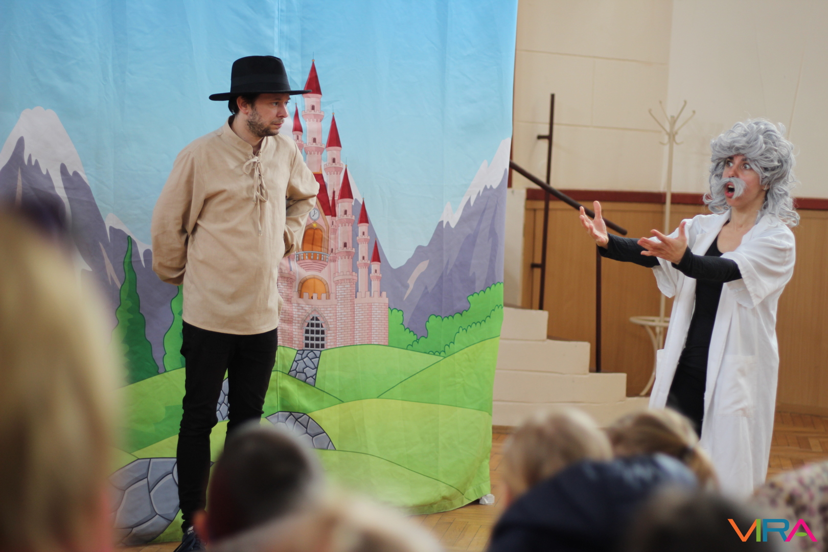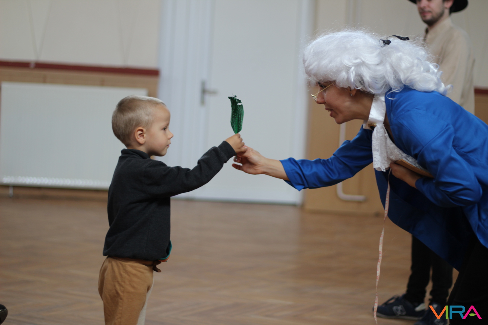 Az interaktív mesejátékot Mesés Gábor és Sóti-Mihalics Klaudia adta elő játékosan, mozgással kísért feladatokon keresztül bevonva a gyermekeket a történetbe. Az előadás során kiemelt hangsúlyt kapott a türelem, a figyelem és a nyelvi készségek fejlesztése – mindezt a gyerekek számára élvezetes, mesebeli keretben.