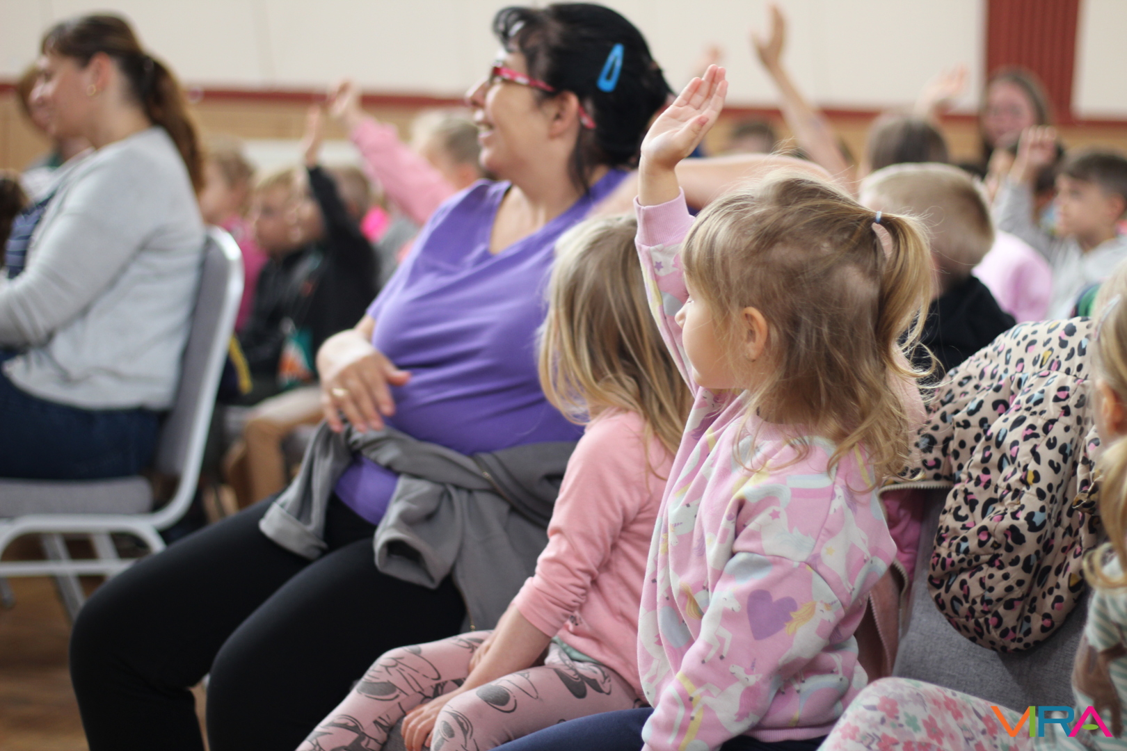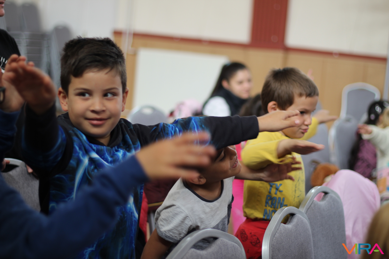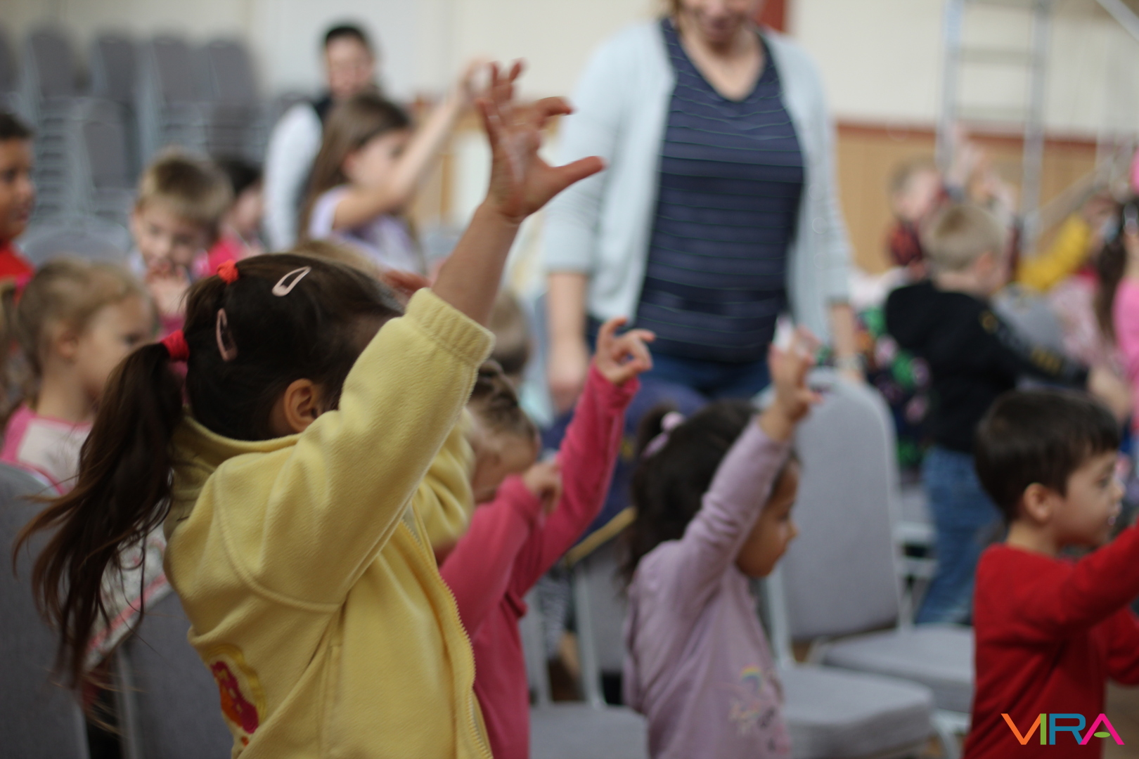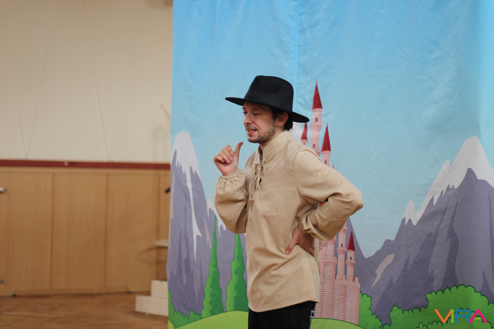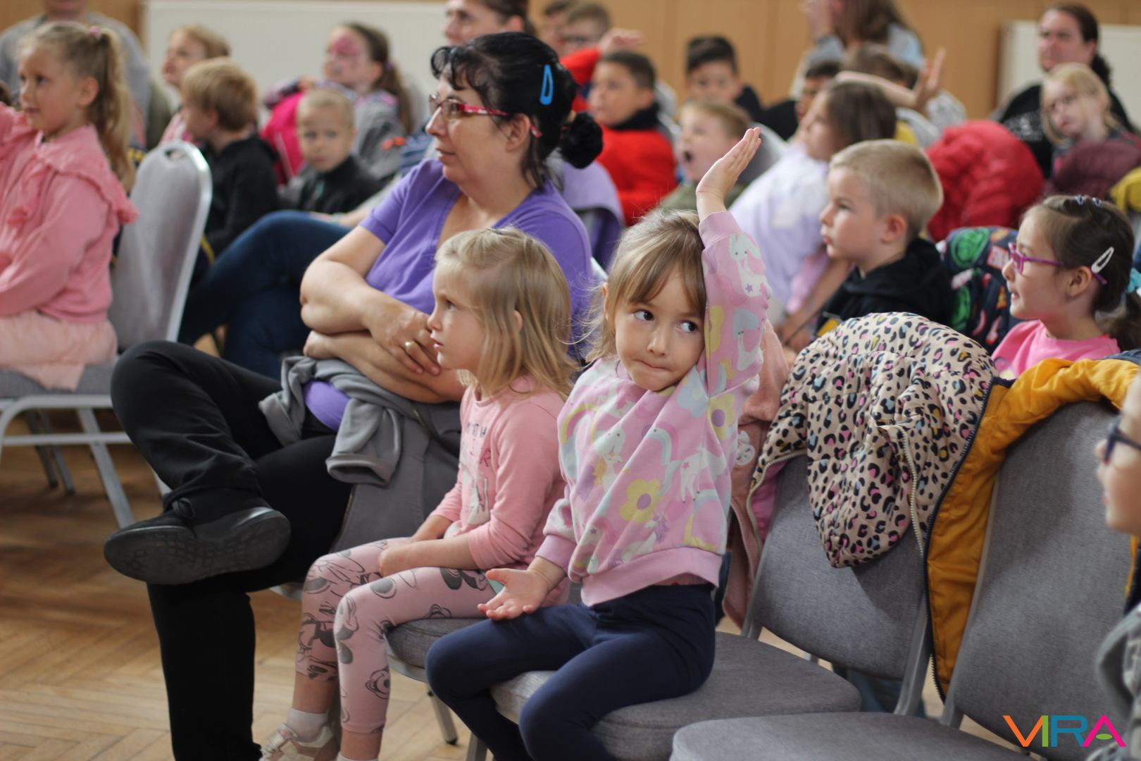 Az interaktív mesejátékot Mesés Gábor és Sóti-Mihalics Klaudia adta elő játékosan, mozgással kísért feladatokon keresztül bevonva a gyermekeket a történetbe. Az előadás során kiemelt hangsúlyt kapott a türelem, a figyelem és a nyelvi készségek fejlesztése – mindezt a gyerekek számára élvezetes, mesebeli keretben.
