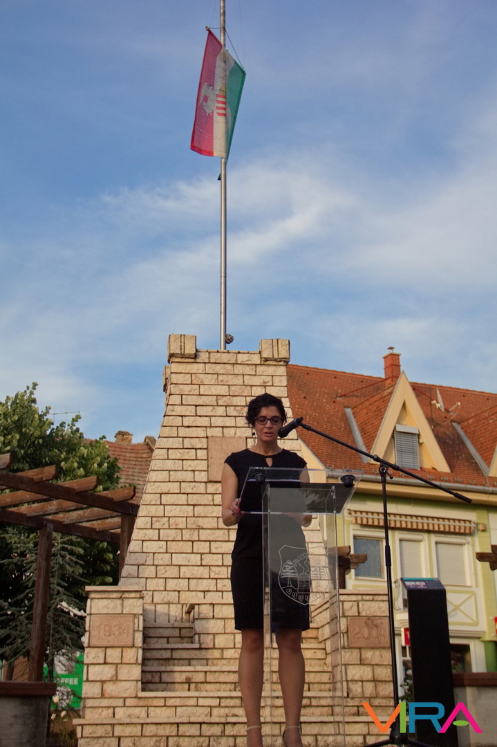 A megemlékező beszédet ezúttal Pivarcsiné Raffai Enikő, a KEVI Petőfi Sándor Gimnázium tanára mondta el: