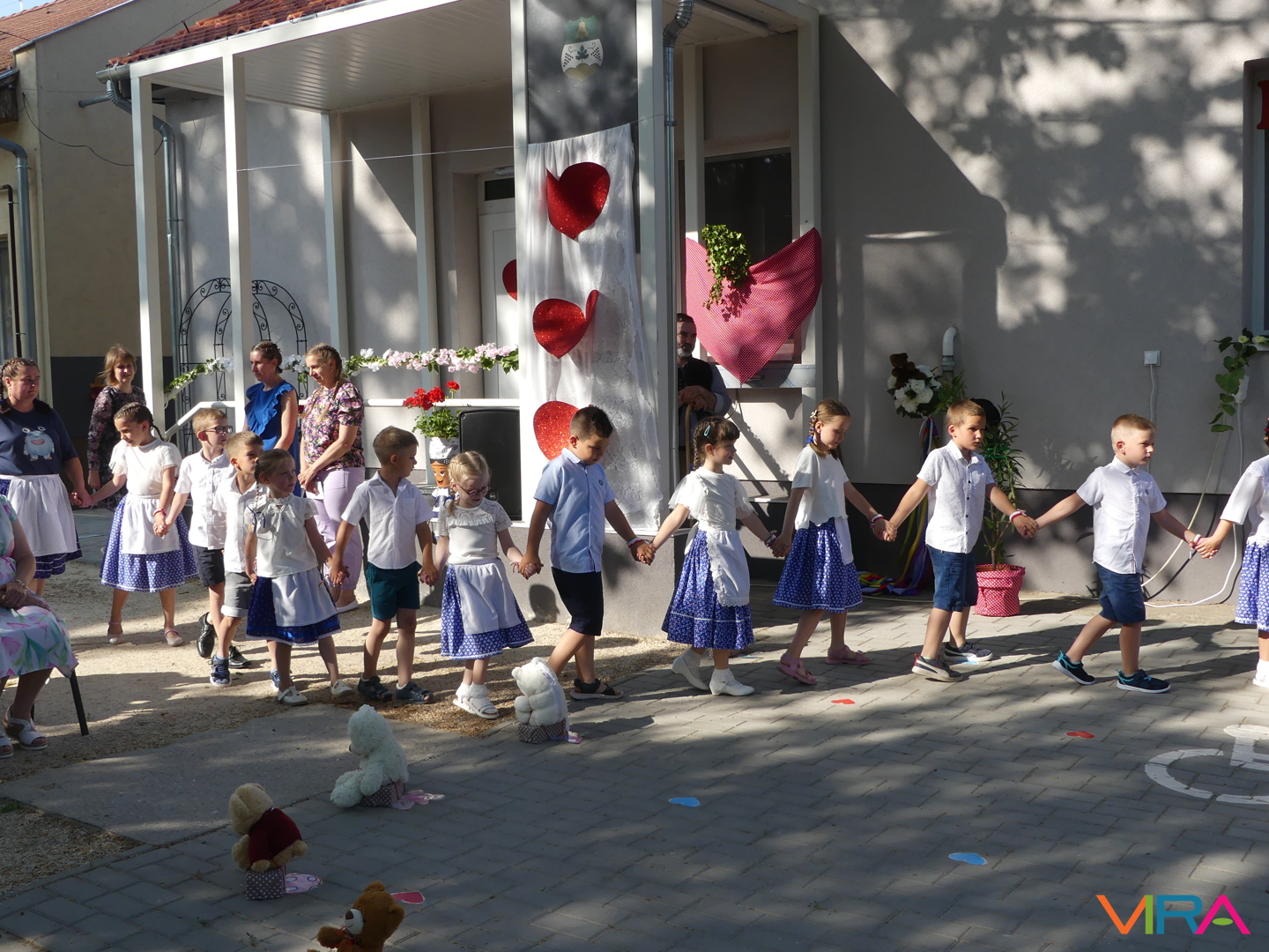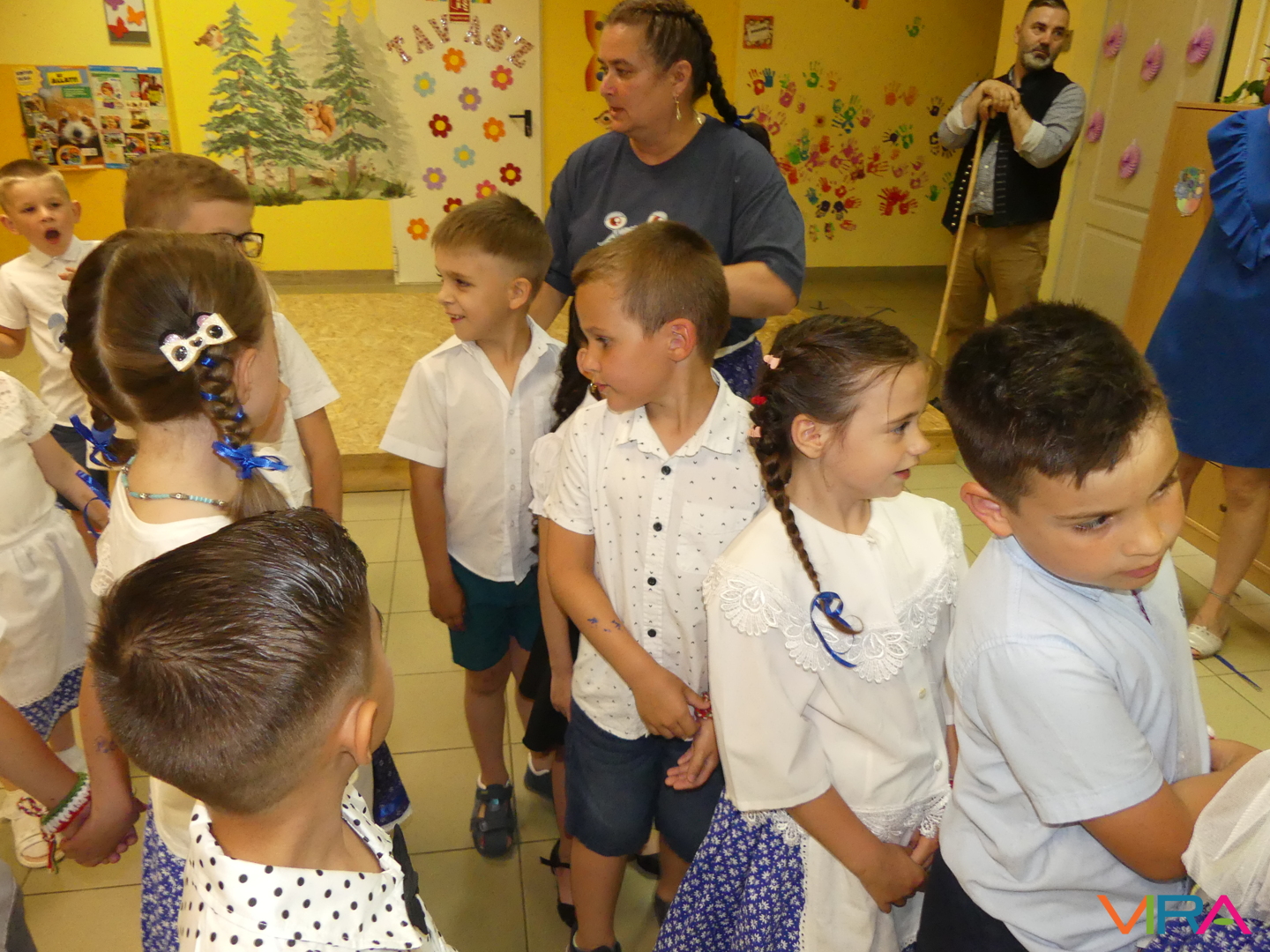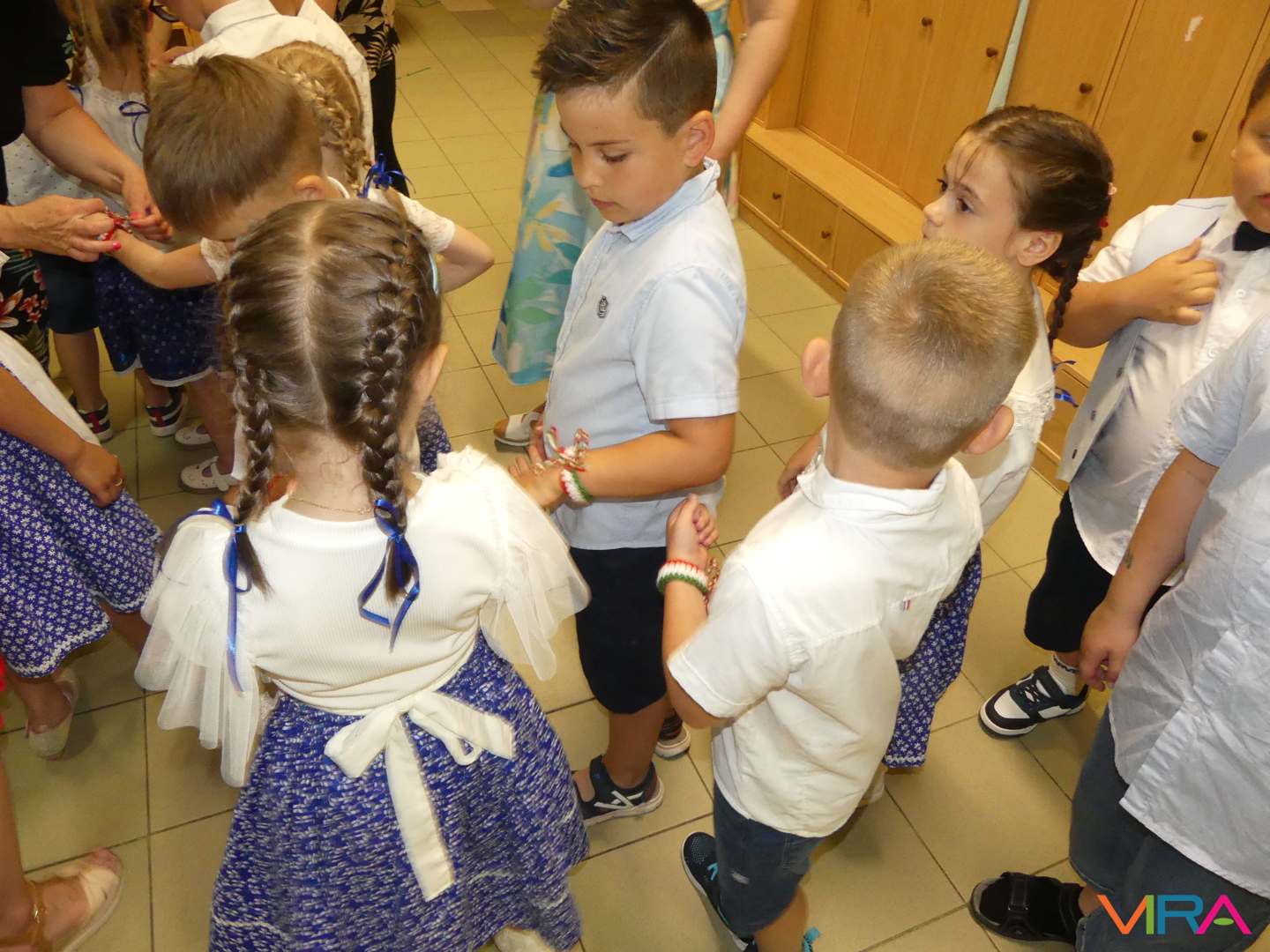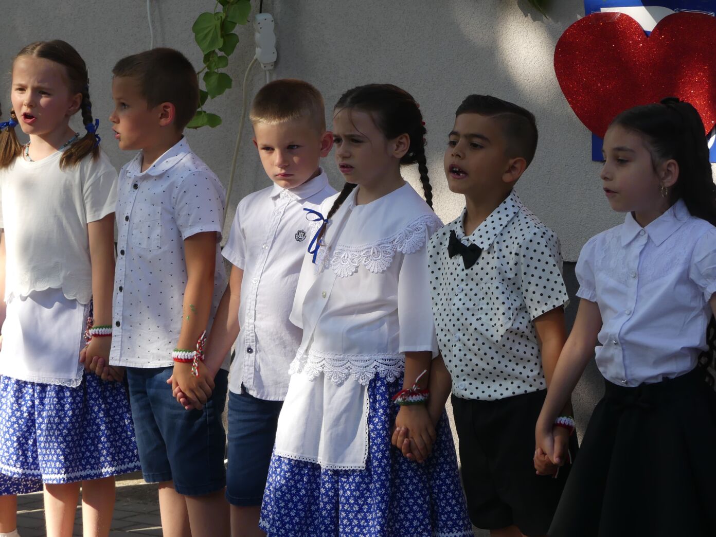 A ballagók egyebek mellett búcsúzóul egy-egy horgolt, nemzetiszínű karkötőt is kaptak emlékül nevelőiktől, és az ünnep zárásaként – örömmel falatozva a remek tortából – a gyorsan tovaröppent ovis évek vetítővásznon megelevenedő emlékképeiben gyönyörködtek.