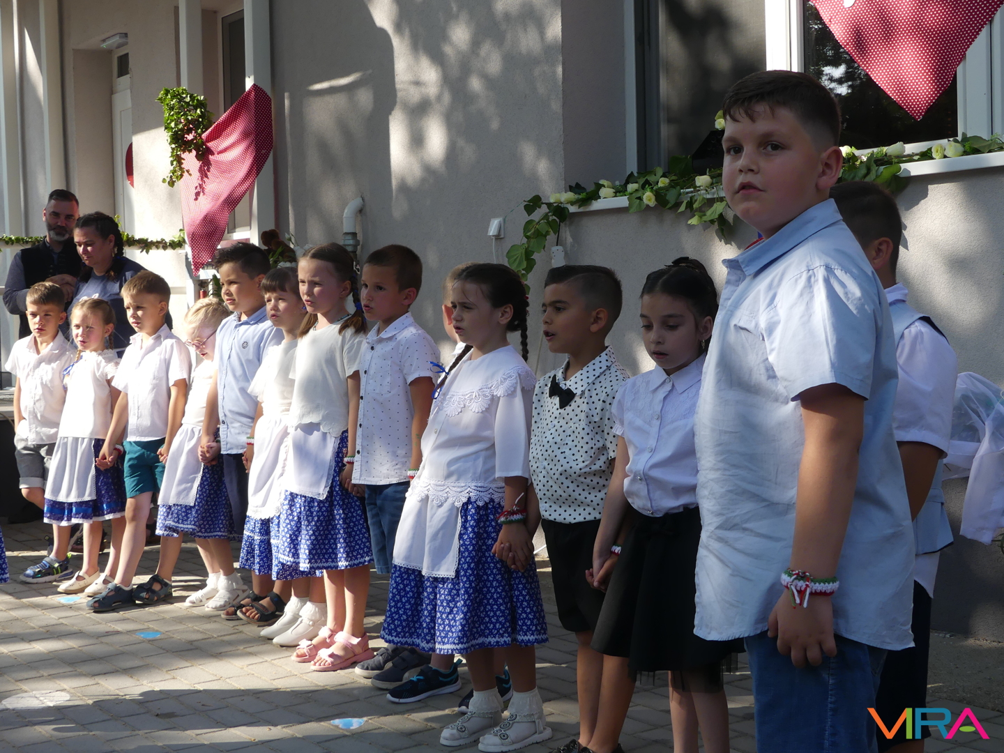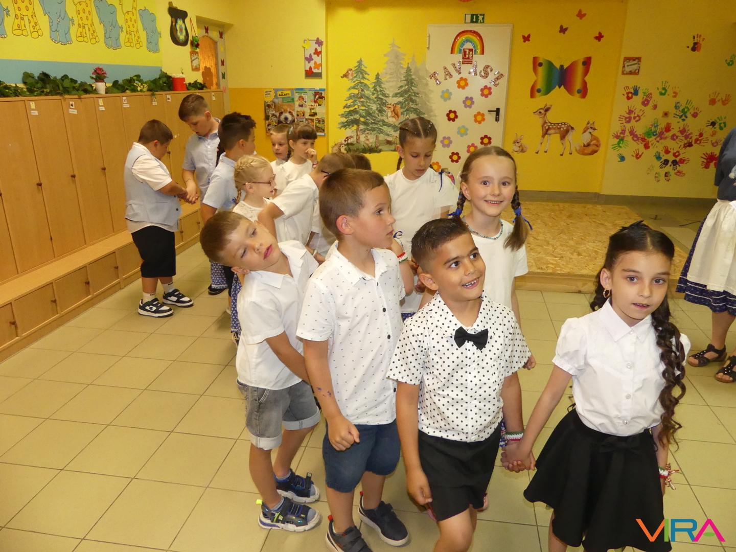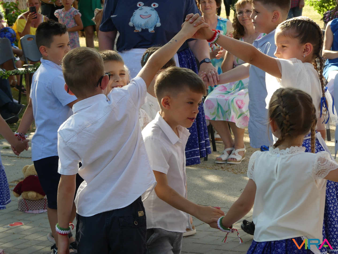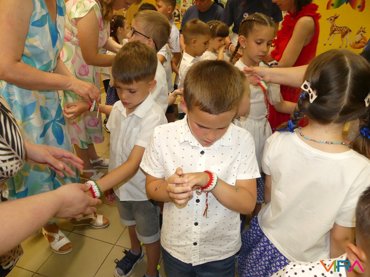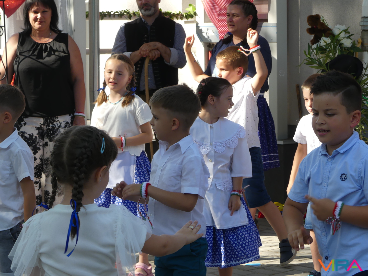 A ballagók egyebek mellett búcsúzóul egy-egy horgolt, nemzetiszínű karkötőt is kaptak emlékül nevelőiktől, és az ünnep zárásaként – örömmel falatozva a remek tortából – a gyorsan tovaröppent ovis évek vetítővásznon megelevenedő emlékképeiben gyönyörködtek.