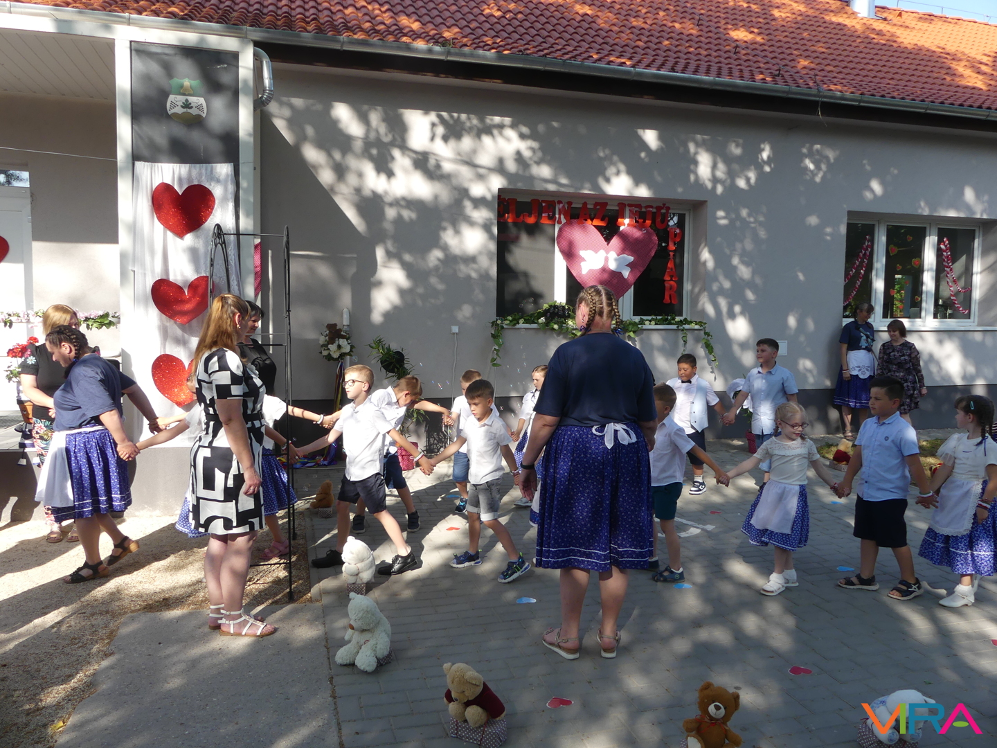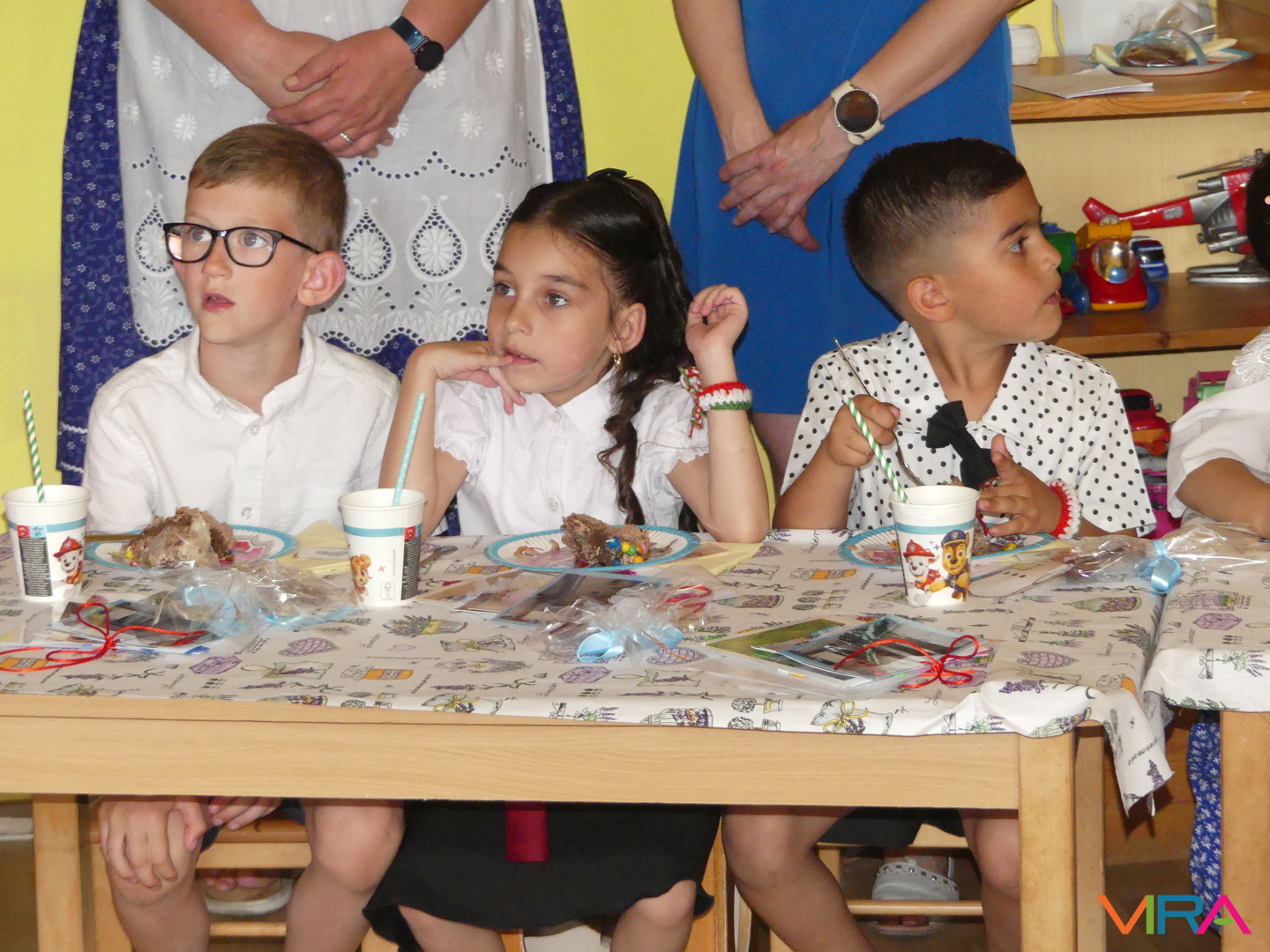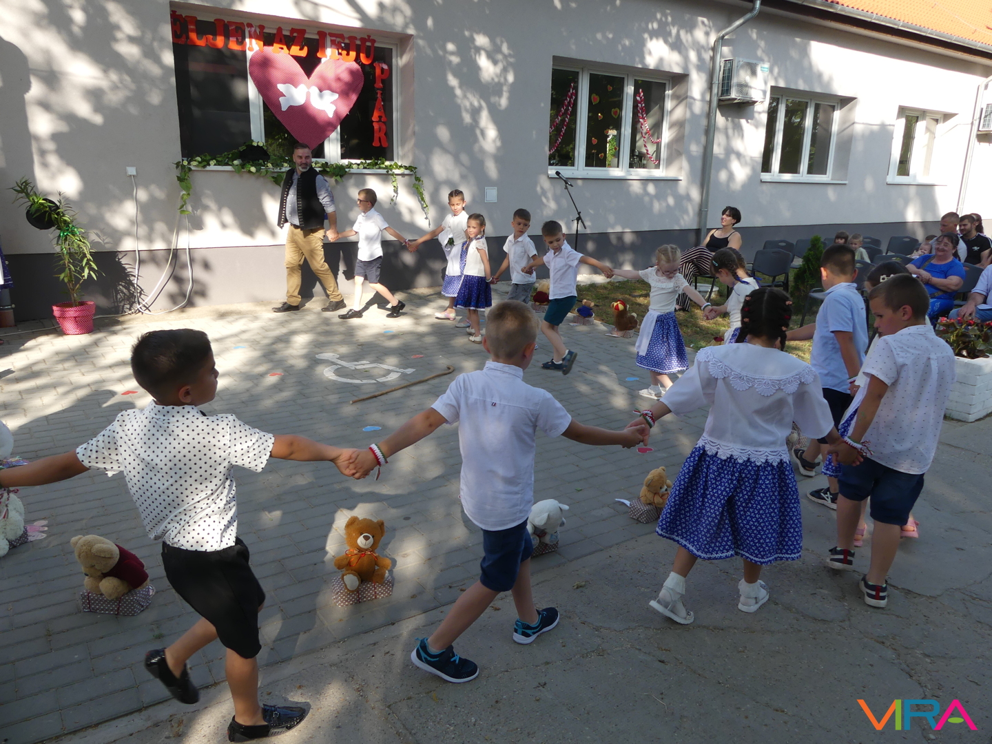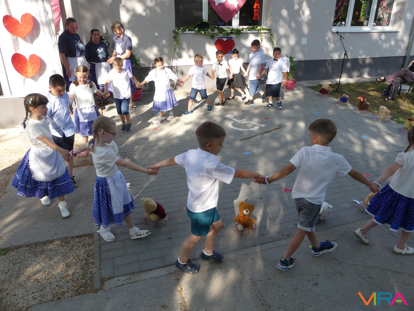 A ballagók egyebek mellett búcsúzóul egy-egy horgolt, nemzetiszínű karkötőt is kaptak emlékül nevelőiktől, és az ünnep zárásaként – örömmel falatozva a remek tortából – a gyorsan tovaröppent ovis évek vetítővásznon megelevenedő emlékképeiben gyönyörködtek.