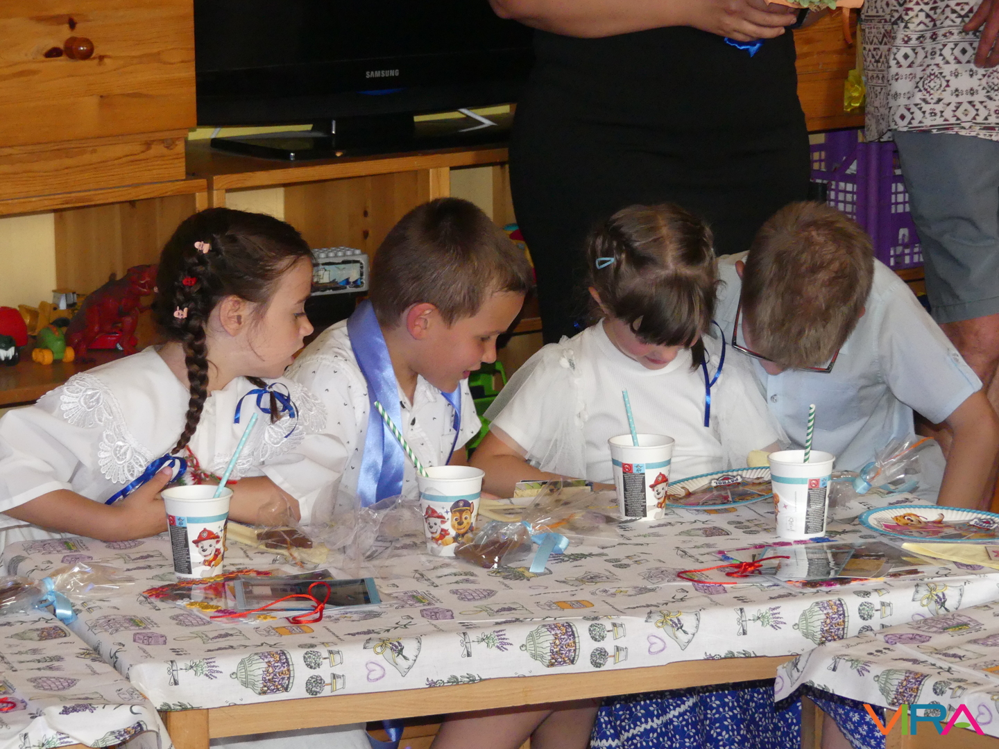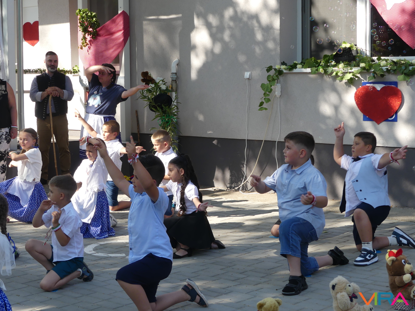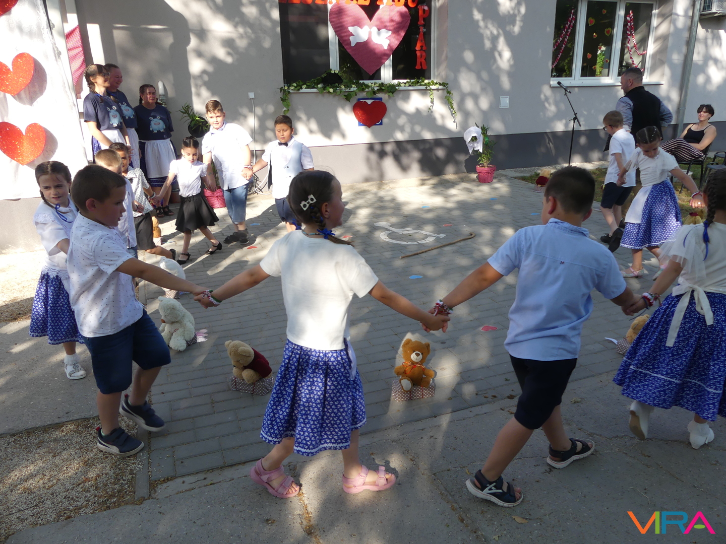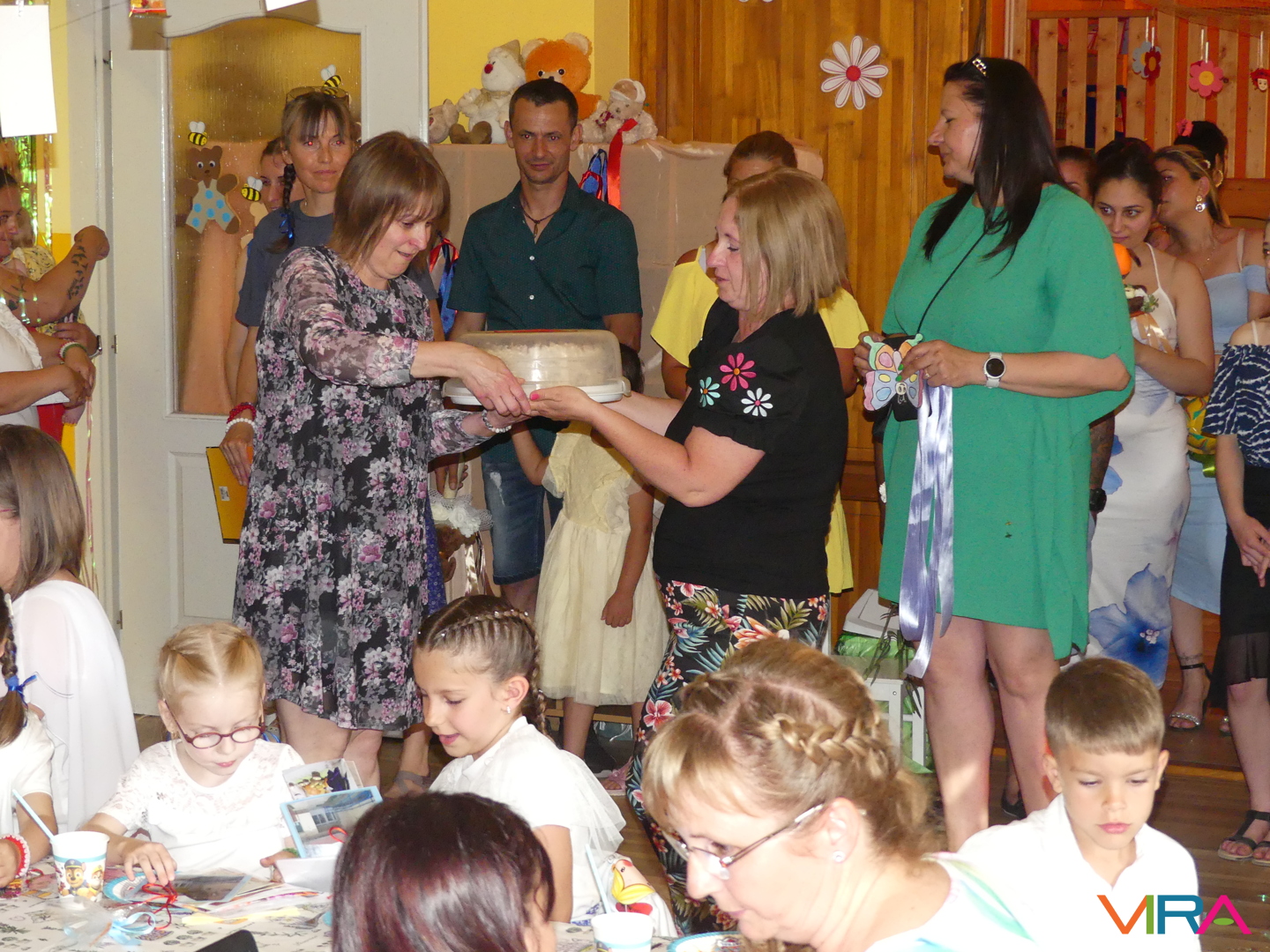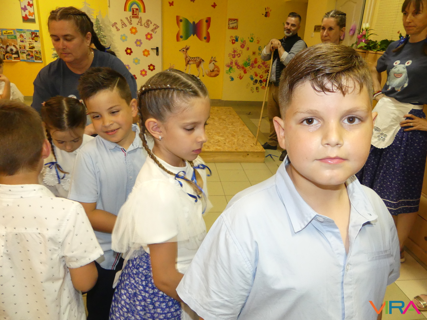 A ballagók egyebek mellett búcsúzóul egy-egy horgolt, nemzetiszínű karkötőt is kaptak emlékül nevelőiktől, és az ünnep zárásaként – örömmel falatozva a remek tortából – a gyorsan tovaröppent ovis évek vetítővásznon megelevenedő emlékképeiben gyönyörködtek.