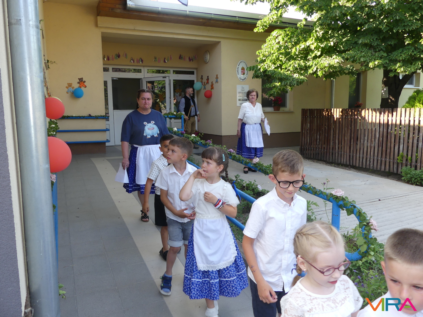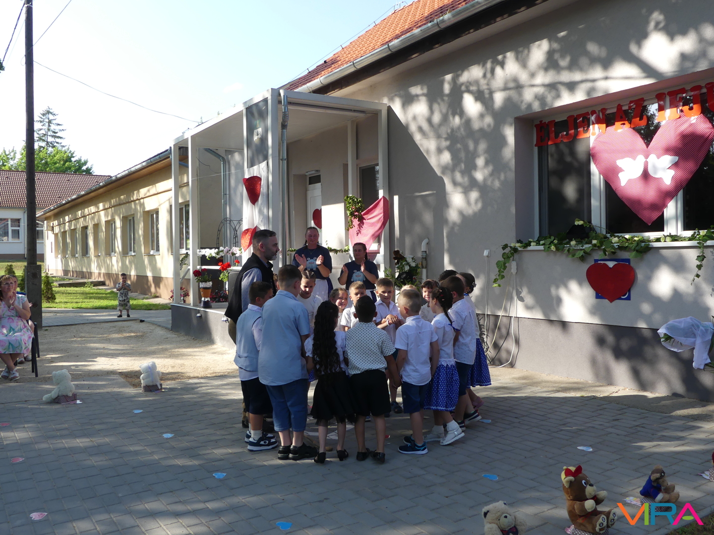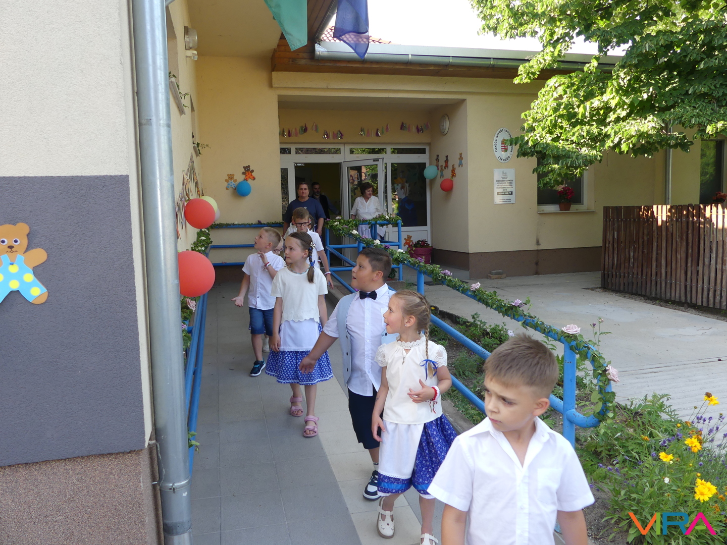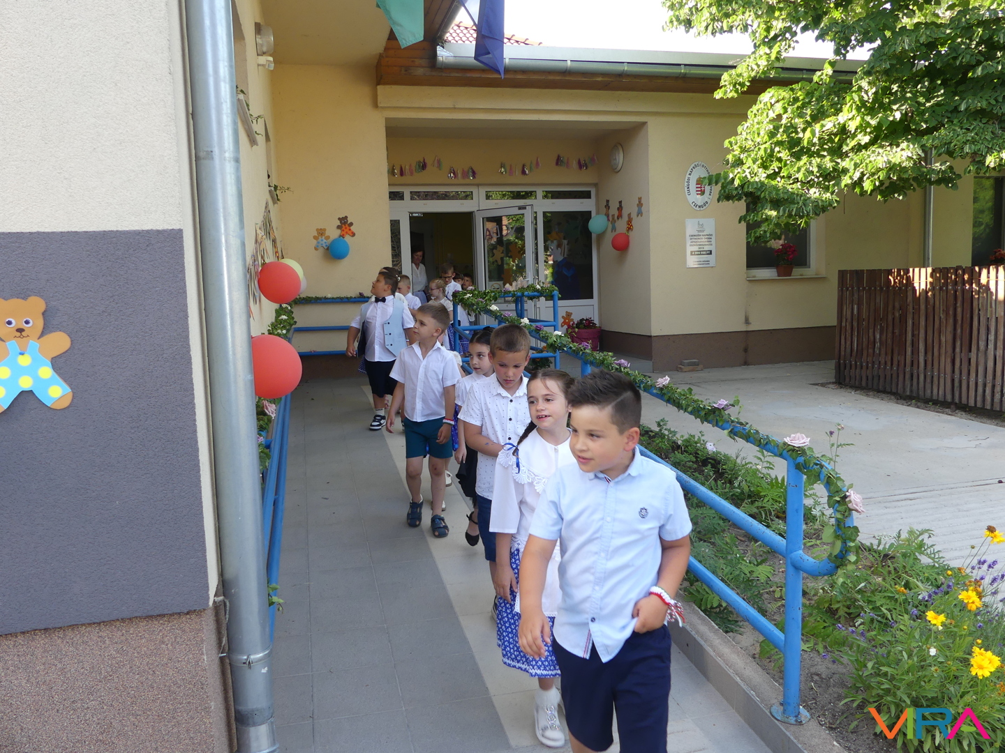 Ünneplőbe öltözött az óvoda is a Gumimaci csoport búcsúzójára a június 6-i forró péntek délutánon. A Csengőcskék Óvoda és Bölcsőde elköszönő nagycsoportosai mosolyt és könnyeket egyaránt varázsoltak szeretteik arcára ballagásukon.