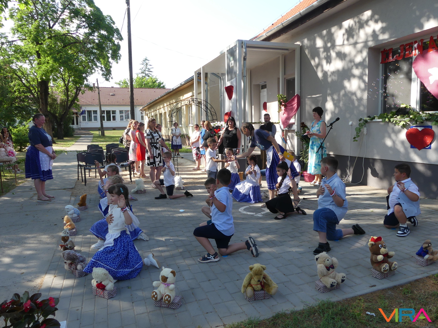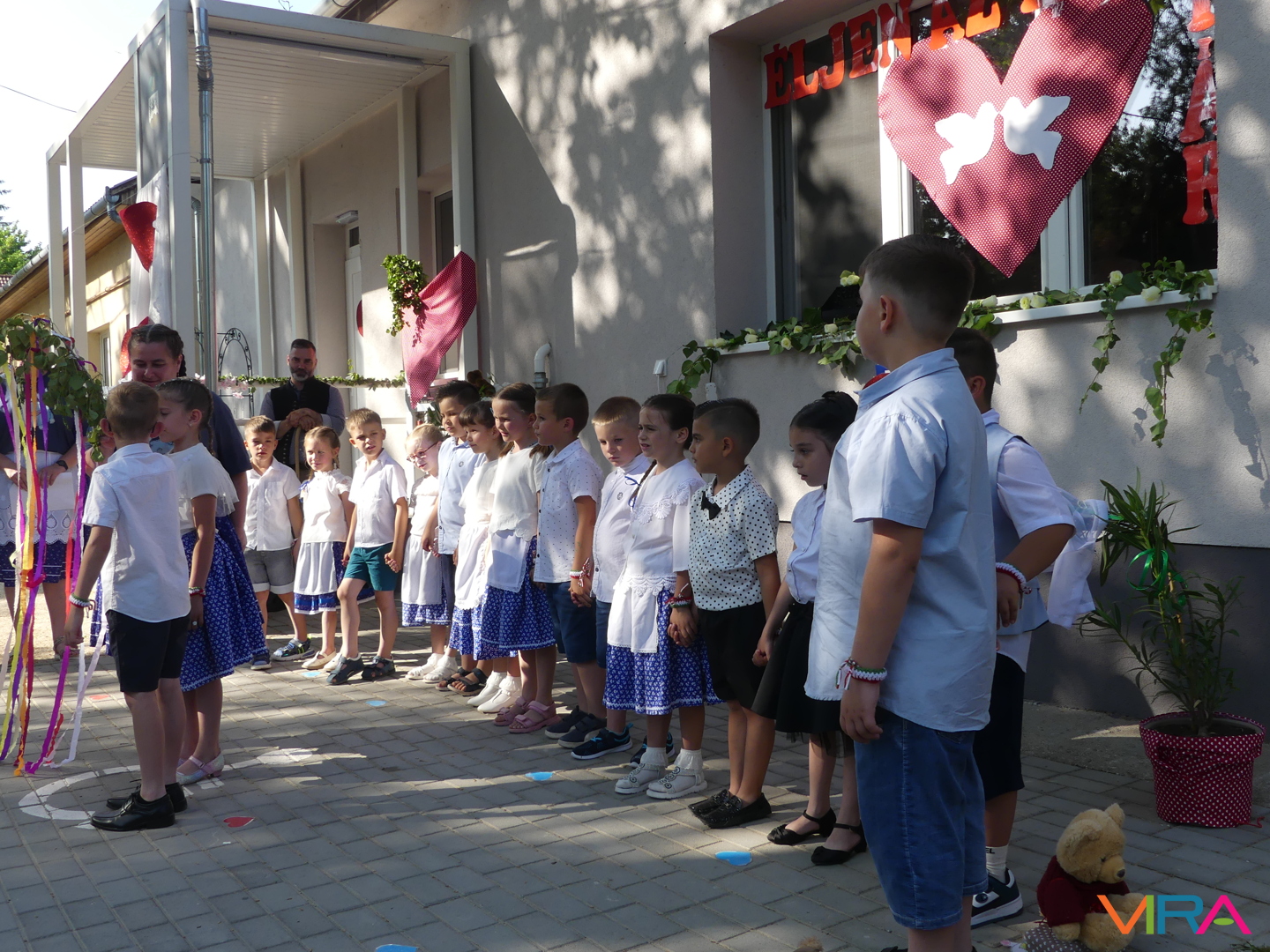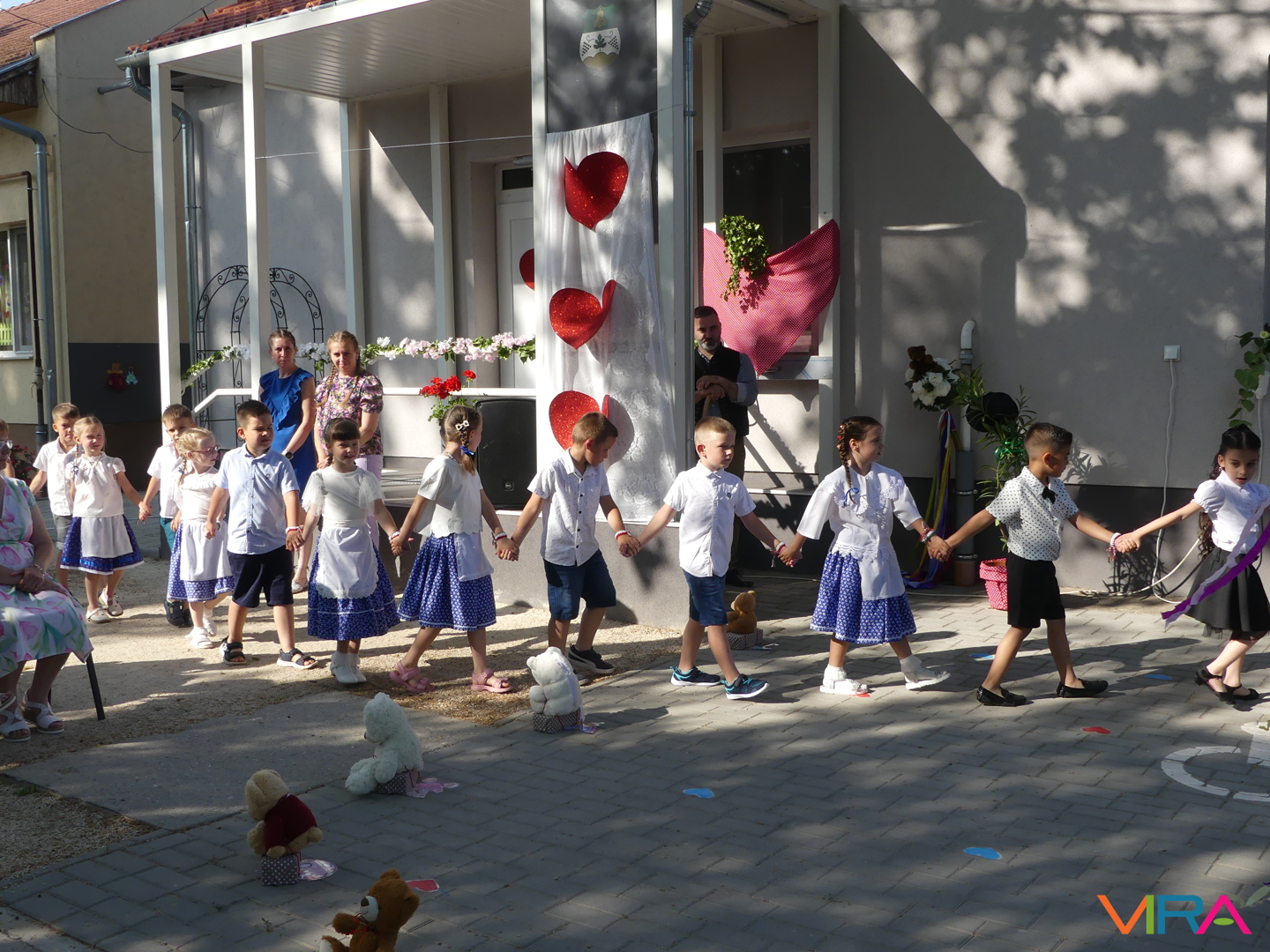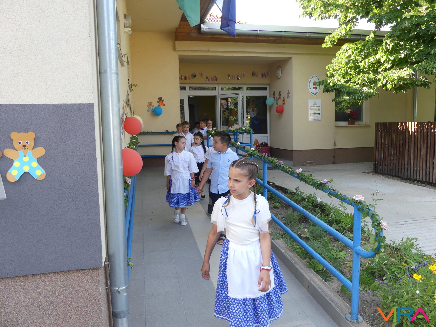 Ünneplőbe öltözött az óvoda is a Gumimaci csoport búcsúzójára a június 6-i forró péntek délutánon. A Csengőcskék Óvoda és Bölcsőde elköszönő nagycsoportosai mosolyt és könnyeket egyaránt varázsoltak szeretteik arcára ballagásukon.