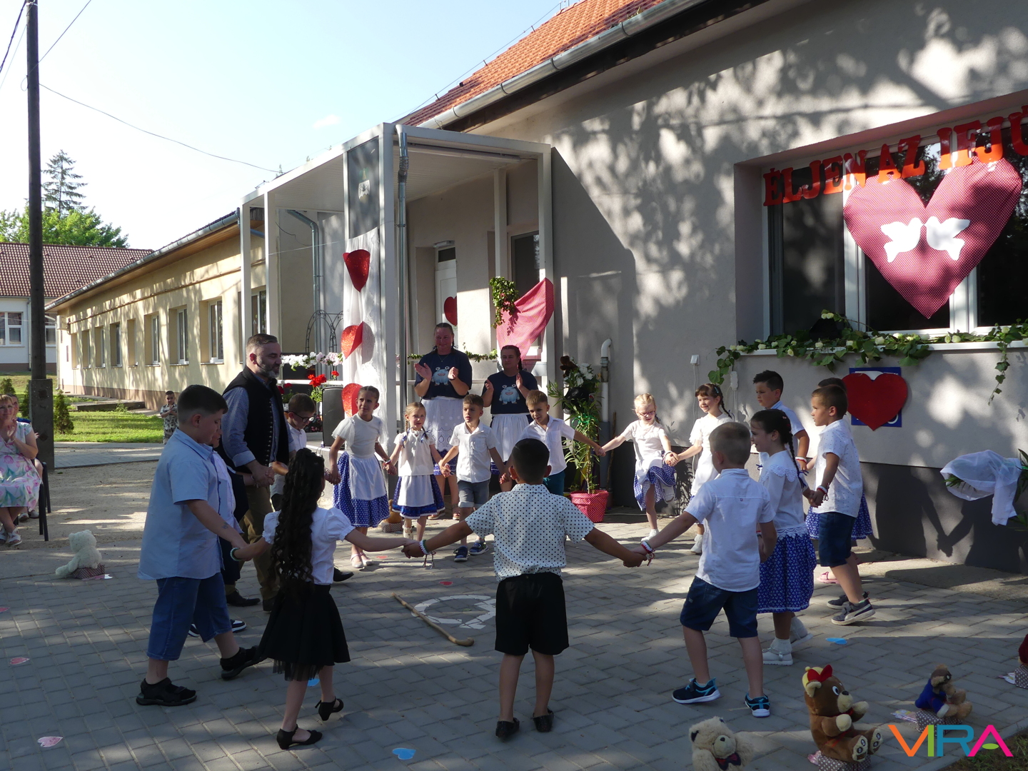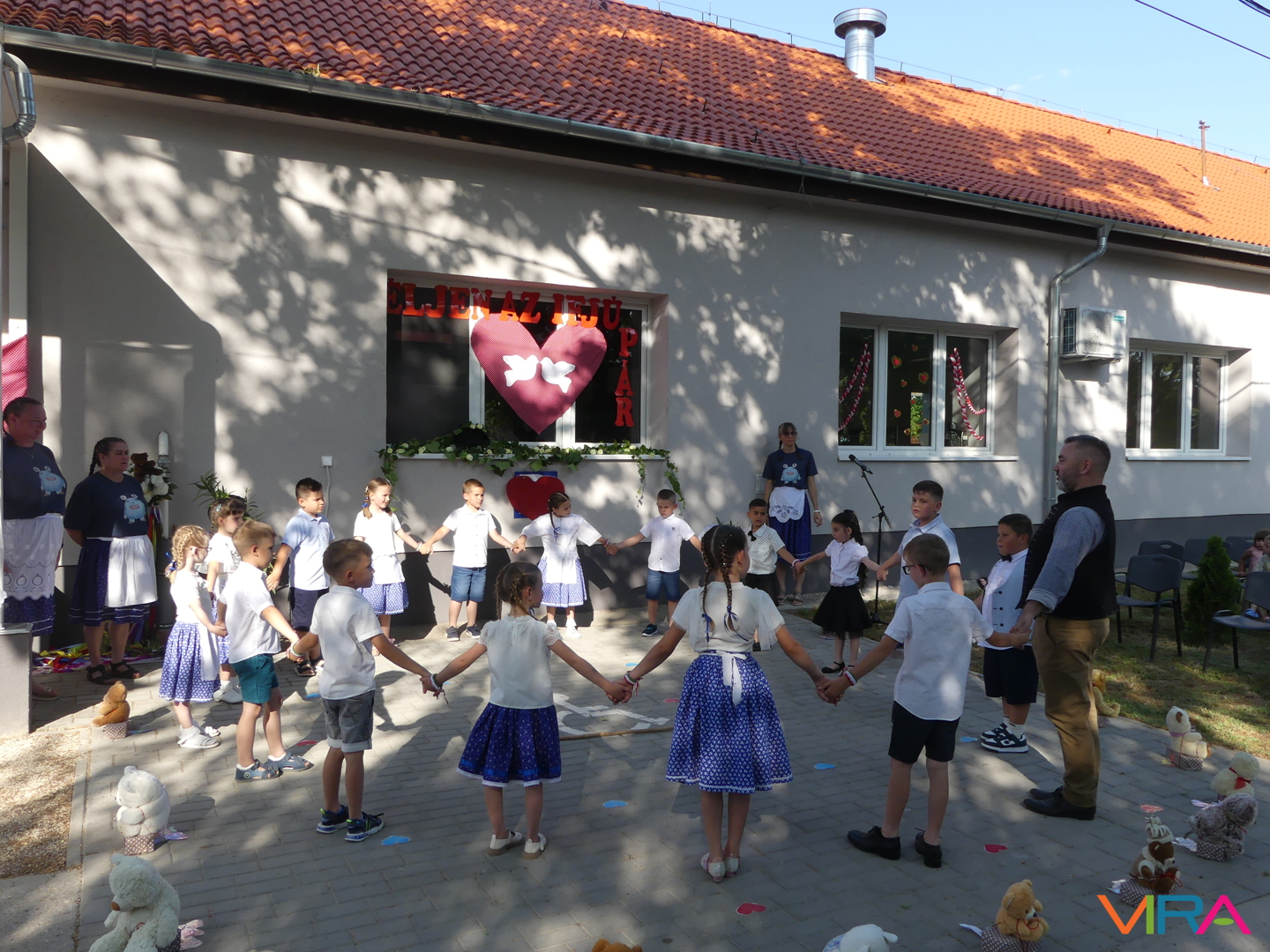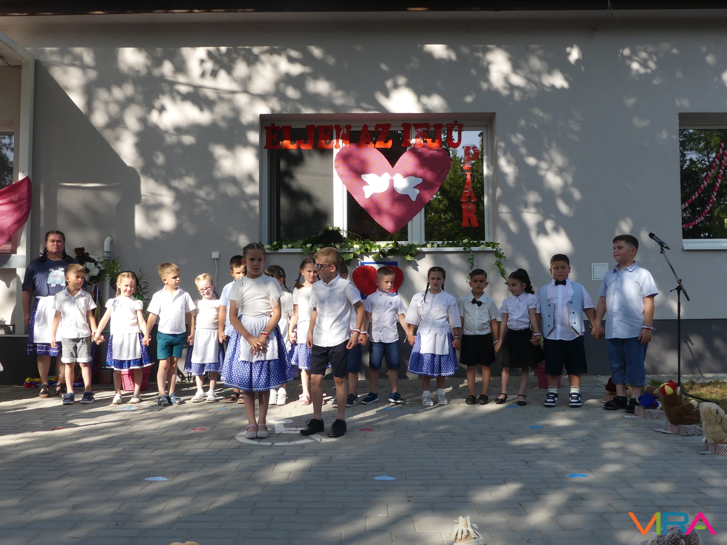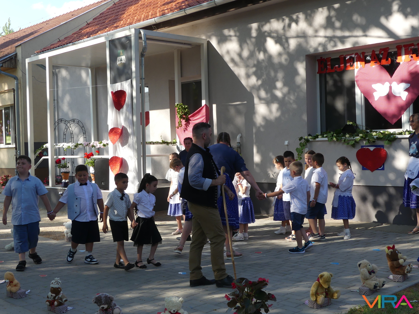 Ünneplőbe öltözött az óvoda is a Gumimaci csoport búcsúzójára a június 6-i forró péntek délutánon. A Csengőcskék Óvoda és Bölcsőde elköszönő nagycsoportosai mosolyt és könnyeket egyaránt varázsoltak szeretteik arcára ballagásukon.