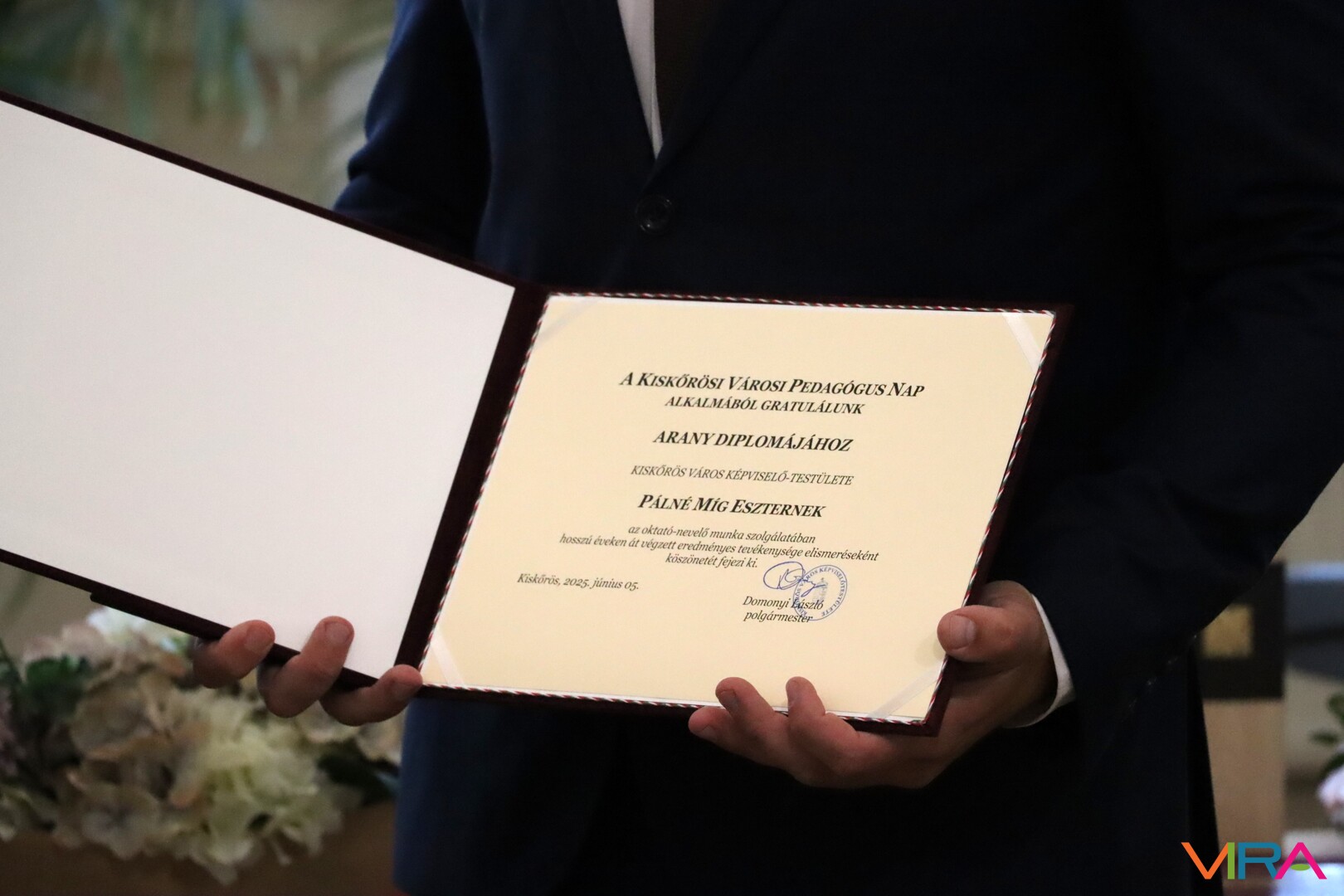 Pálné Míg Eszter óvodapedagógus „Kiskőrösért Emléklapot” és Aranydiplomát vehetett át.