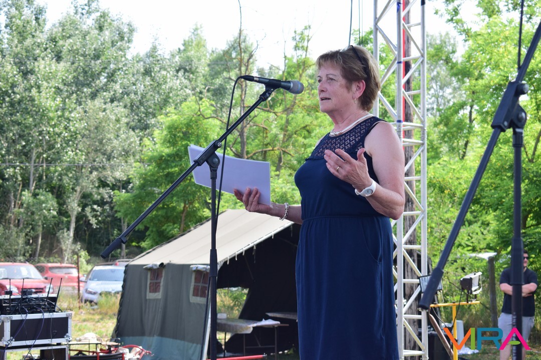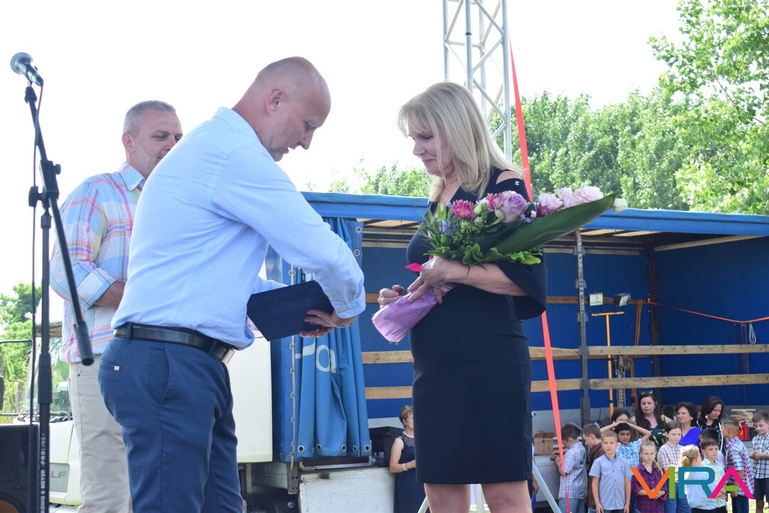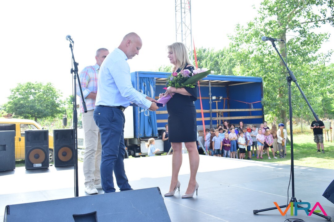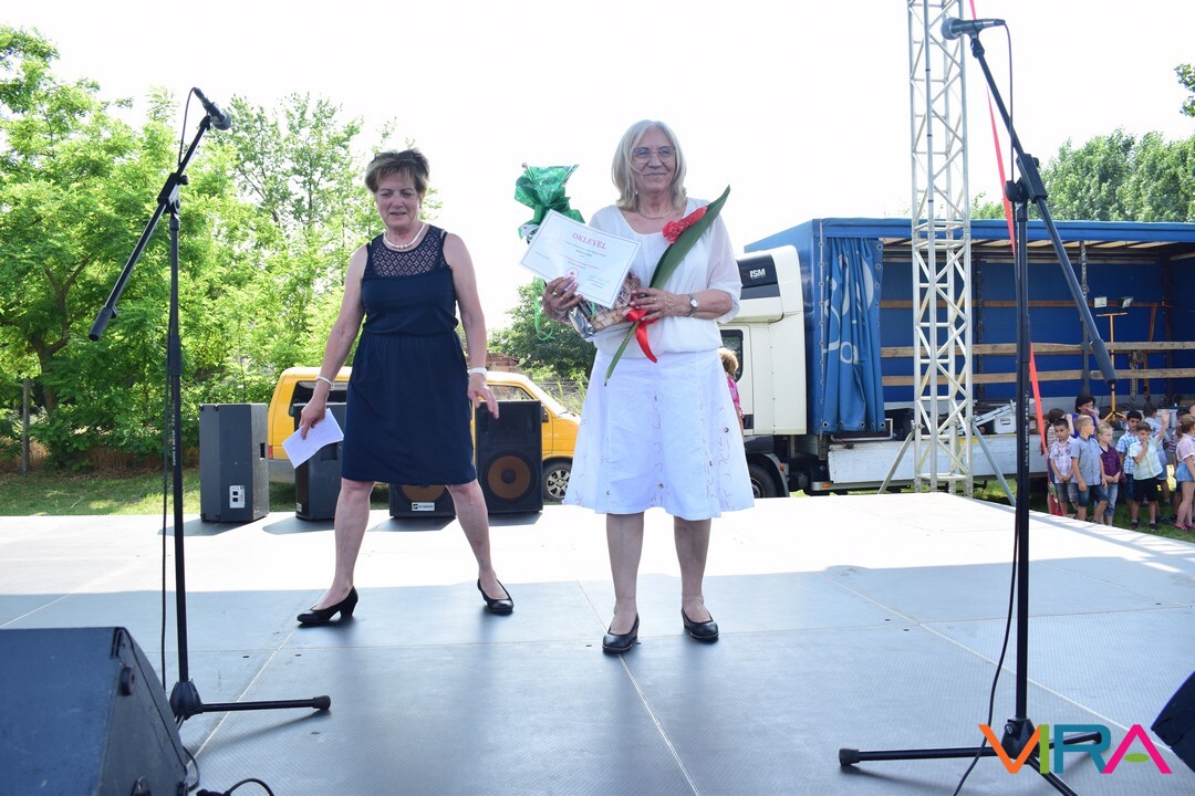 Ezután Tabdi Településért Emlékérem átadására került sor, melyet idén Szkenderovics Lajosné Irma vehetett át a képviselő testület döntése alapján. Neve összefonódott Tabdi közösségi életével, oktatásával és közéletének alakításával. Pályafutása során olyan elhivatottsággal és kitartással dolgozott a faluért és az itt élőkért, amely példaértékű a település lakosainak számára. Irma tanárnő, ahogyan a polgármester is szólította, 1998. szeptember 1-jén kezdte meg pedagógusi munkáját a Tabdi Általános Iskolában. Több generáció nőtt fel a kezei alatt. Tanítványai nem csak tudást, hanem emberséget, következetességet és értékeket is kaptak tőle. Oktatói munkáját mindig lelkiismeretesen, a gyermekek fejlődését szem előtt tartva végezte. Fontos volt számára, hogy a tanulók ne csak tankönyvi ismeretekkel, hanem a közösségi értékekkel, erkölcsi tartással, és önbizalommal felvértezve lépjenek tovább az élet útján. 1998-ban kezdte meg munkáját Tabdi Község Önkormányzatának képviselőjeként és egészen 2024-ig, 26 éven át aktívan részt vett a falu ügyeinek irányításában. Képviselői tevékenysége során mindig a helyi közösséget és értékeket tartotta szem előtt. Különös figyelmet fordítva az oktatásra, gyermekekre, családokra és az idősekre. A testületi munkában szorgalmas, alapos, konstruktív jelenléte hozzájárult, hogy Tabdi fejlődő és összetartó településsé váljon.