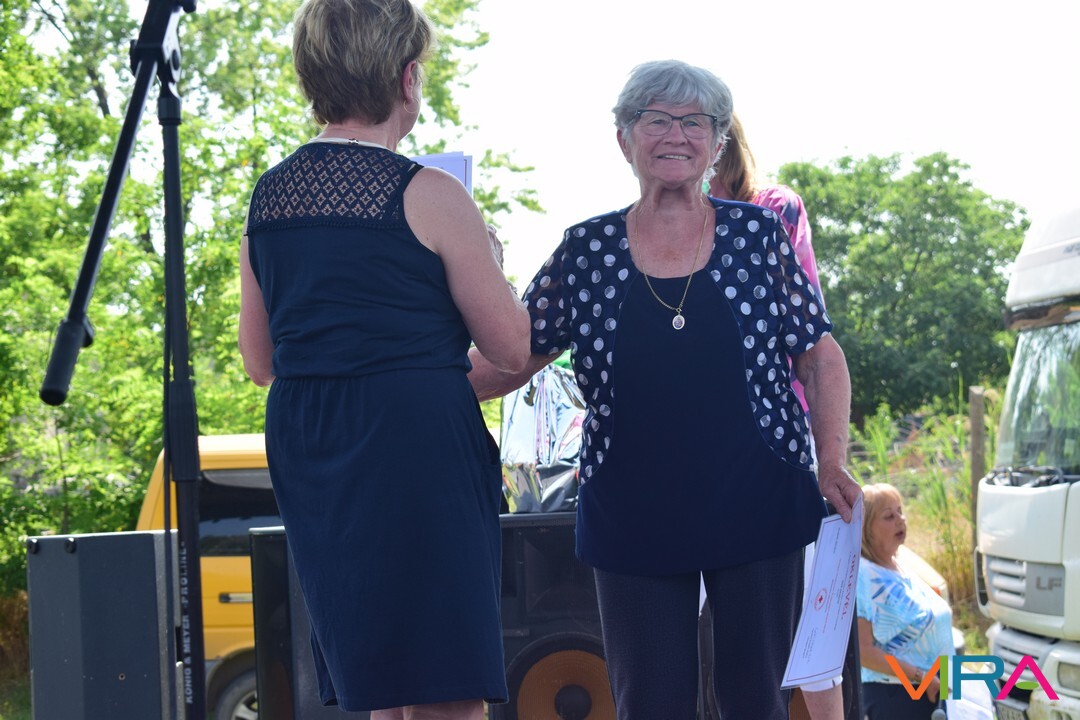 A polgármesteri köszöntő után Sutus Etelka, a Vöröskereszt területi képviselője adott át oklevelet és egy ajándékcsomagot három helyi önkéntesnek, akik minden évben megszervezik a véradást és a véradó bált. Név szerint: Tóth Sándorné, Léder Jánosné, Andriska Lászlóné.