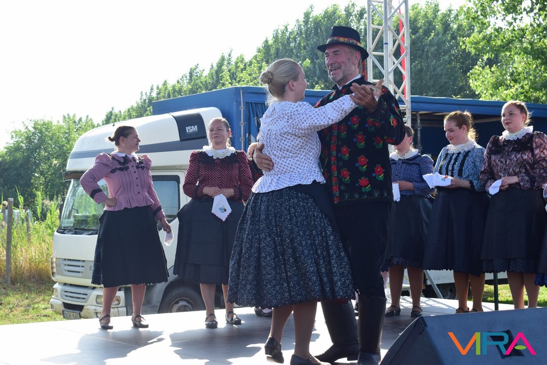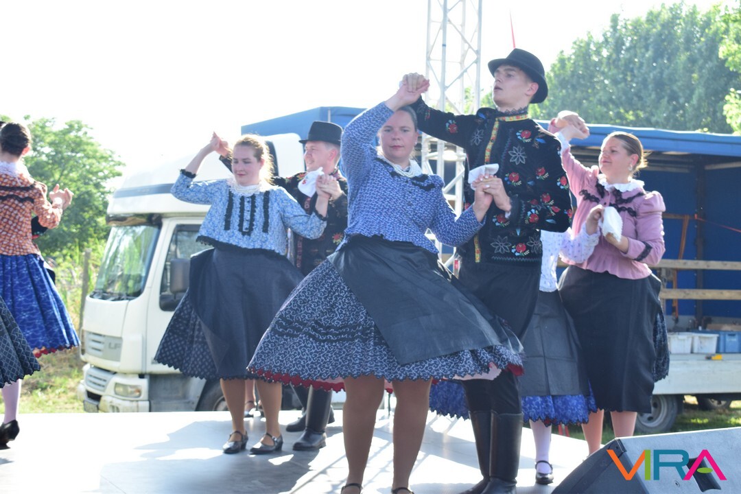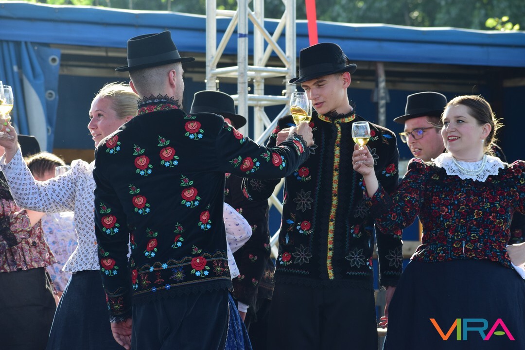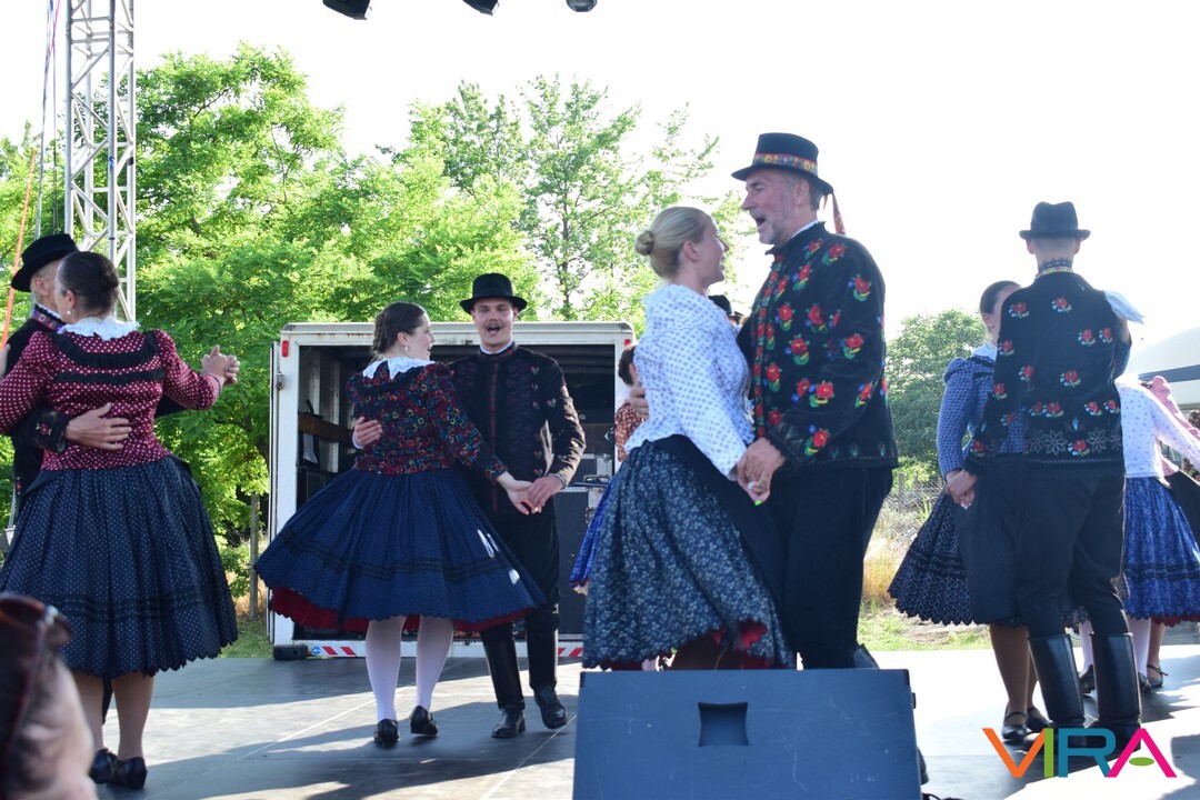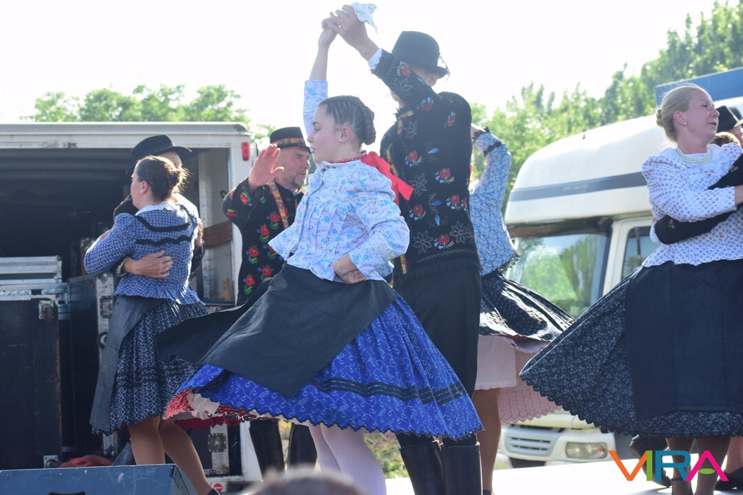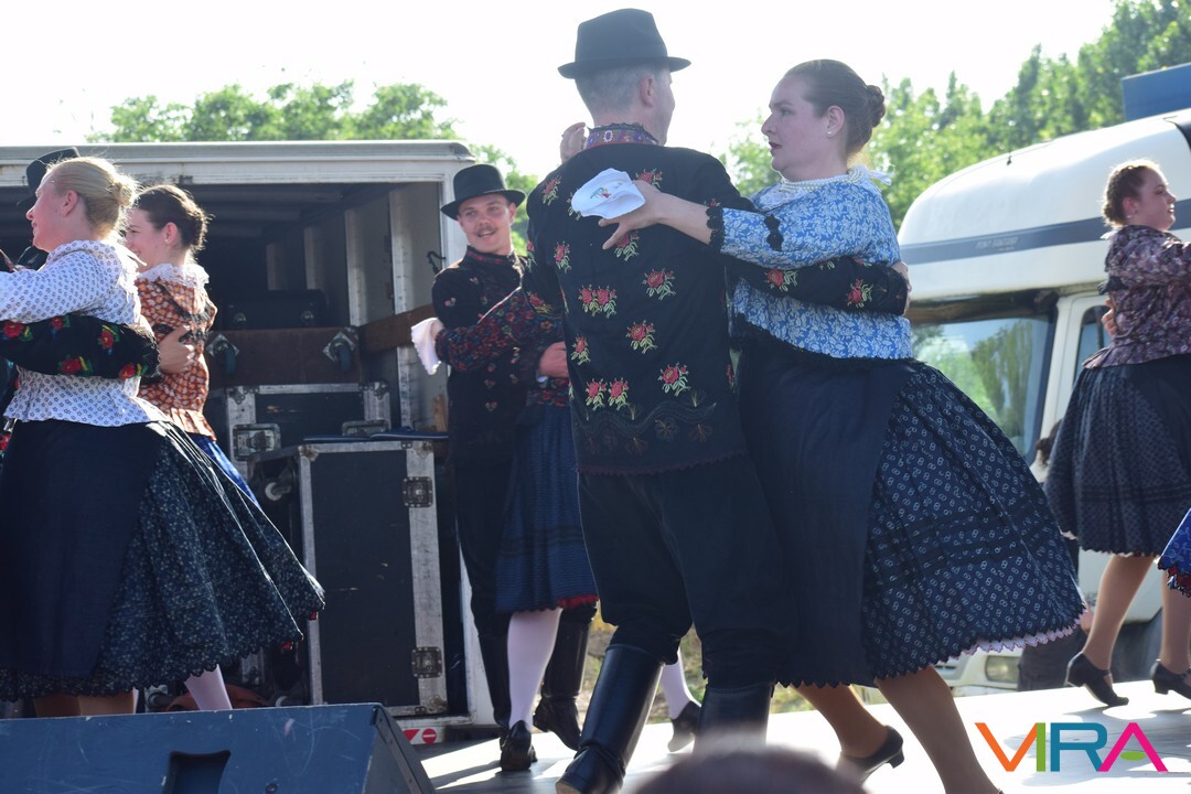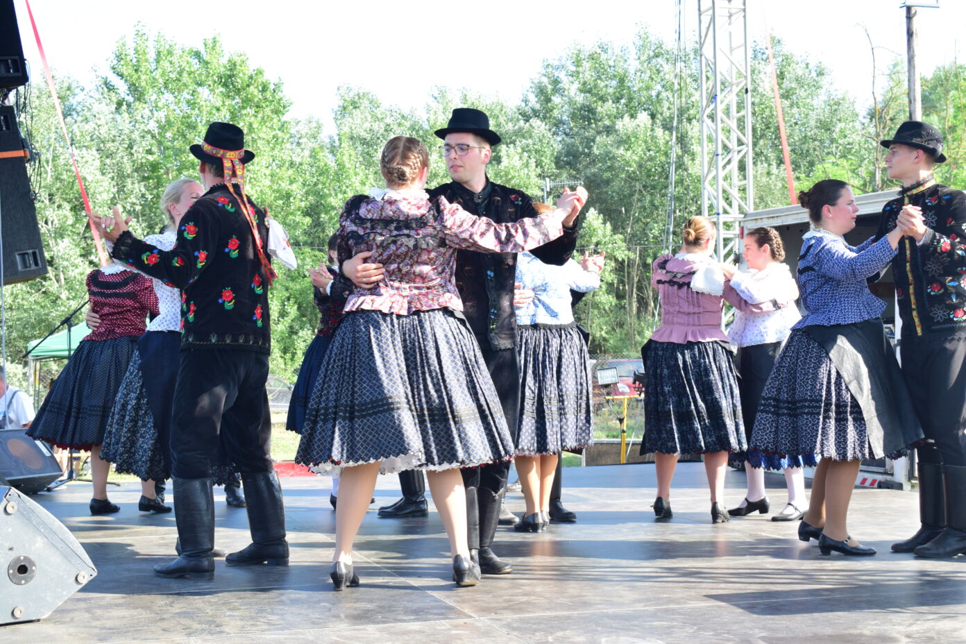 Őket követte a Szivárvány Szlovák Néptáncegyüttes Kiskőrösről különböző műsorokkal, melyben előkerült a bor is.