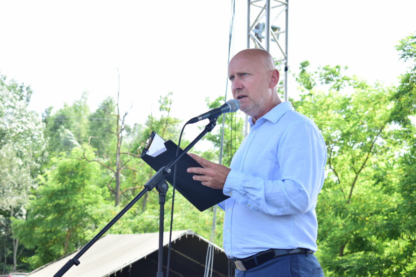 Ezt követően Tabdi település polgármestere Fábián Sándor mondta el köszöntő gondolatait, melyben kiemelte, hogy hosszú évek óta ilyenkor mindig összefog Tabdi lakossága, hogy egy programokkal teli, szép napot töltsenek el együtt. Mindenkinek megköszönte a segítséget, akik valamilyen formában is hozzájárultak az idei Falualapítók Napjának sikeres megrendezéséhez. Külön kiemelte a 75 éves évfordulót.