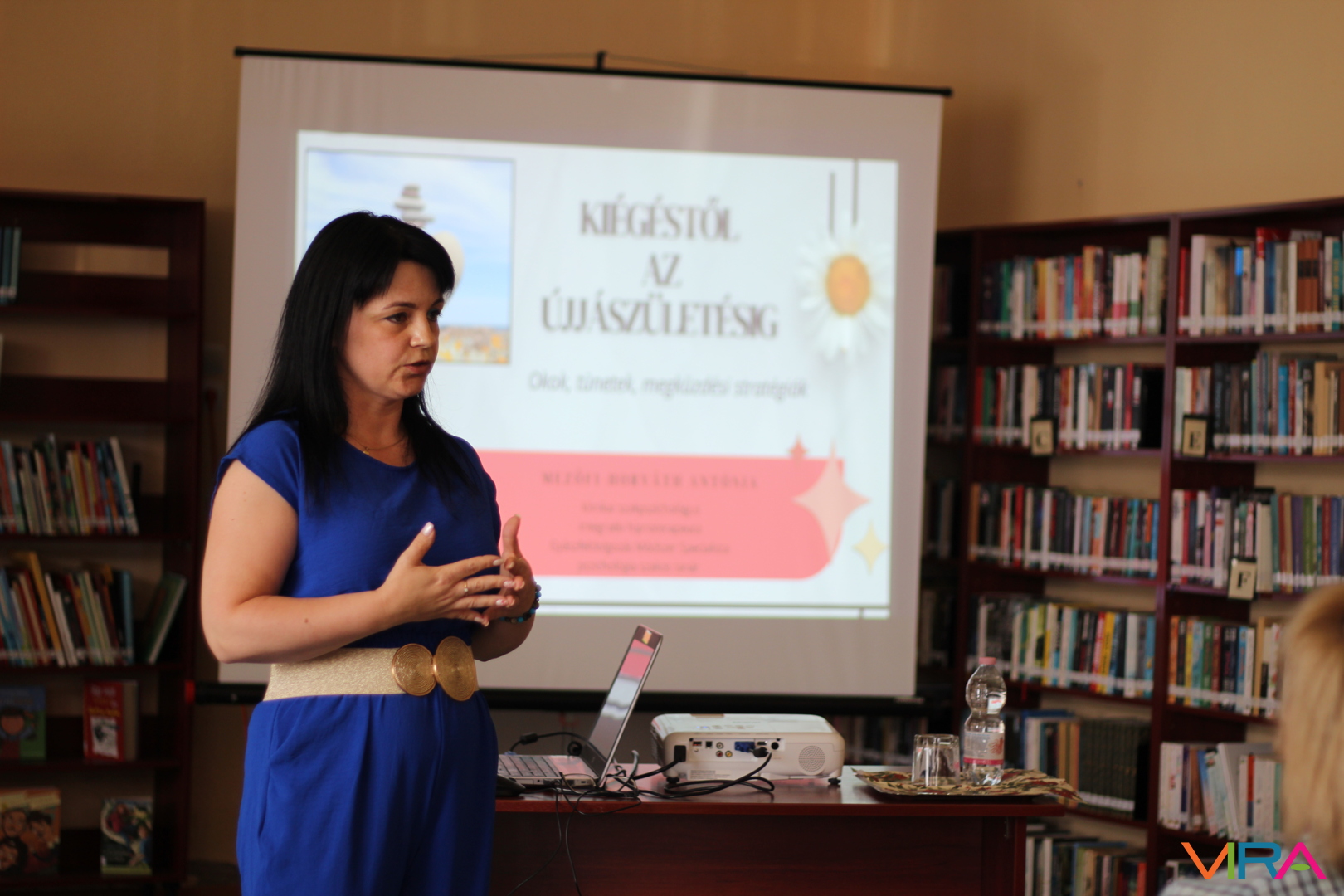 Június 10-én, kedden délután telt házas előadásnak adott otthont a csengődi könyvtár. Mezőfi-Horváth Antónia klinikai szakpszichológus tartott rendkívül tartalmas és inspiráló előadást „Kiégéstől az újjászületésig” címmel, amelyben a kiégés okairól, tüneteiről és a lehetséges megküzdési stratégiákról beszélt.