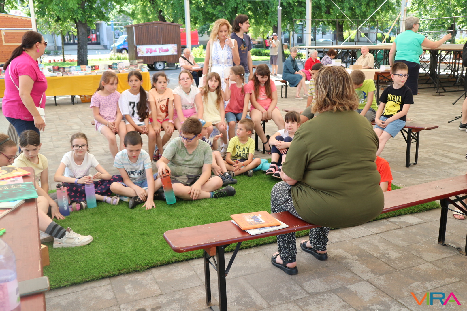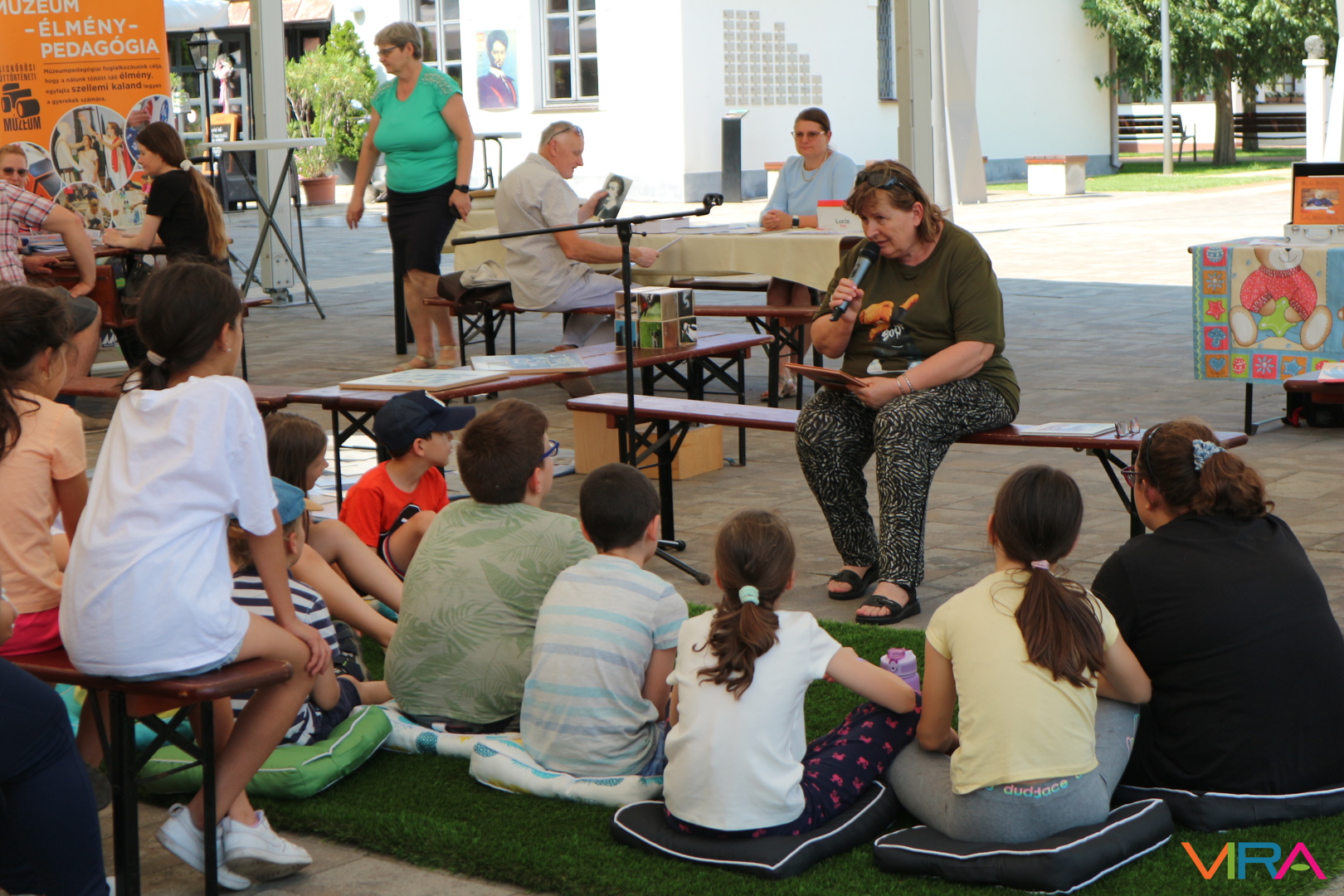 Az eseményen először Csorvási Katáé lett a főszerep, aki egy csapat kicsinek adott elő meséket a saját kötetéből. Játékos és humoros előadásmódja nemcsak a gyerekeket nyűgözte le, hanem sok felnőttet is.