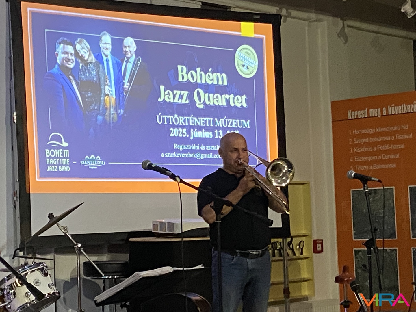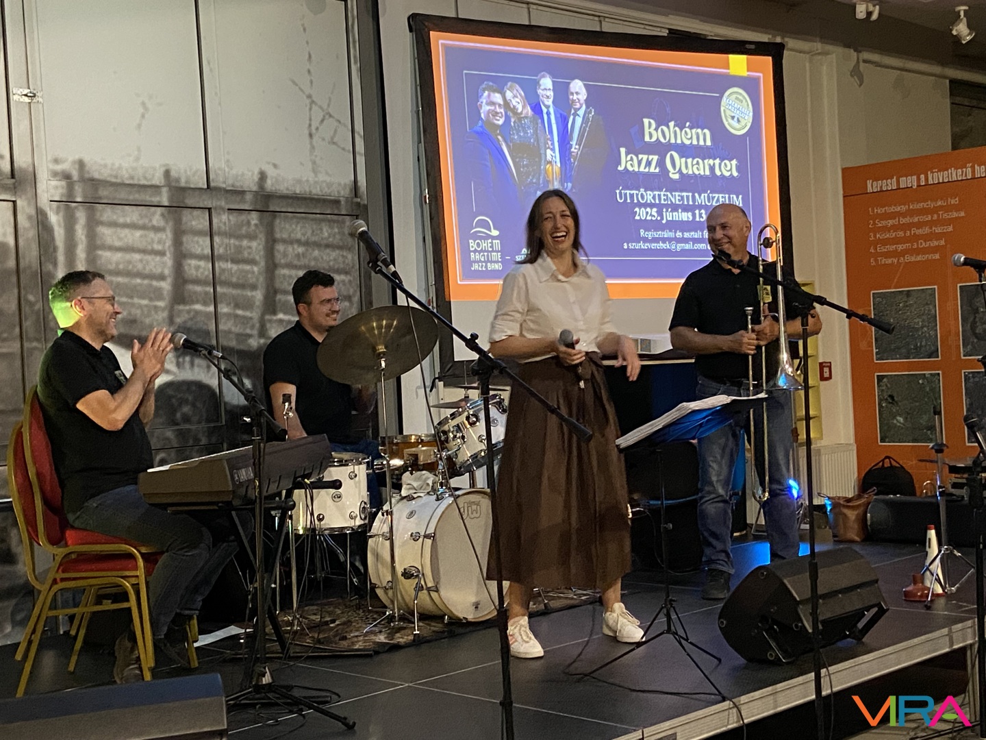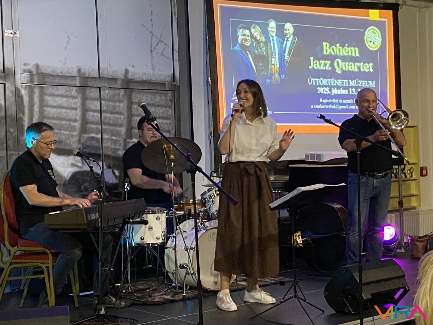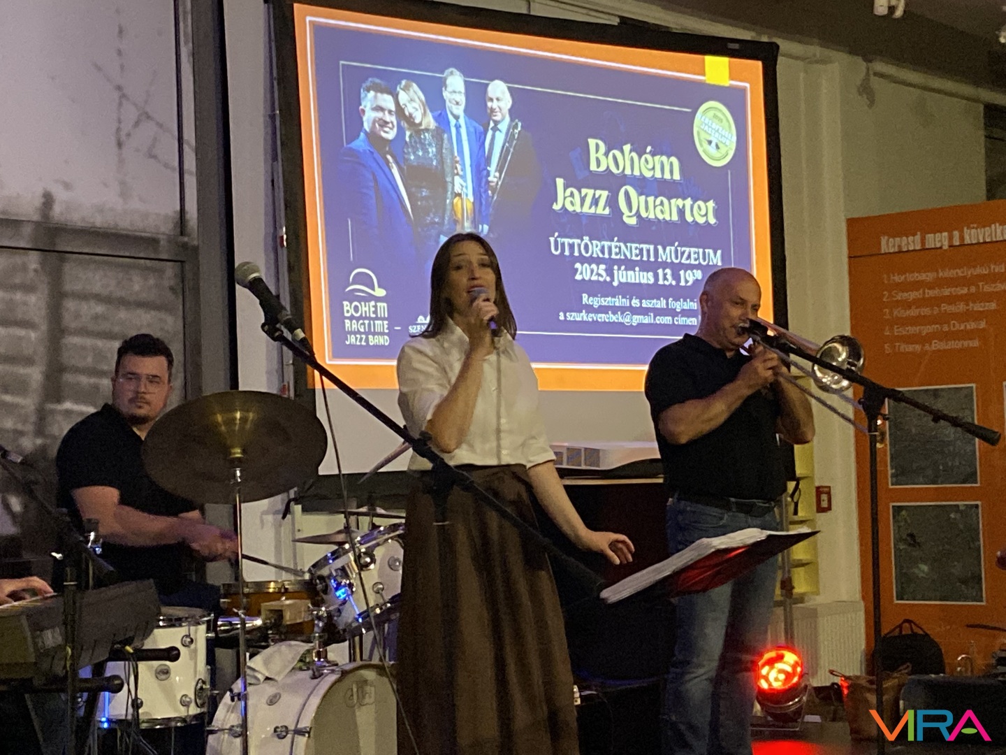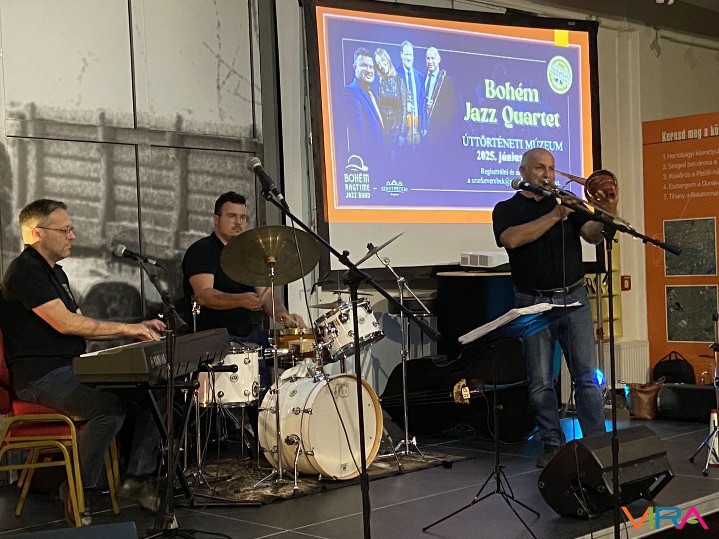 Újra jazzkoncerttől volt hangos a Kiskőrösi Úttörténeti Múzeum 2025. június 13-án, pénteken a Szürke Verebek Klubestjén. A műfaj kedvelői a tízes-húszas-harmincas évek Amerikájában merülhettek el, a régi magyar számok által pedig a századelő pesti kávéházi hangulatát ismerhették meg közelebbről. A Szürke Verebek Jazzbanda után a Bohém Jazz Quartet lépett fel, melynek tagjai országosan és világszerte is elismert művészekből áll.
