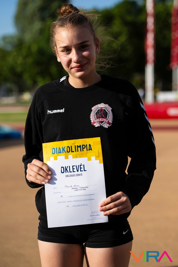 Zóra két évvel ezelőtt 38 méterrel kezdte a kislabdahajítást, egy éve a diákolimpia országos döntőjén pedig már 55 métert dobott. Azóta közel 10 métert fejlődött, így jogosan tűzték ki edzőjével, Czinkóczki Tiborral jövő évi célként a 69 méteres diákolimpiai rekord megdöntését.