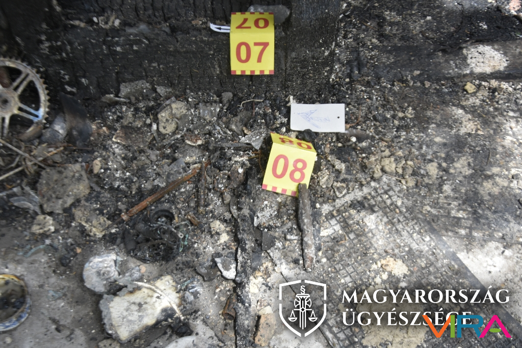 A csatolt rendőrségi szemlefotókon a bűncselekmény helyszíne, valamint a tűzokozáshoz használt eszközök láthatók.