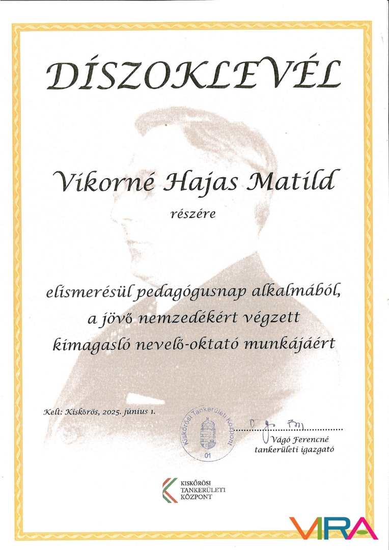 2025. június 18-án a Kiskőrösi SZÓ-LA-M AMI tanévzáró ünnepsége alkalmával díszoklevelet vehetett át Vikorné Hajas Matild tanárnő a jövő nemzedékéért végzett kiemelkedő nevelő-oktató munkájáért. Az elismerés kitartó és odaadó munkájának szól, amely példamutató minden kolléga számára.