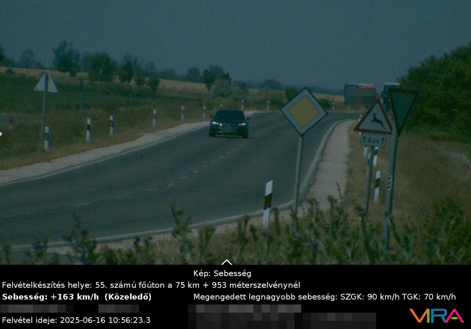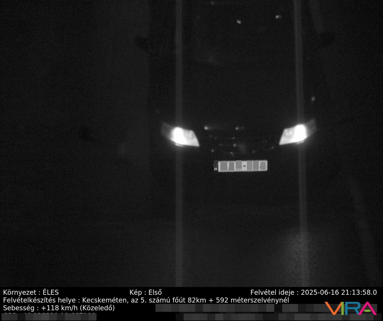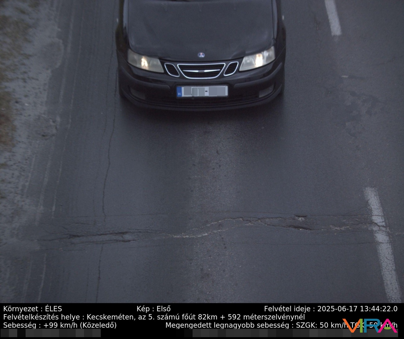 Az elmúlt héten a megengedett sebességhatárokat regisztráltan 2173-an lépték át. A szabálytalankodóknak legalább 50 ezer forint közigazgatási bírságot kell fizetniük, a kiszabható büntetés összegének maximuma pedig 468 ezer forint. Top gyorshajtónak 312+140 ezer forintot kell kifizetnie: ő alig fél nap alatt Kecskemét belterületén kétszer is gyorsan hajtott; először 50 helyett 118 km/h-val, majd 50 helyett 99 km/h-val hajtott. A sofőr nem mondhatja, hogy a rendőrök lesből fotózták, mivel az évek óta működő, messziről is jól látható fix kamerába futott bele.