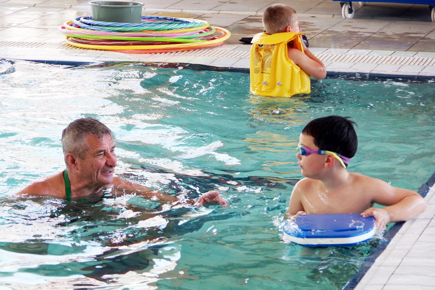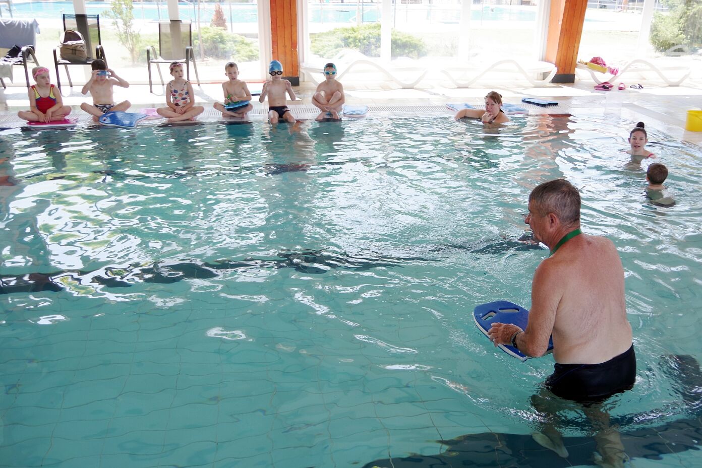 Az úszás oktatást vezető Pásztor Gyula elmondta, hogy minden nap az úszástudásuknak megfelelően három csoport számára tartott edzéseket. Összesen mintegy 70 gyermekkel foglalkozott az egy hét során, akik közül többen már a tanuszoda nagymedencéjében is úsztak.