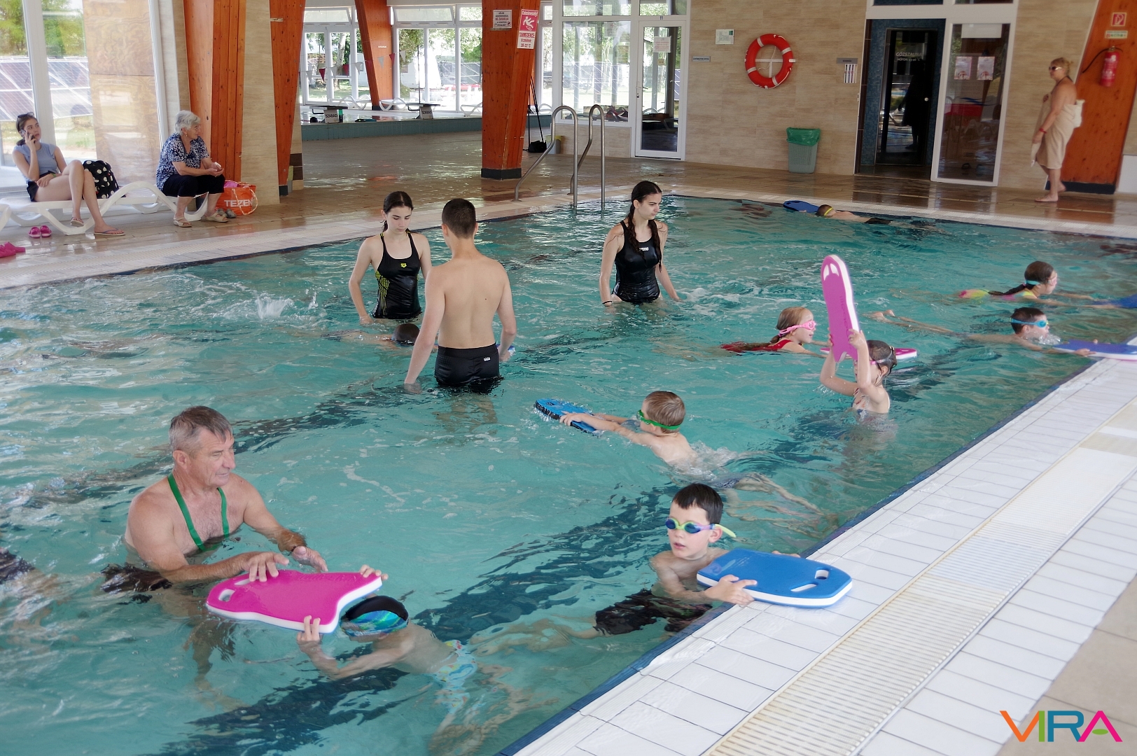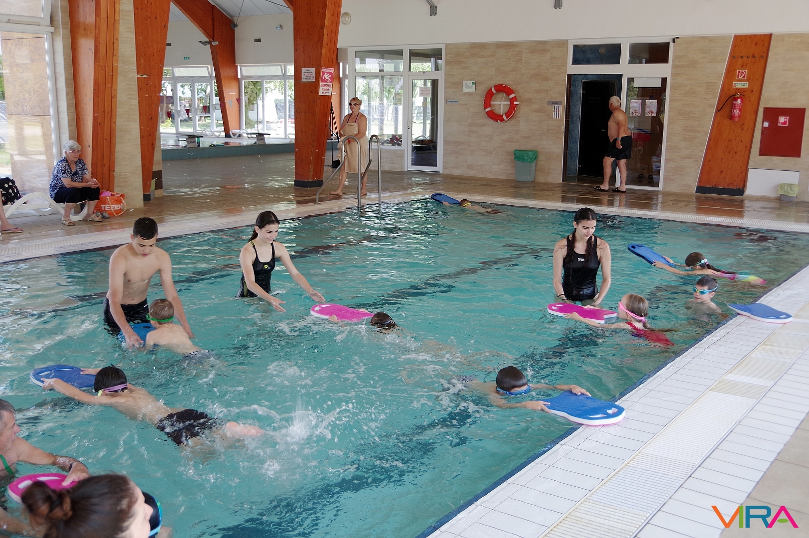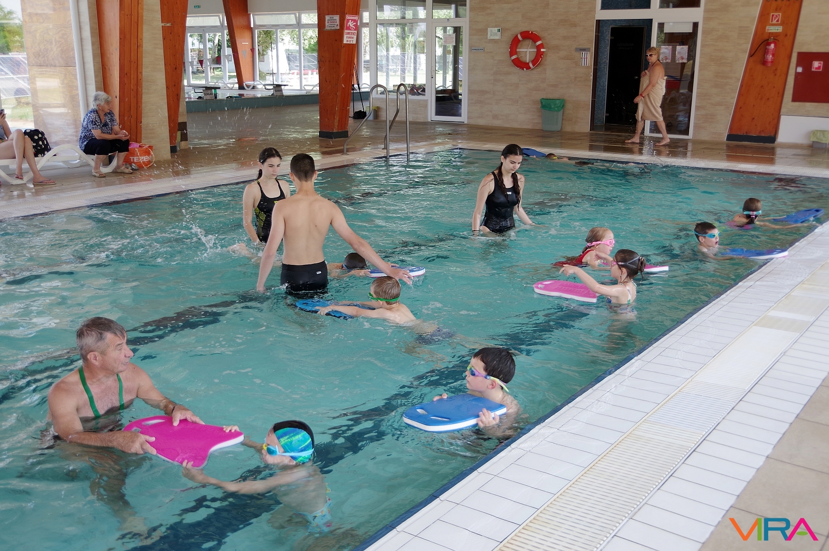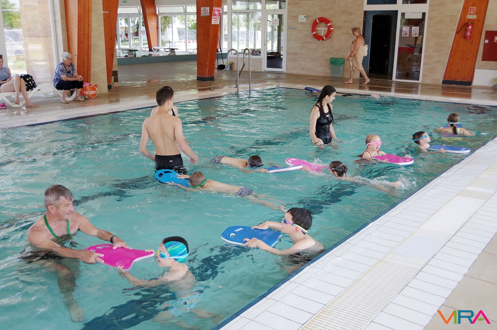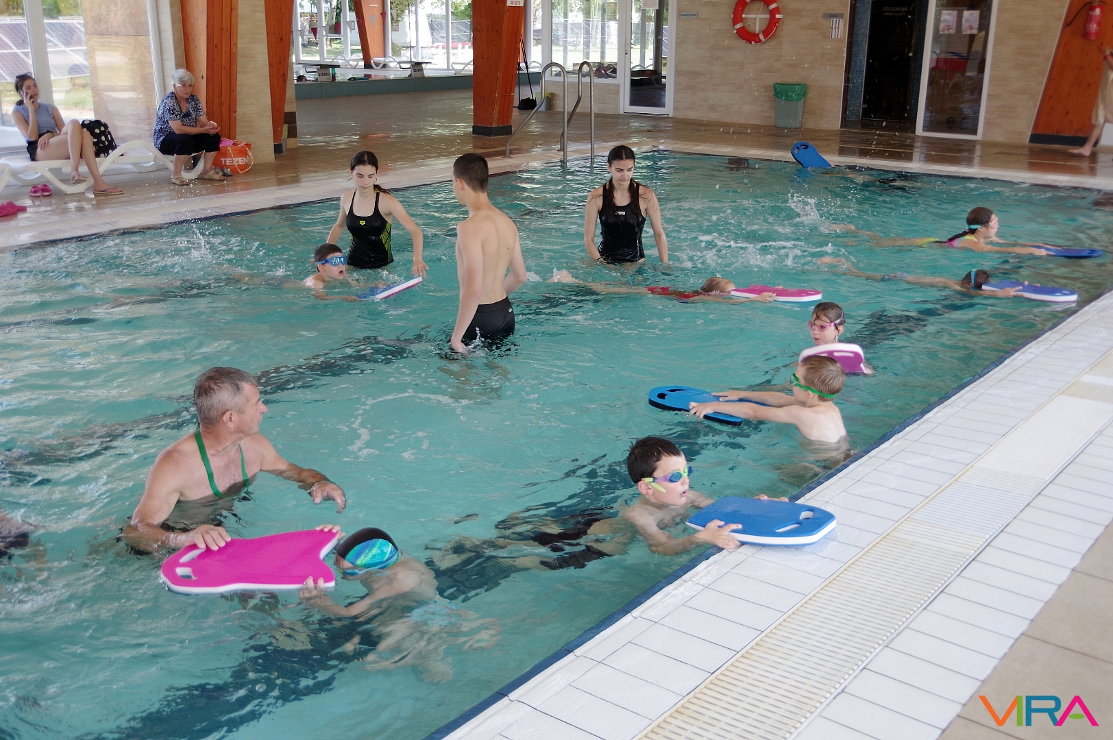 Az úszás oktatást vezető Pásztor Gyula elmondta, hogy minden nap az úszástudásuknak megfelelően három csoport számára tartott edzéseket. Összesen mintegy 70 gyermekkel foglalkozott az egy hét során, akik közül többen már a tanuszoda nagymedencéjében is úsztak.