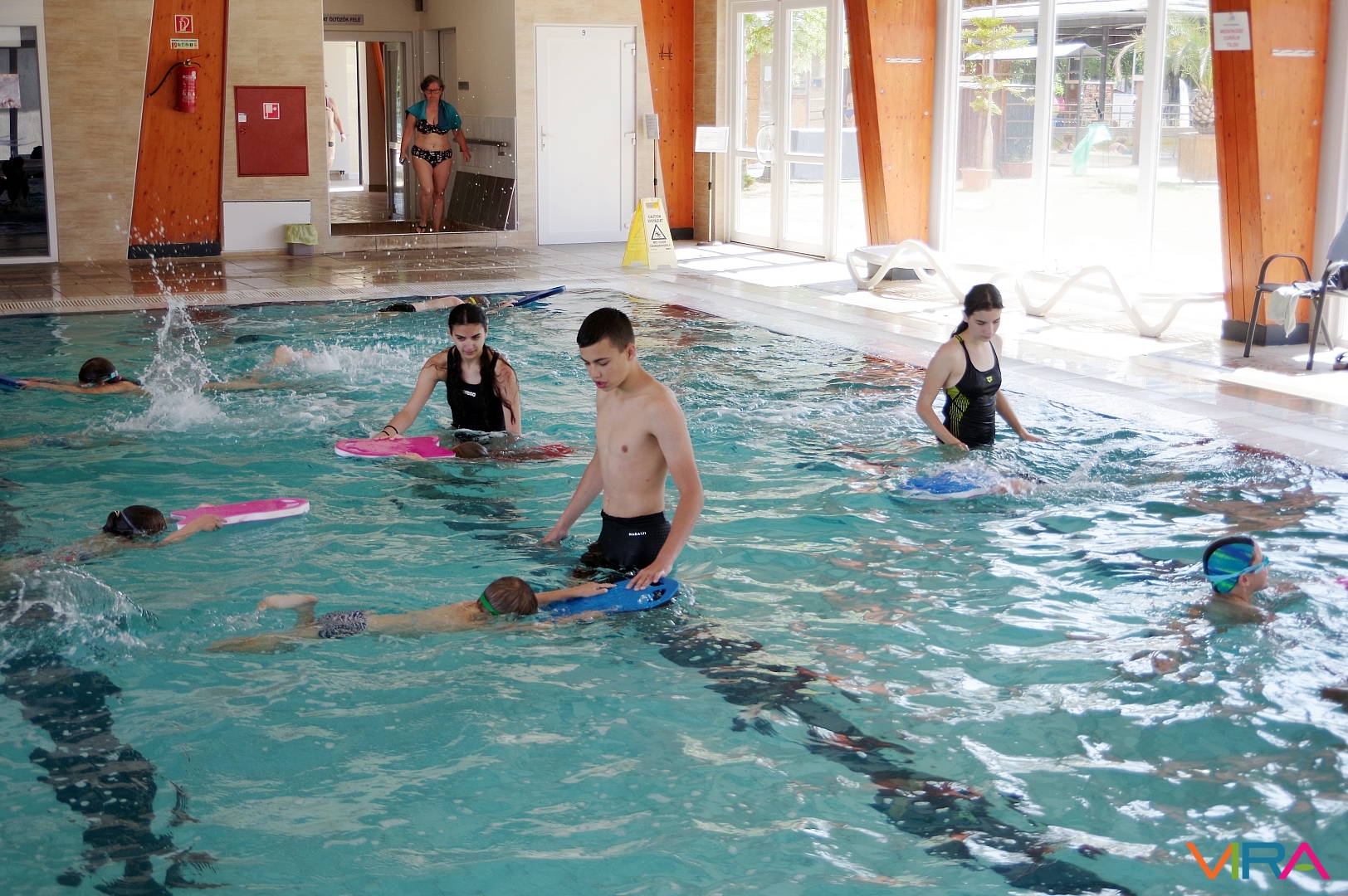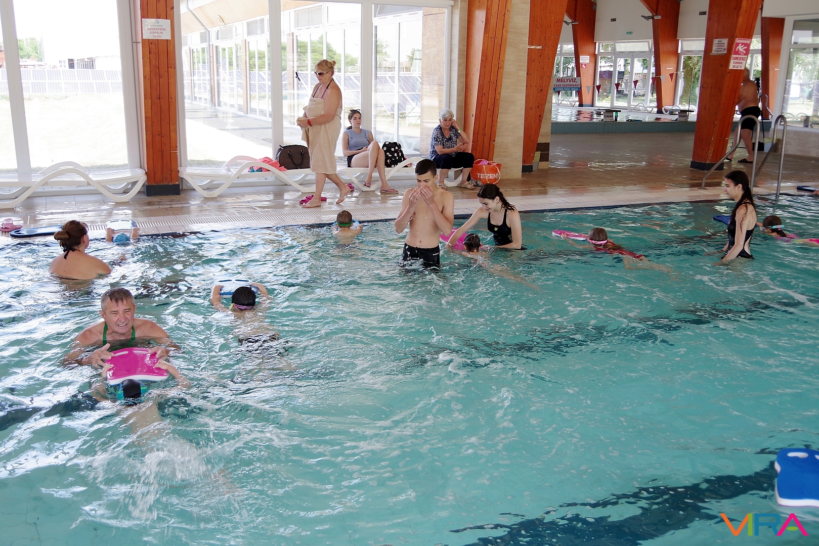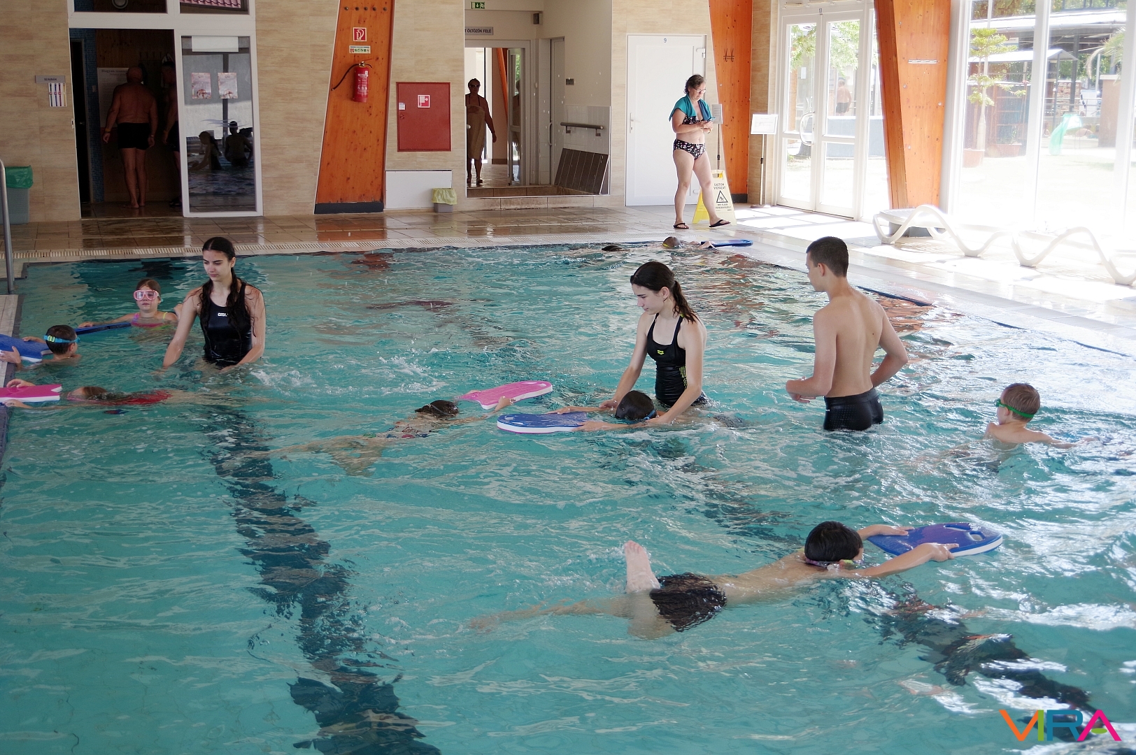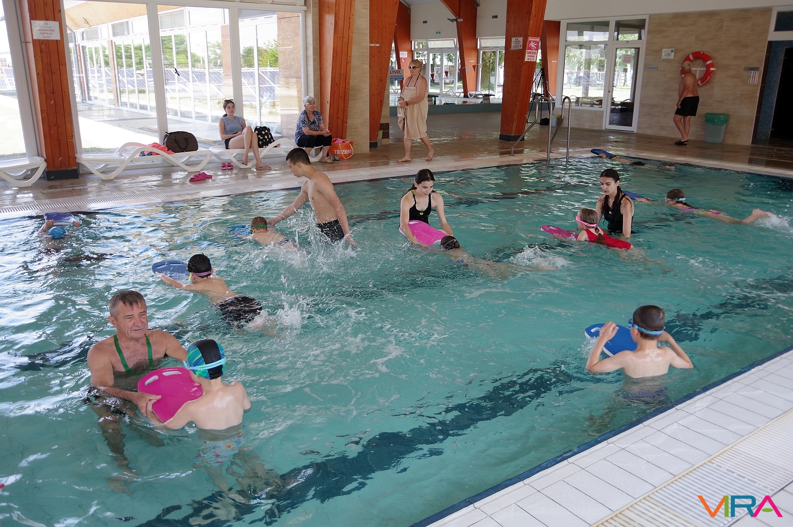 Az úszás oktatást vezető Pásztor Gyula elmondta, hogy minden nap az úszástudásuknak megfelelően három csoport számára tartott edzéseket. Összesen mintegy 70 gyermekkel foglalkozott az egy hét során, akik közül többen már a tanuszoda nagymedencéjében is úsztak.